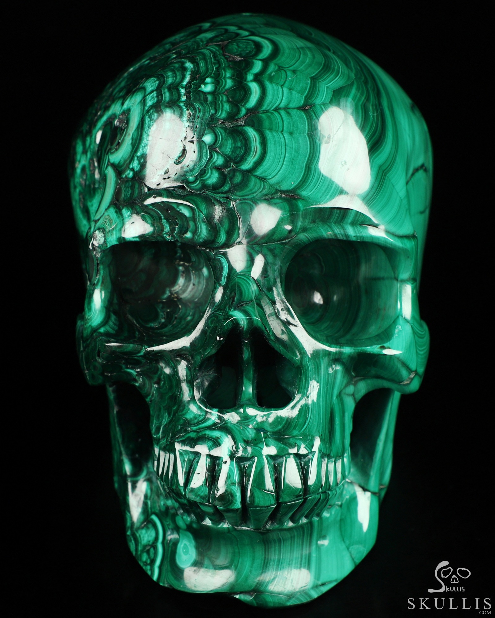 Lifesized 7.0" Malachite Carved Crystal Skull, Super Realistic, Crystal Healing