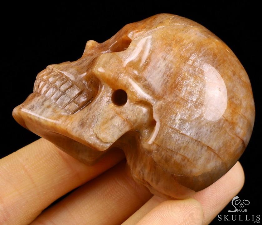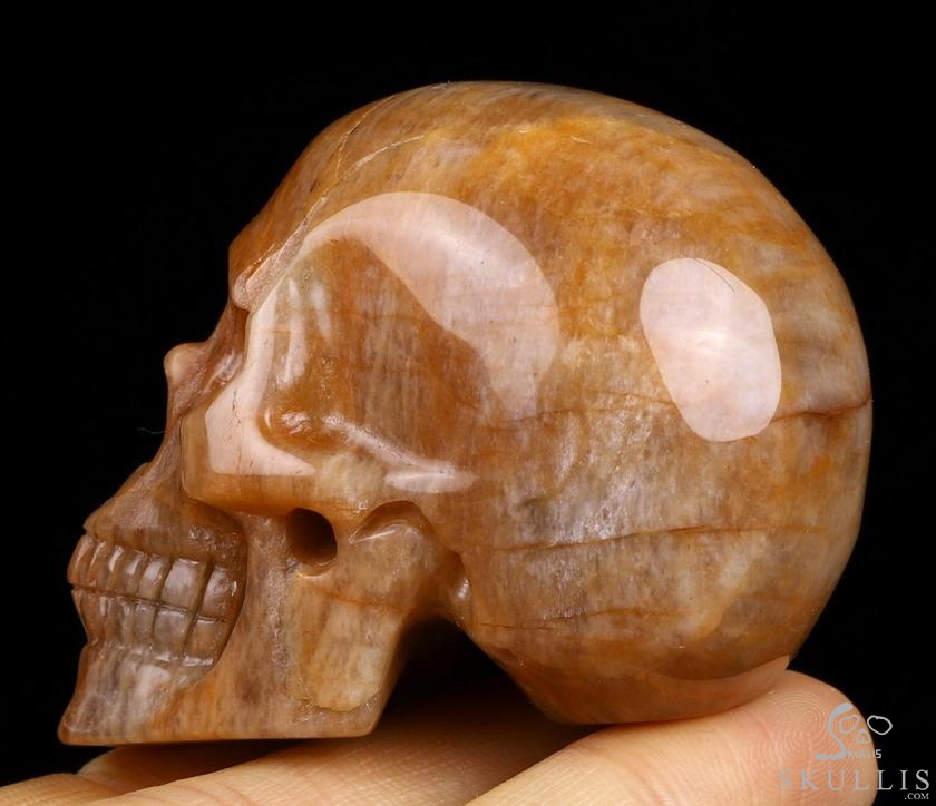 1.7" Sunstone Carved Crystal Skull,Realistic, Crystal Healing