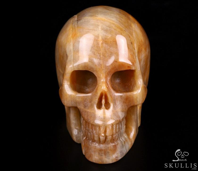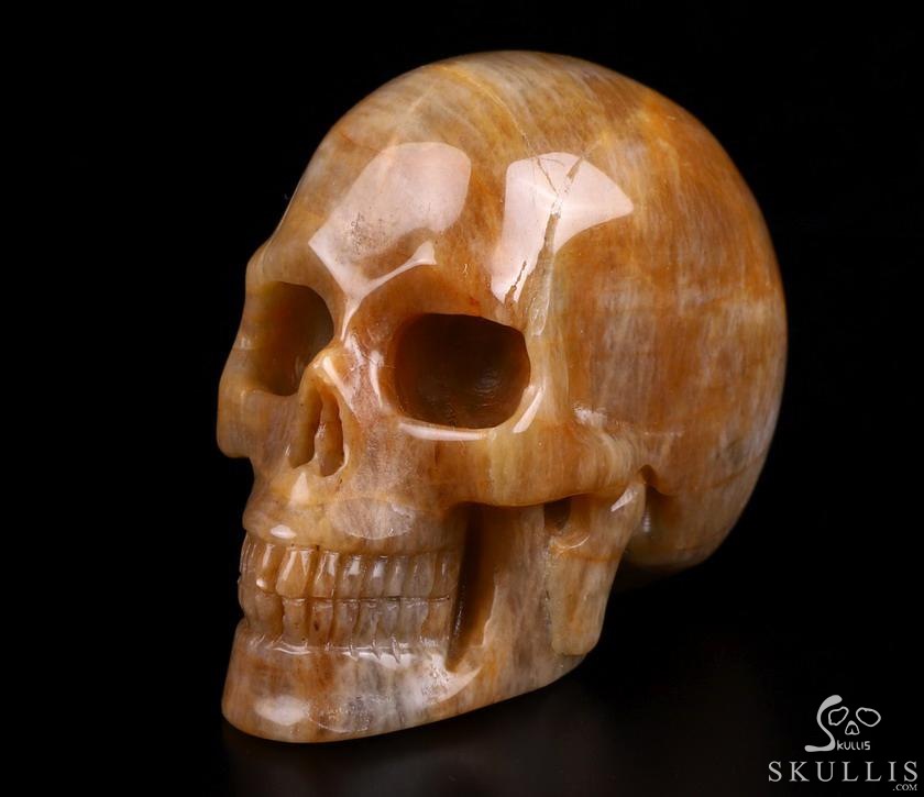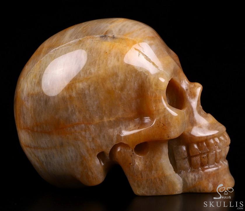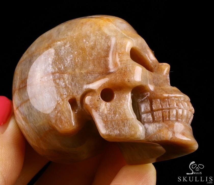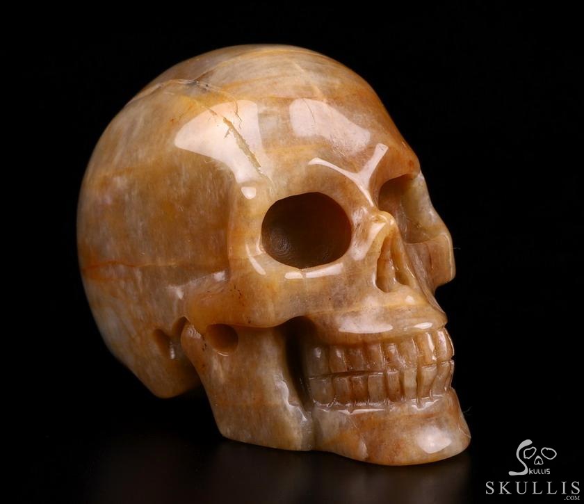 3.0" Sunstone Hand Carved Crystal Skull, Realistic, Crystal Healing