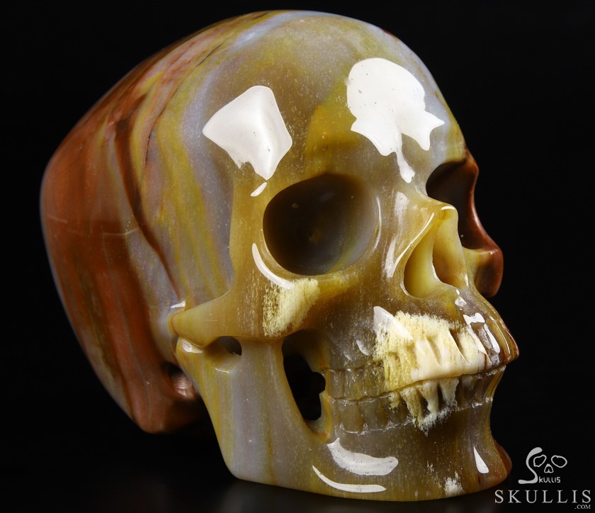GEMSTONE Huge 5.0" Petrified Wood Carved Crystal Skull,Super Realistic, Crystal Healing