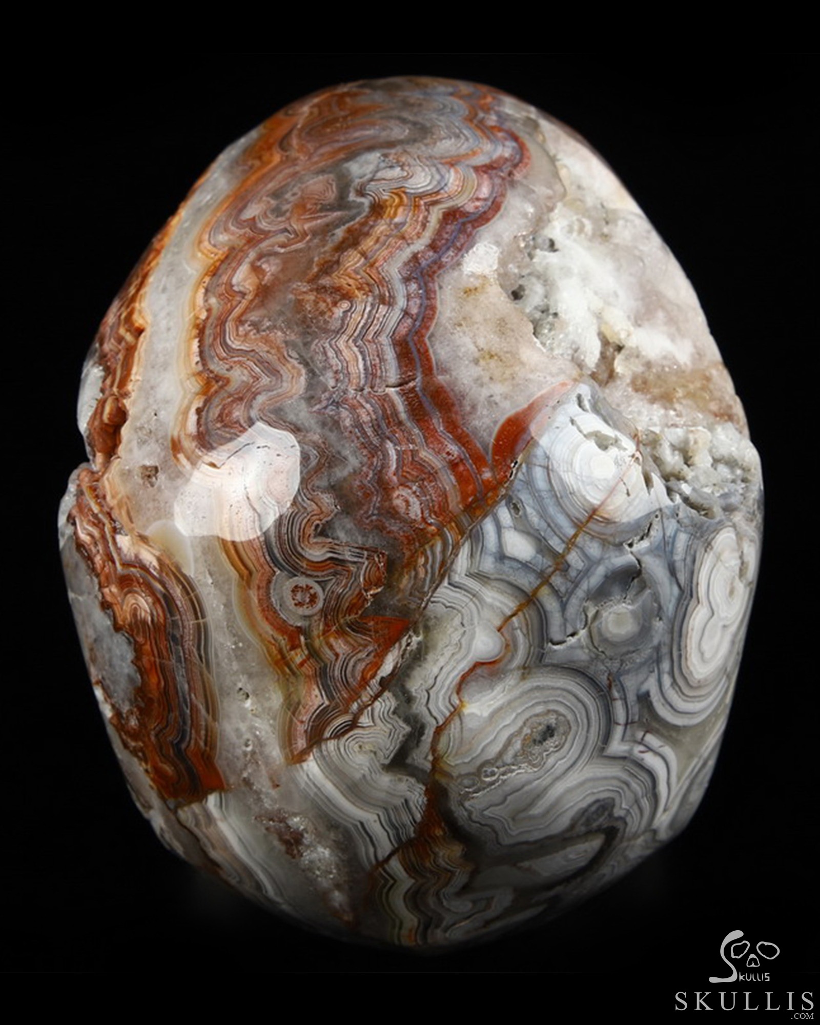 GEMSTONE Geode Huge 4.8 Red Crazy Lace Agate Carved Crystal Skull, Realistic, Crystal Healing