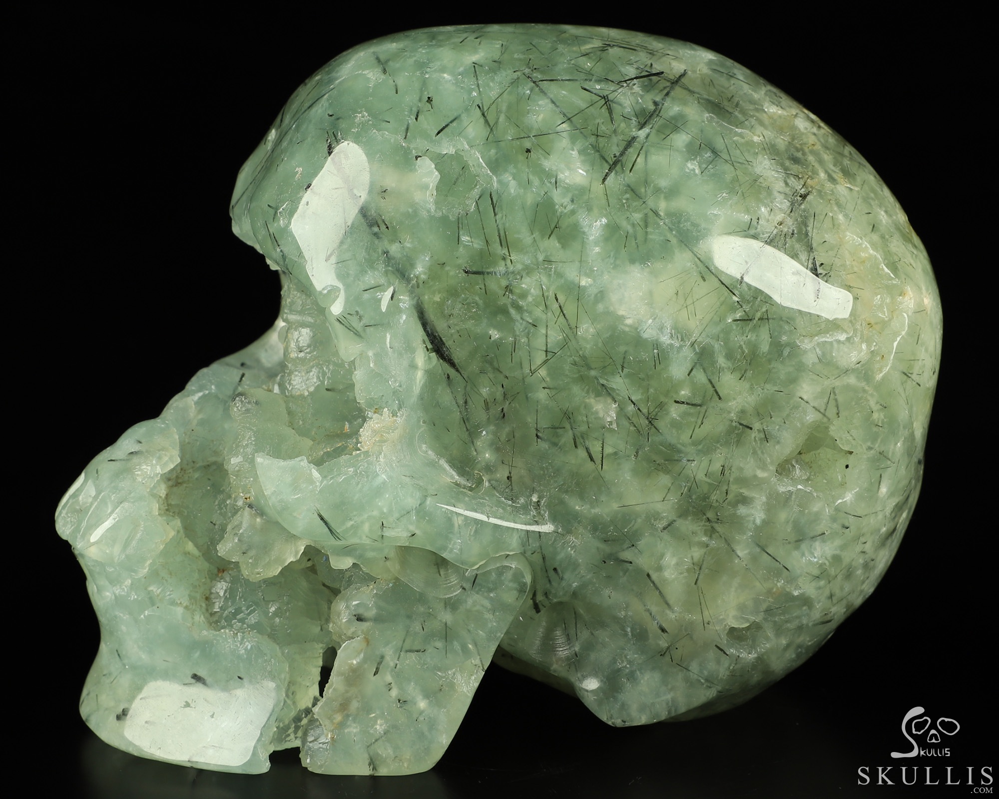 Gemstone 6.0" Prehnite Carved Crystal Skull, Super Realistic, Crystal Healing