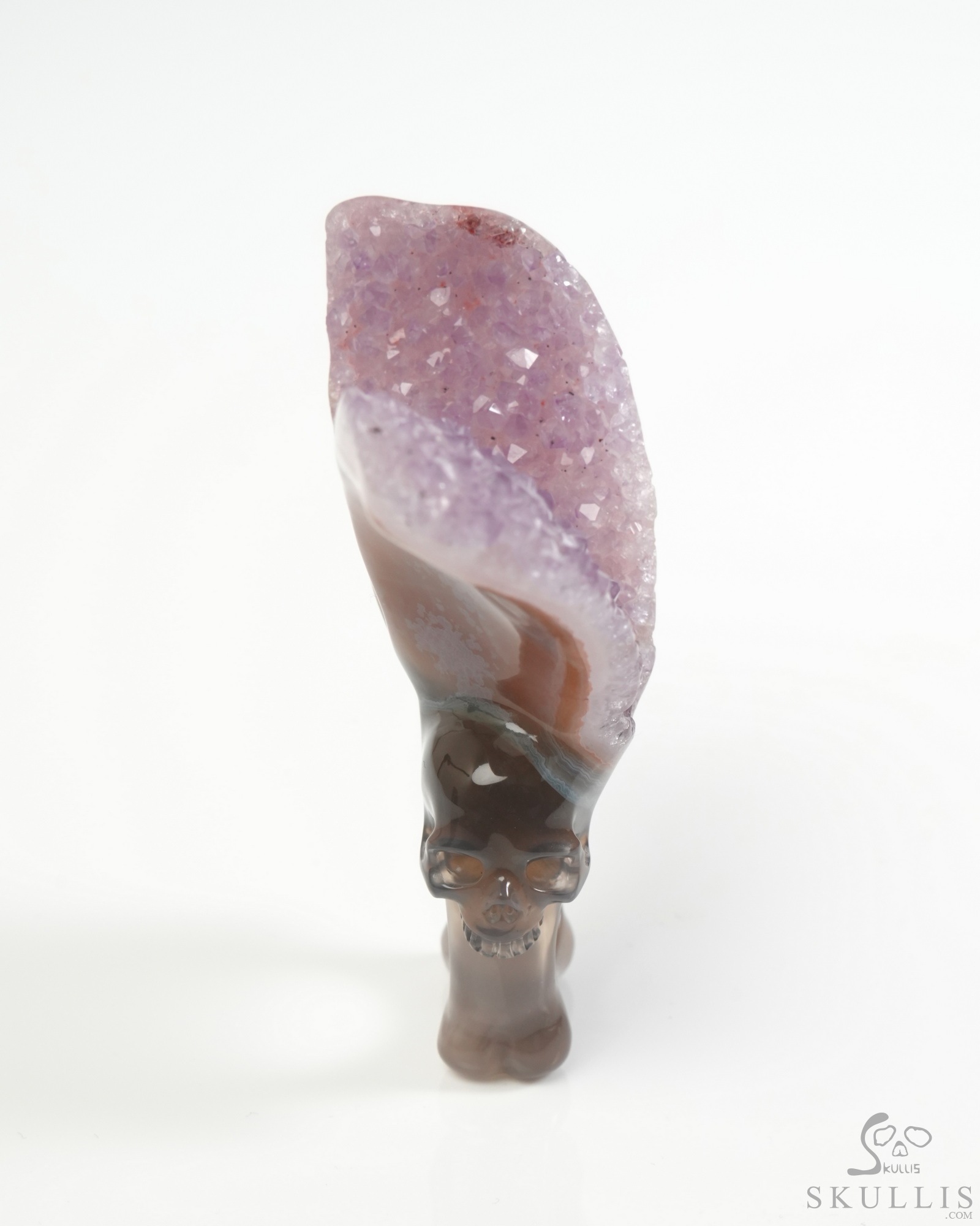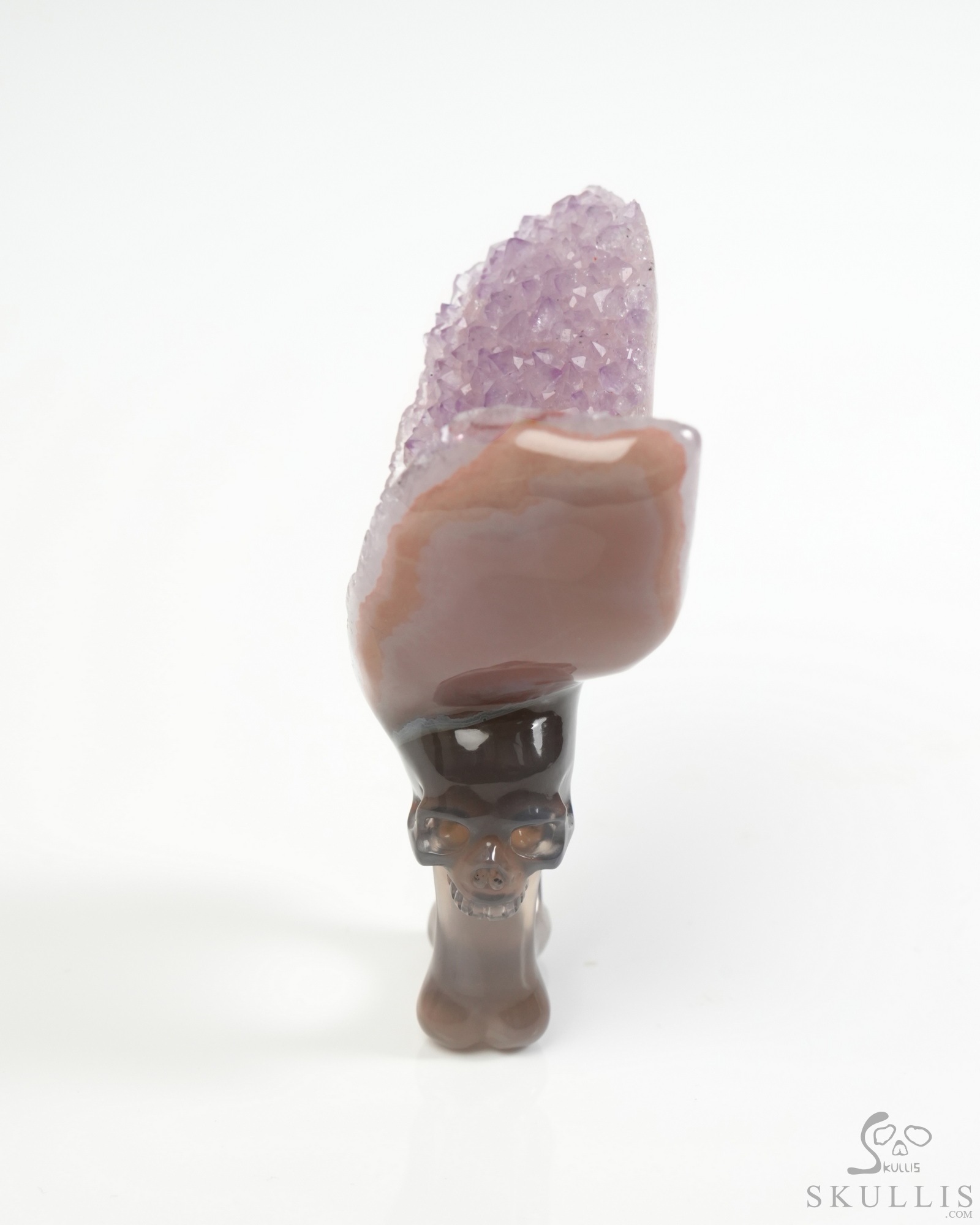 1.7" Amethyst & Agate Druse Hand Carved Crystal Skull Fine Art Sculpture, Crystal Healing