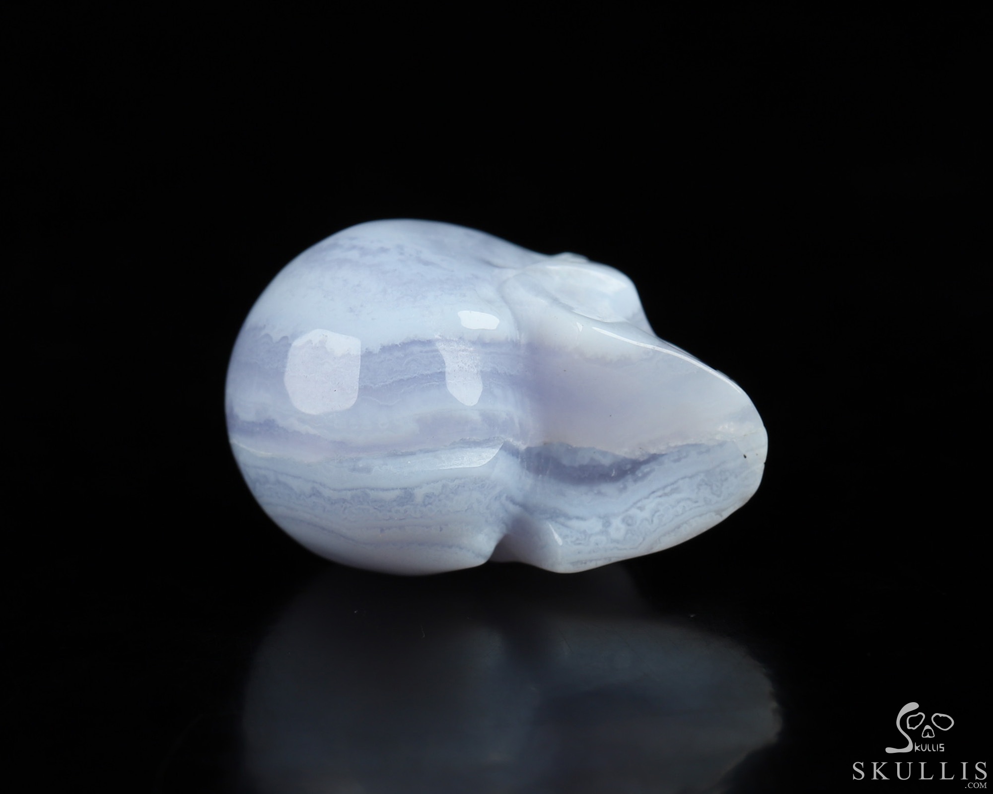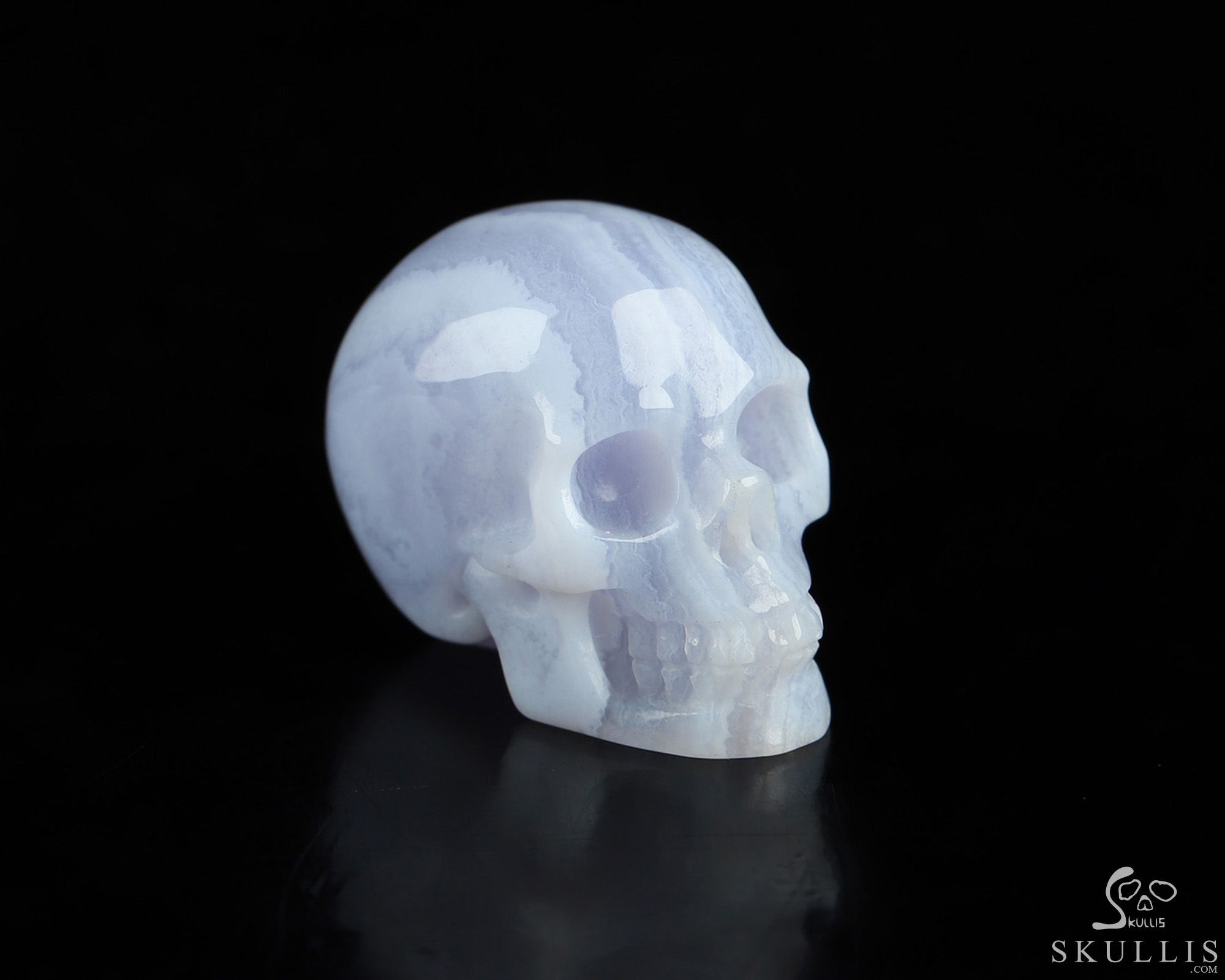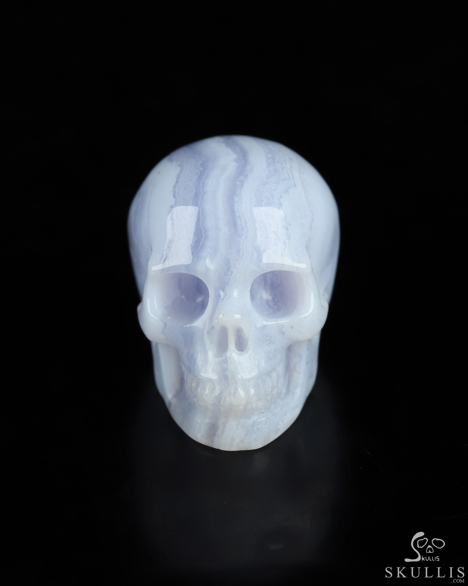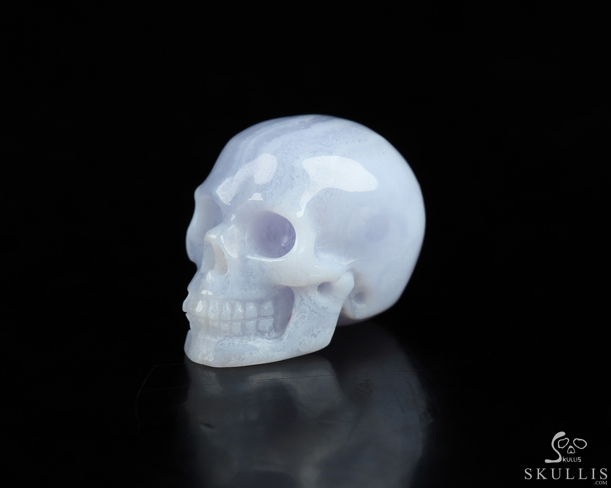 Gemstone 1.9" Blue Lace Agate Hand Carved Crystal Skull Fine Art Sculpture, Crystal Healing