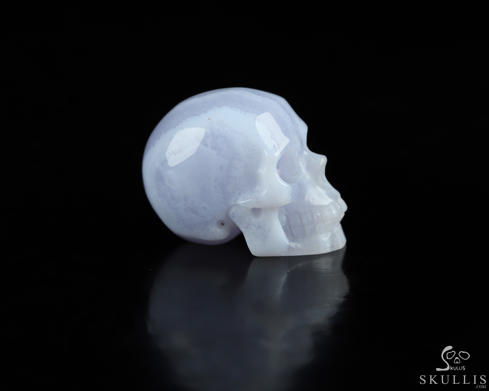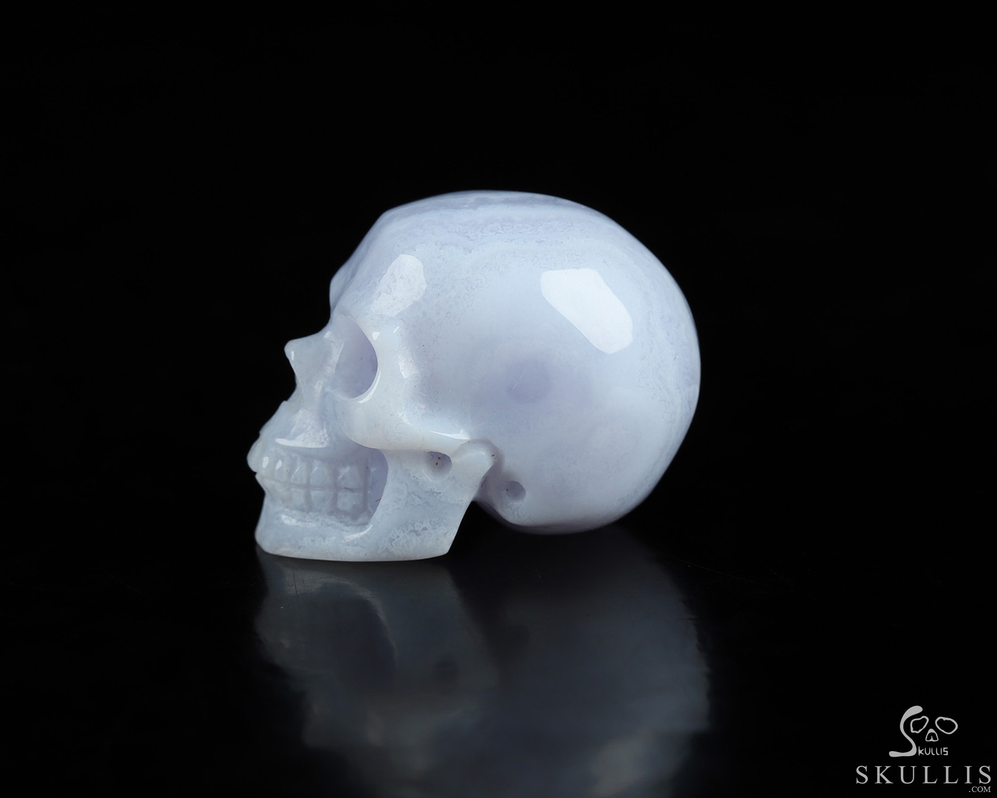 Gemstone 1.4" Blue Lace Agate Hand Carved Crystal Skull, Realistic, Crystal Healing