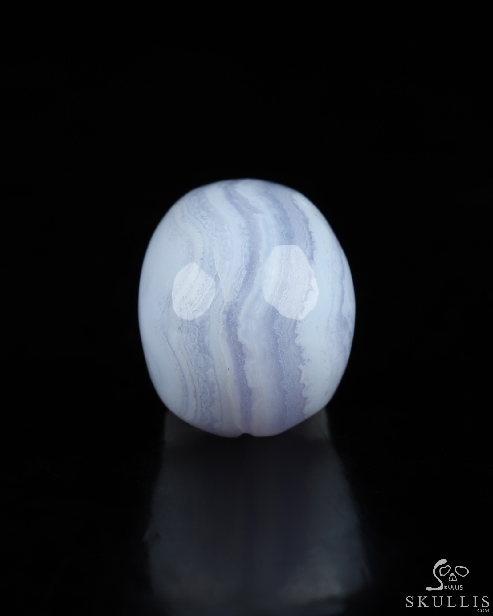 You are looking at a Blue Lace Agate skull. The skull is 0.9 inches from front to back.