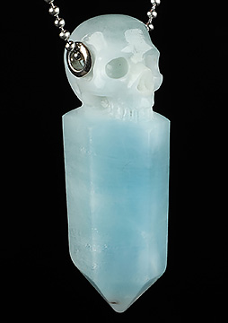 You are looking at an Aquamarine skull. The skull is 1 inches from front to back.
