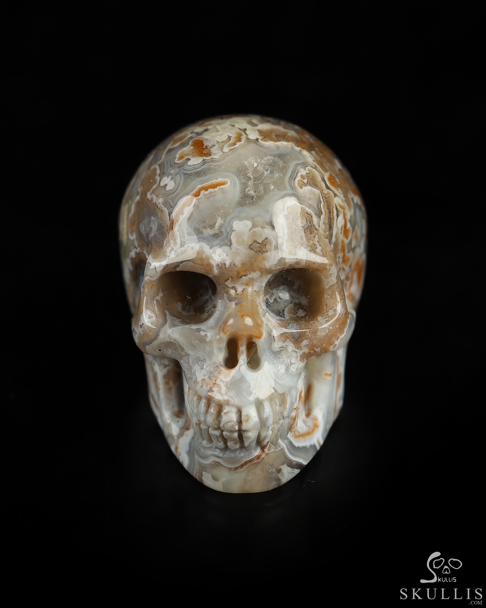 Gemstone 3.9" Red Crazy Lace Agate Hand Carved Crystal Skull, Realistic, Crystal Healing