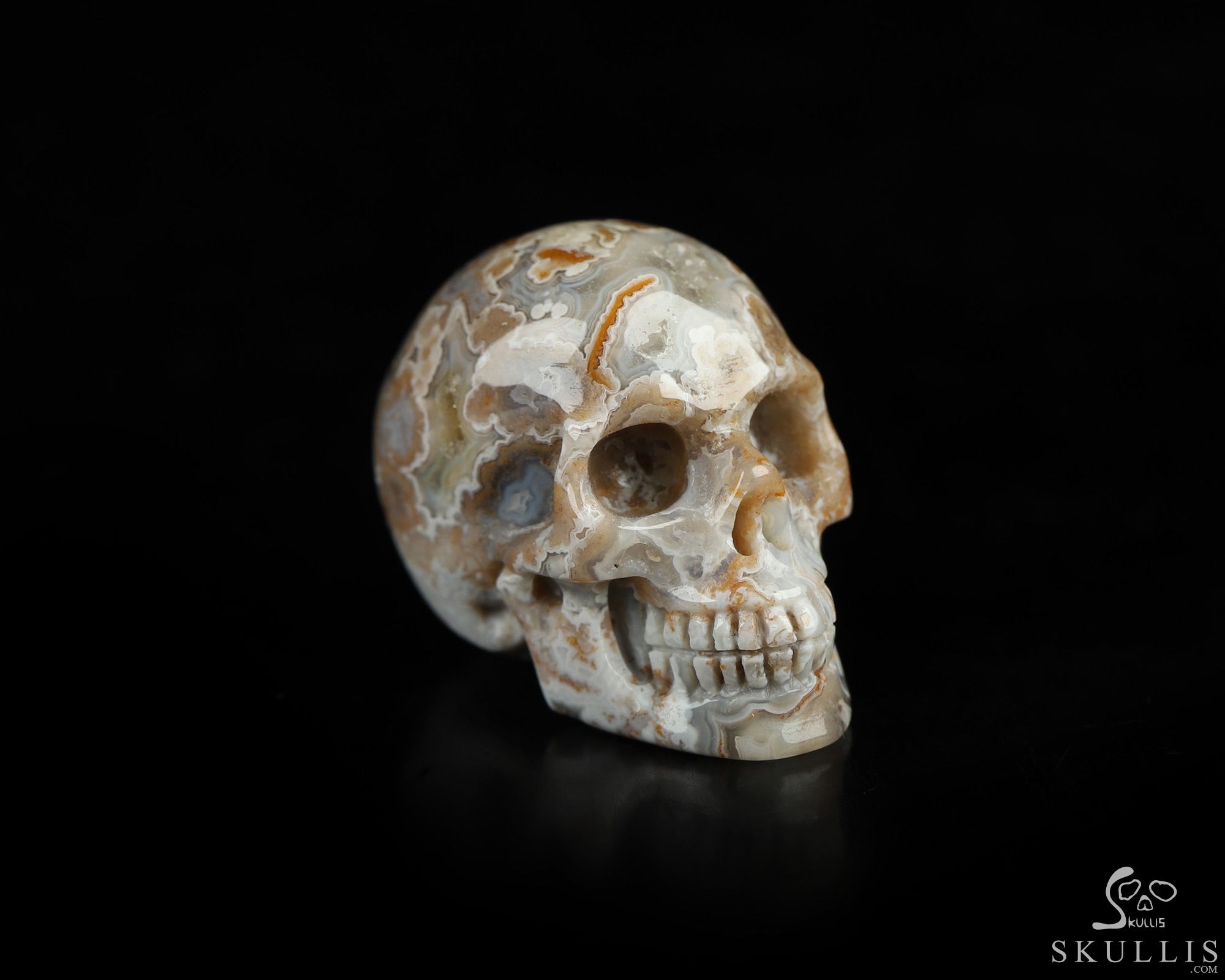Gemstone 1.8" Red Crazy Lace Agate Hand Carved Crystal Skull, Realistic, Crystal Healing