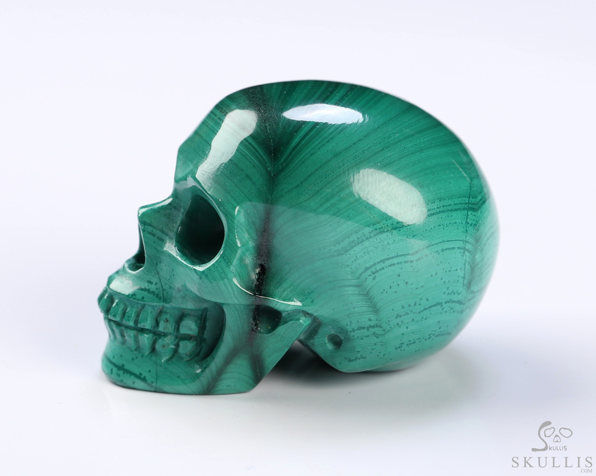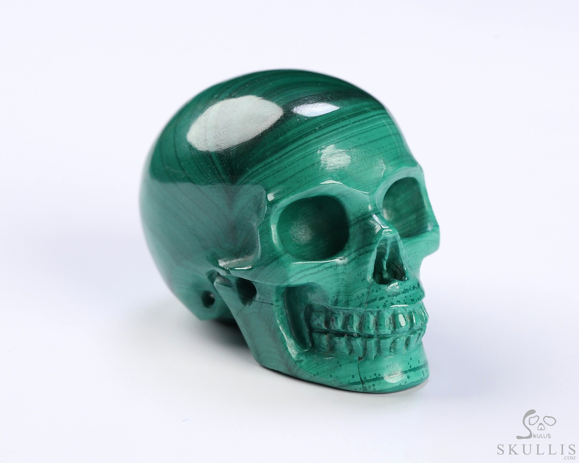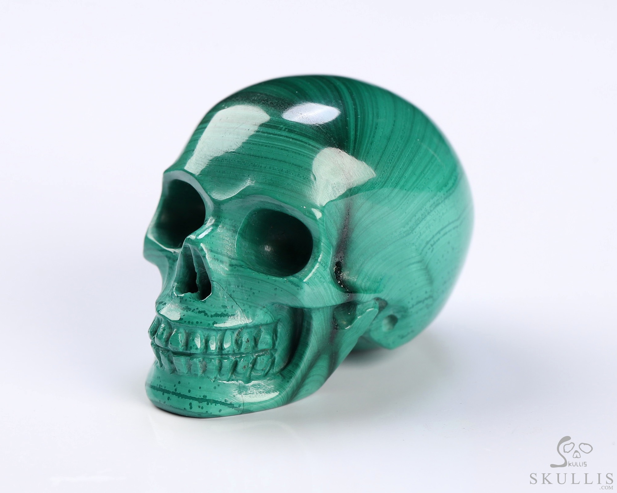 Gemstone 1.8" Malachite Hand Carved Crystal Skull, Realistic, Crystal Healing