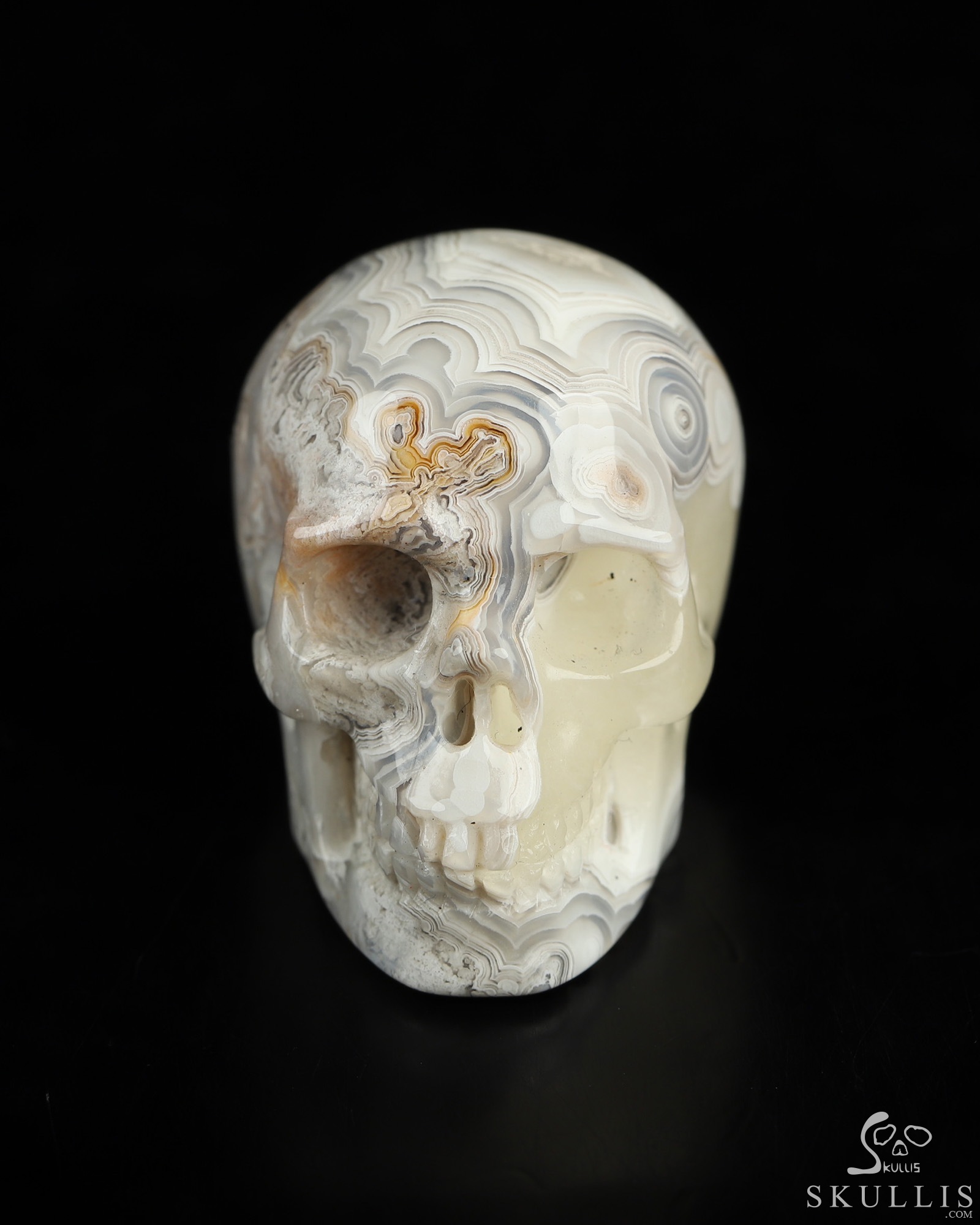 You are looking at a Red Crazy Lace Agate skull. The skull is 1.3 inches from front to back.