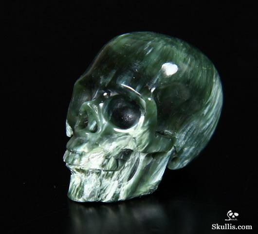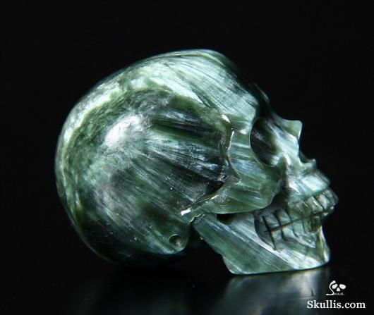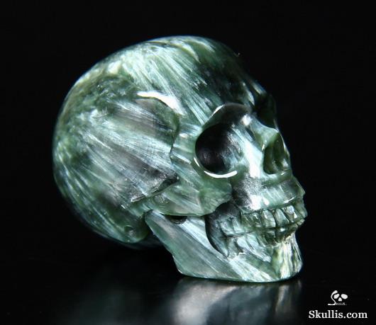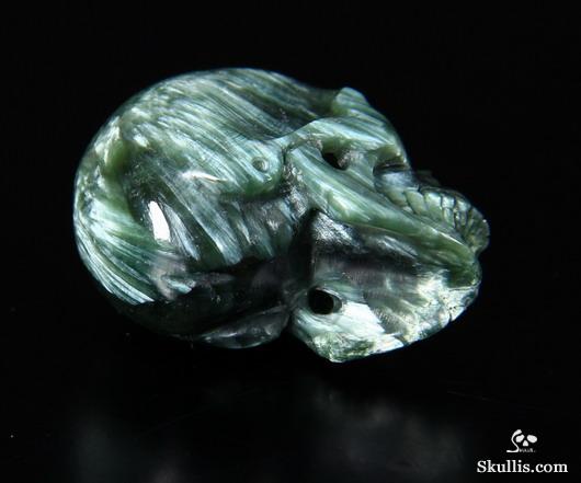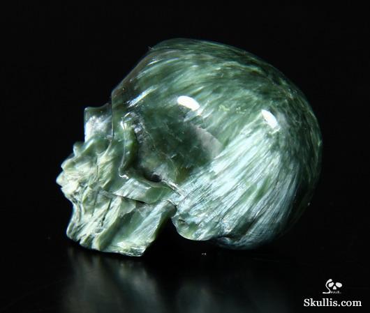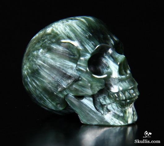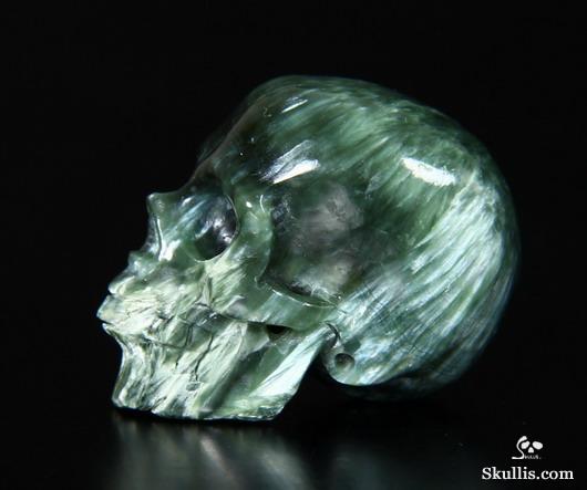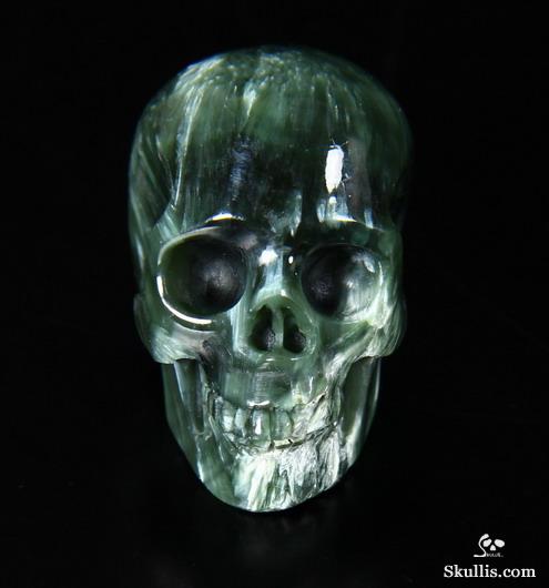 Gemstone 1.3" Seraphinite Clinochlore Carved Crystal Skull, Realistic