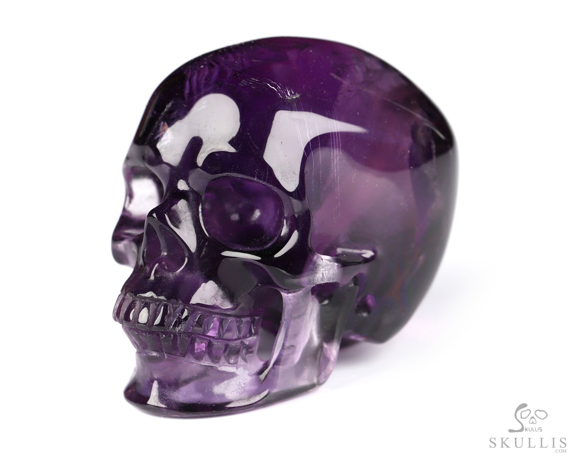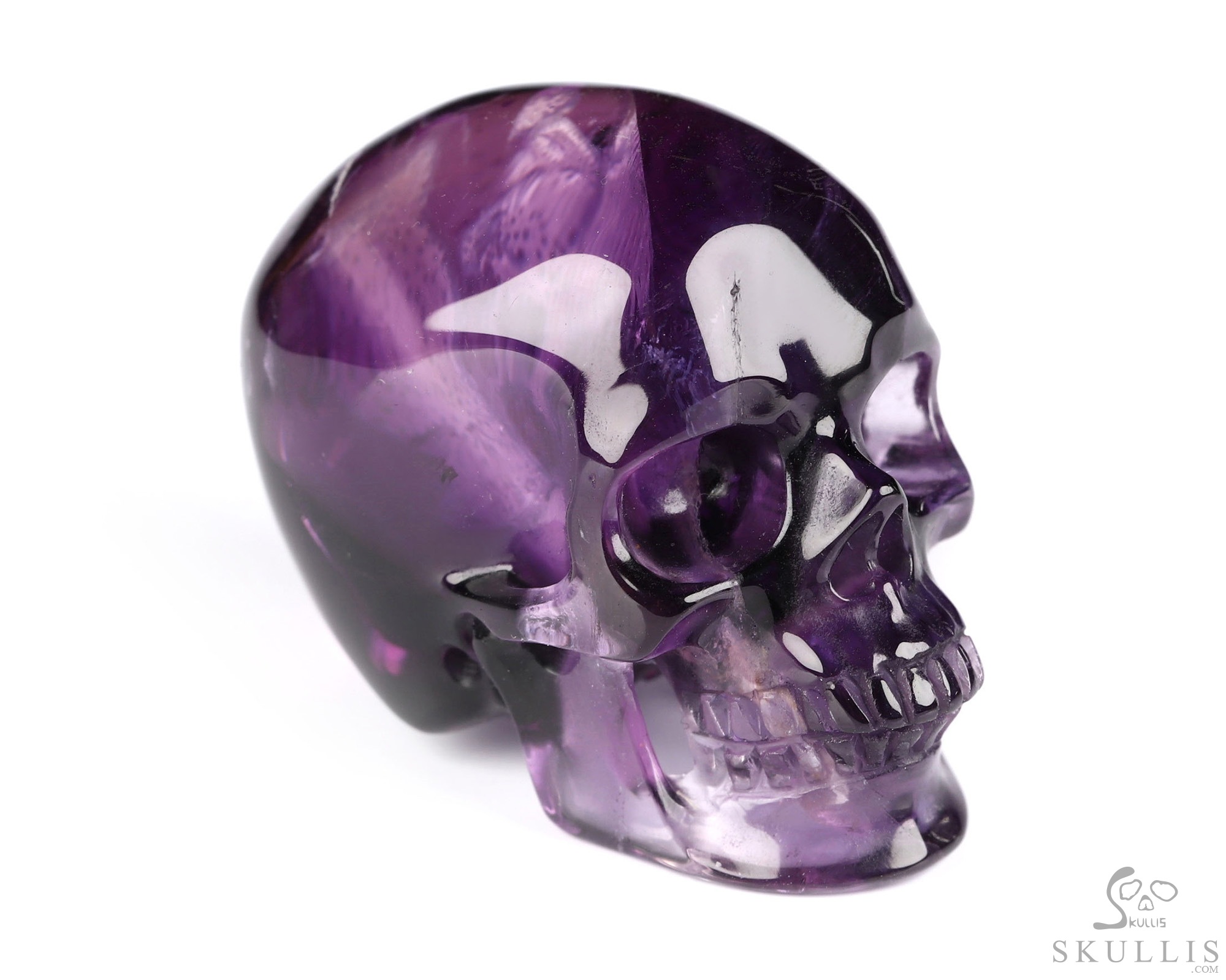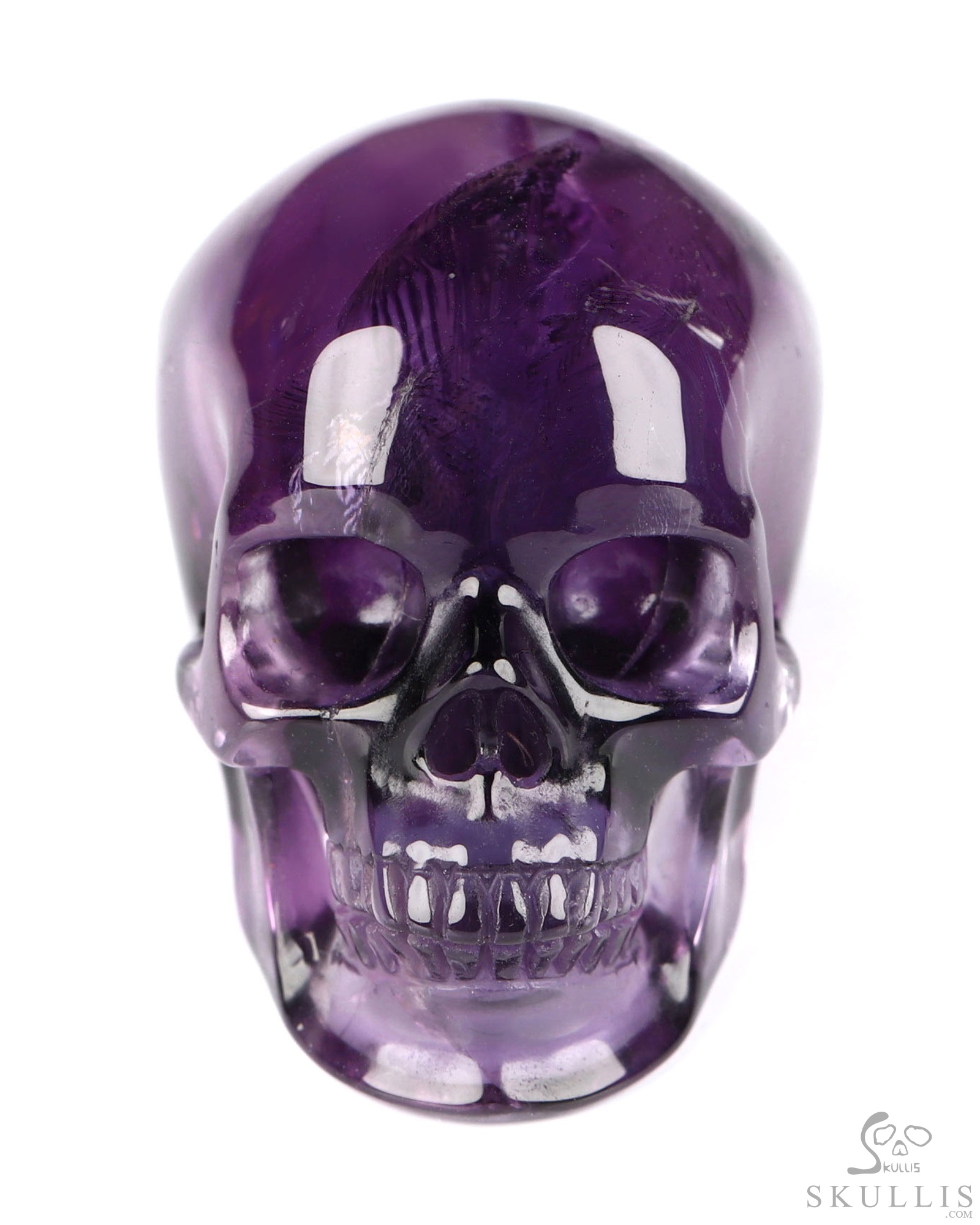 5.4" Amethyst Hand Carved Crystal Skull Fine Art Sculpture, Crystal Healing
