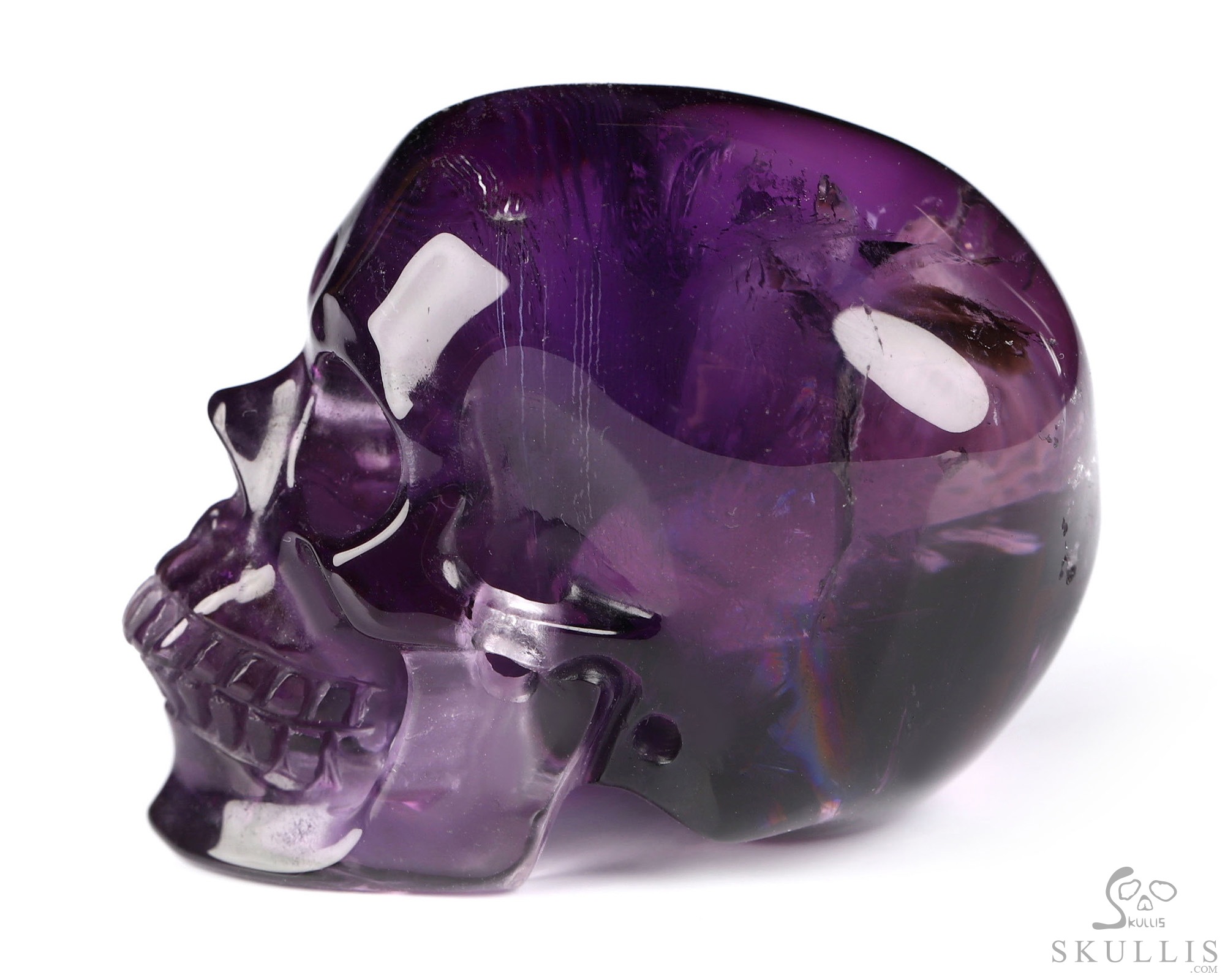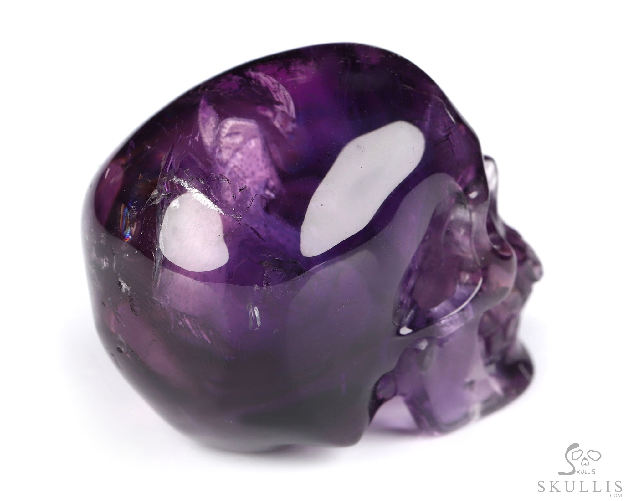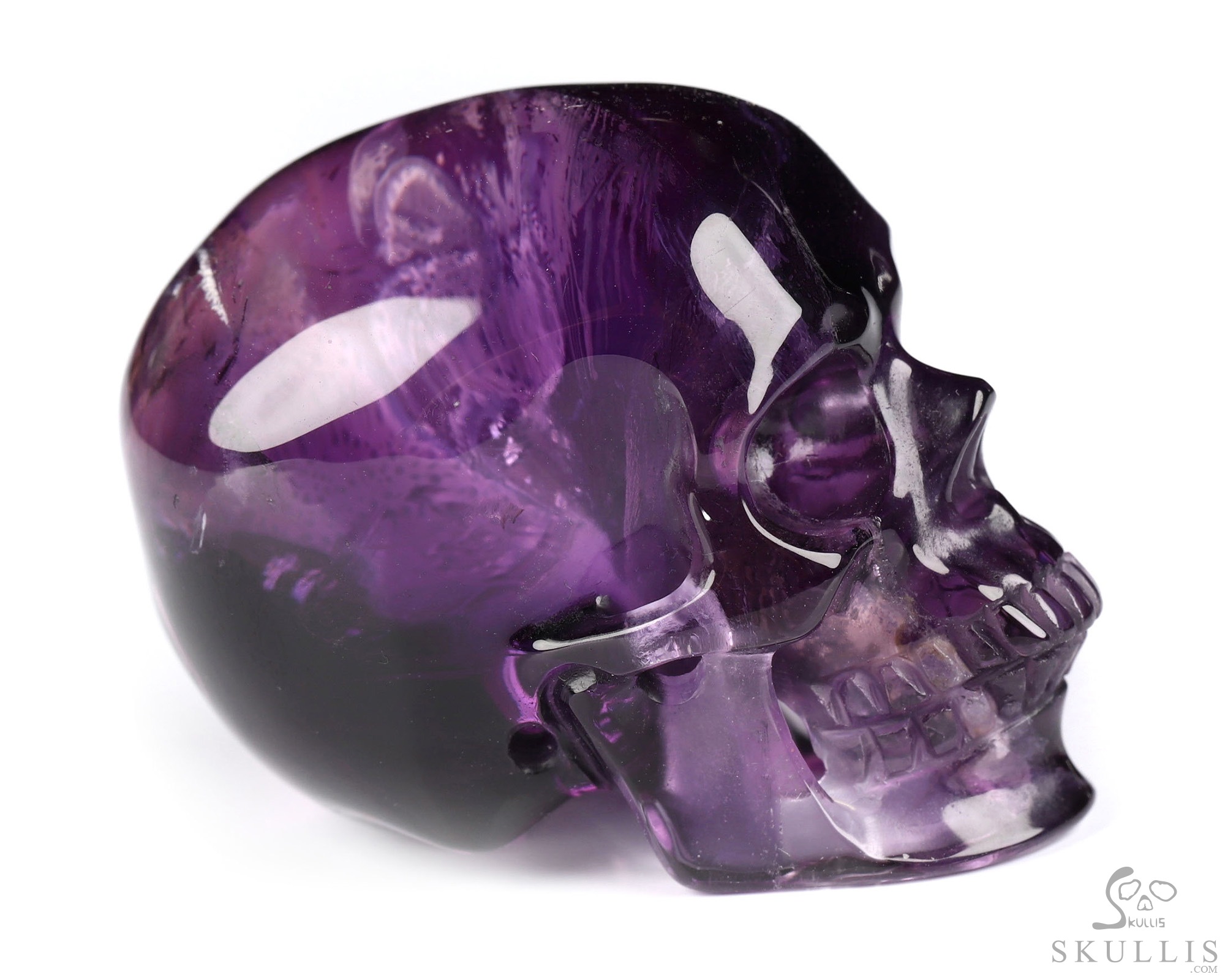 5.4" Amethyst Hand Carved Crystal Skull Fine Art Sculpture, Crystal Healing