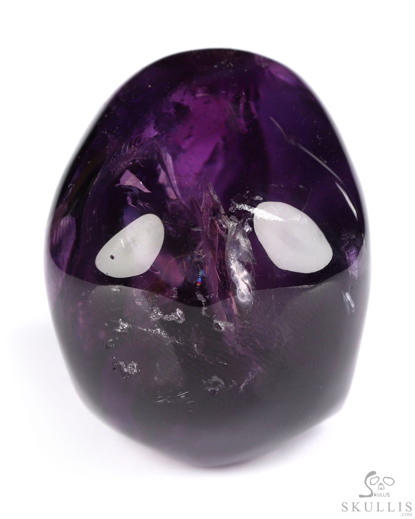You are looking at an Amethyst skull. The skull is 1.5 inches from front to back.