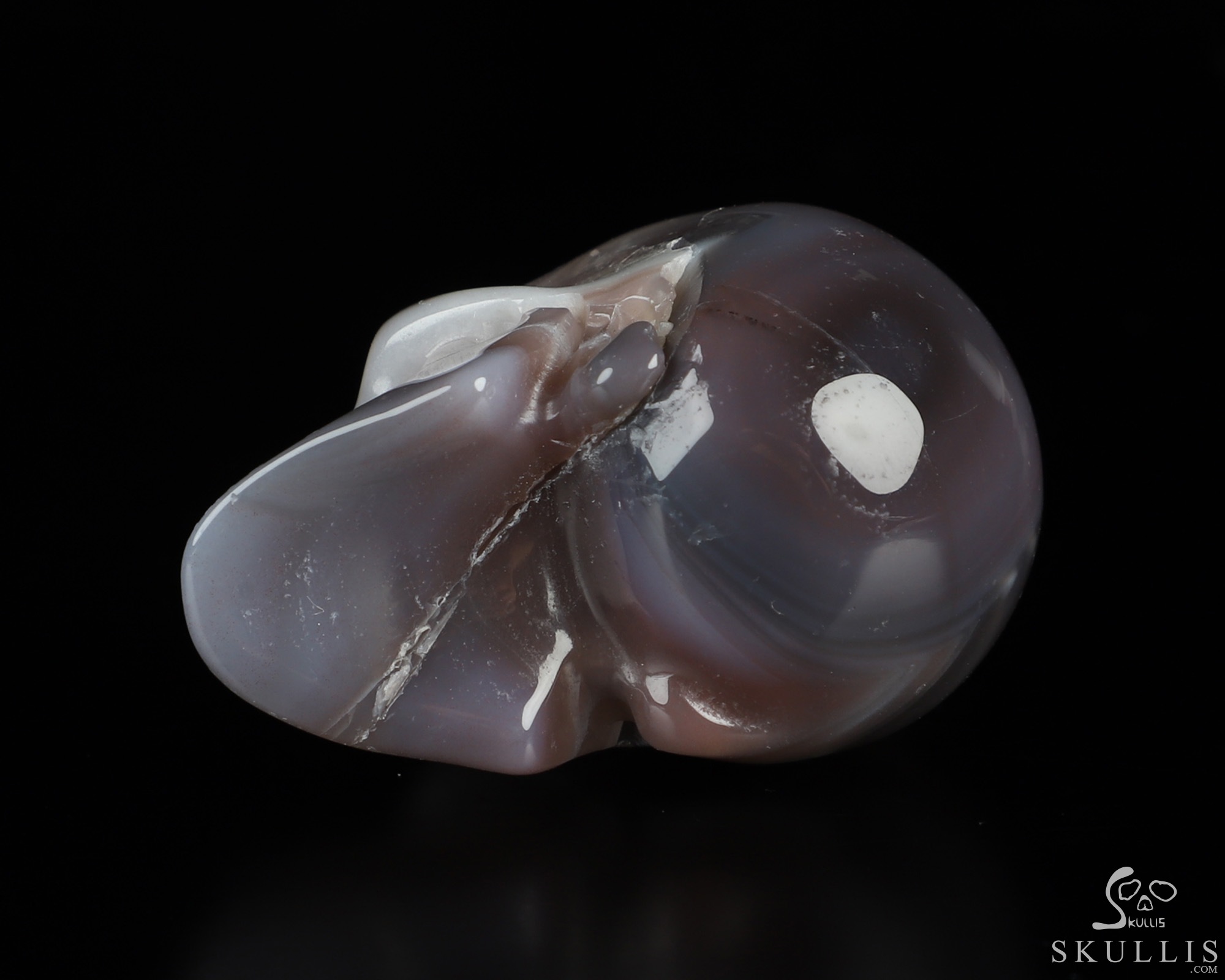 You are looking at a Mozambique Agate skull. The skull is 1.5 inches from front to back.
