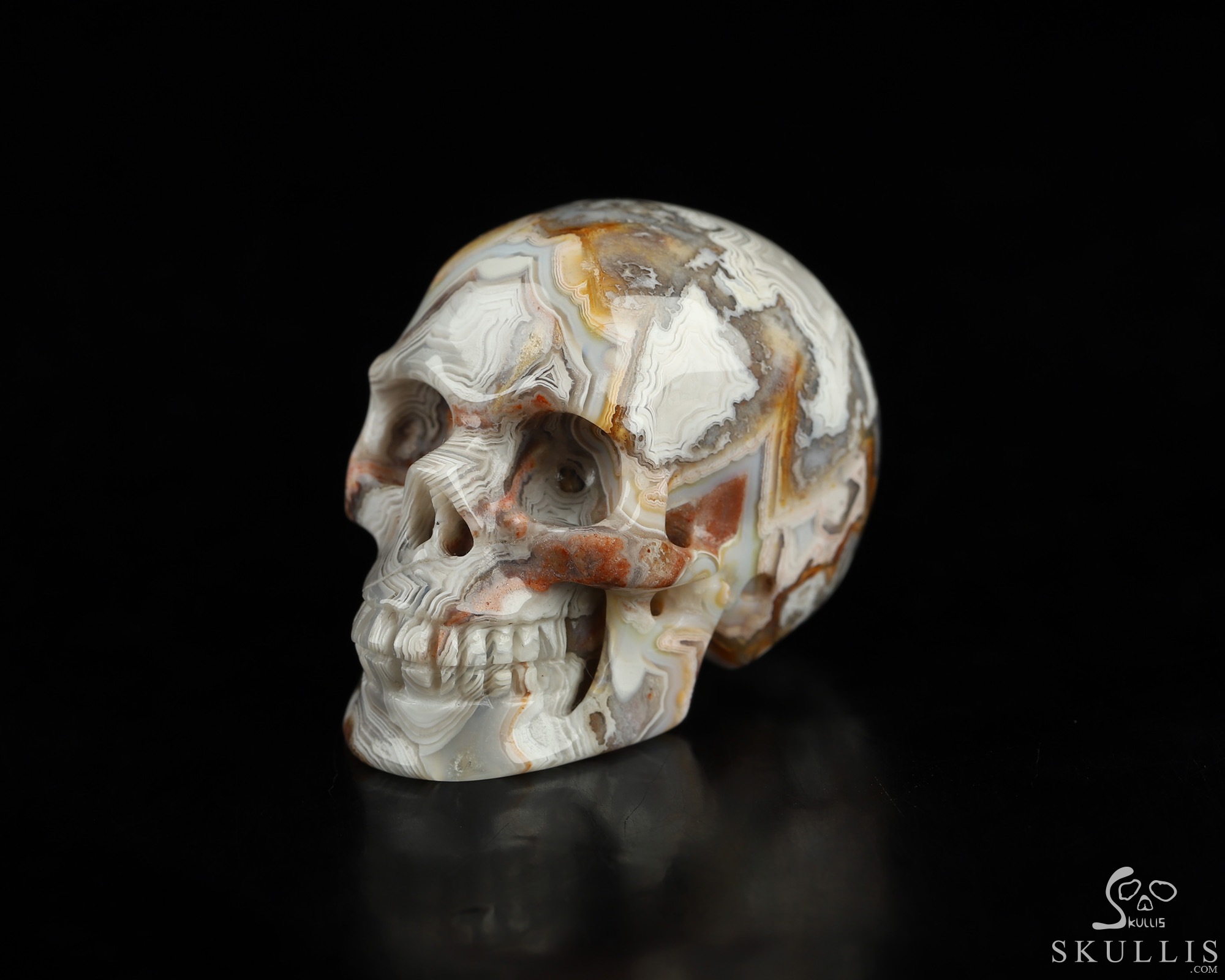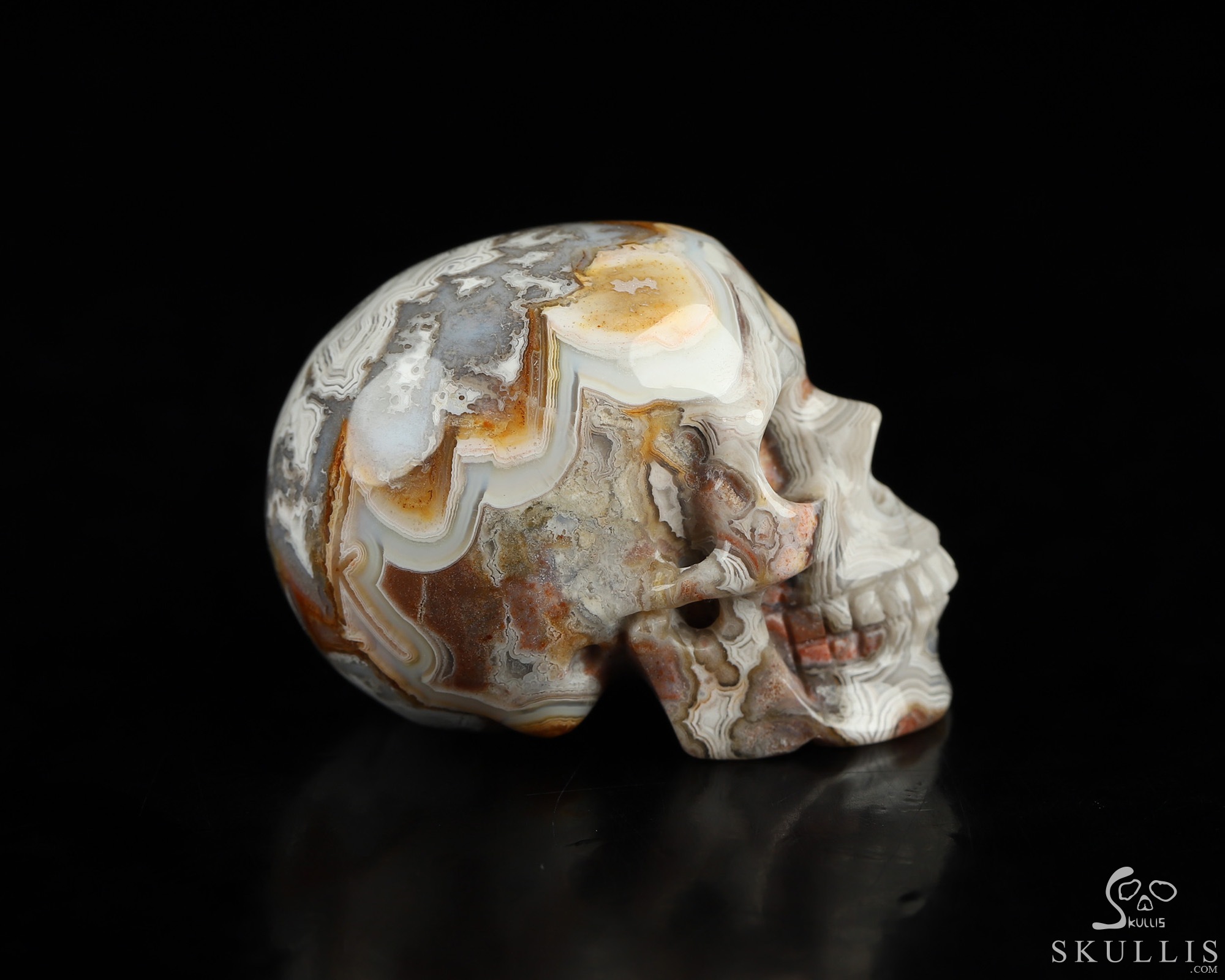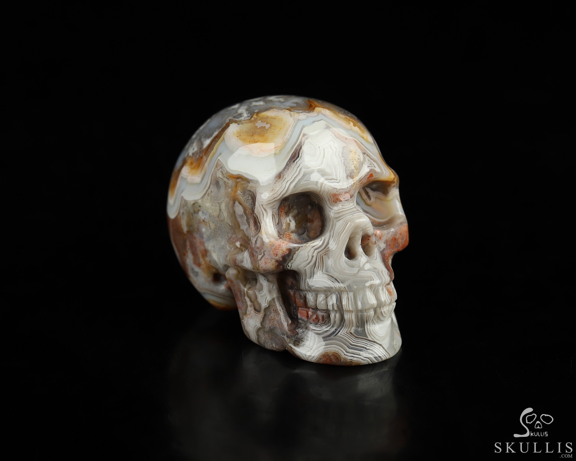 You are looking at a Red Crazy Lace Agate skull. The skull is 1.5 inches from front to back.