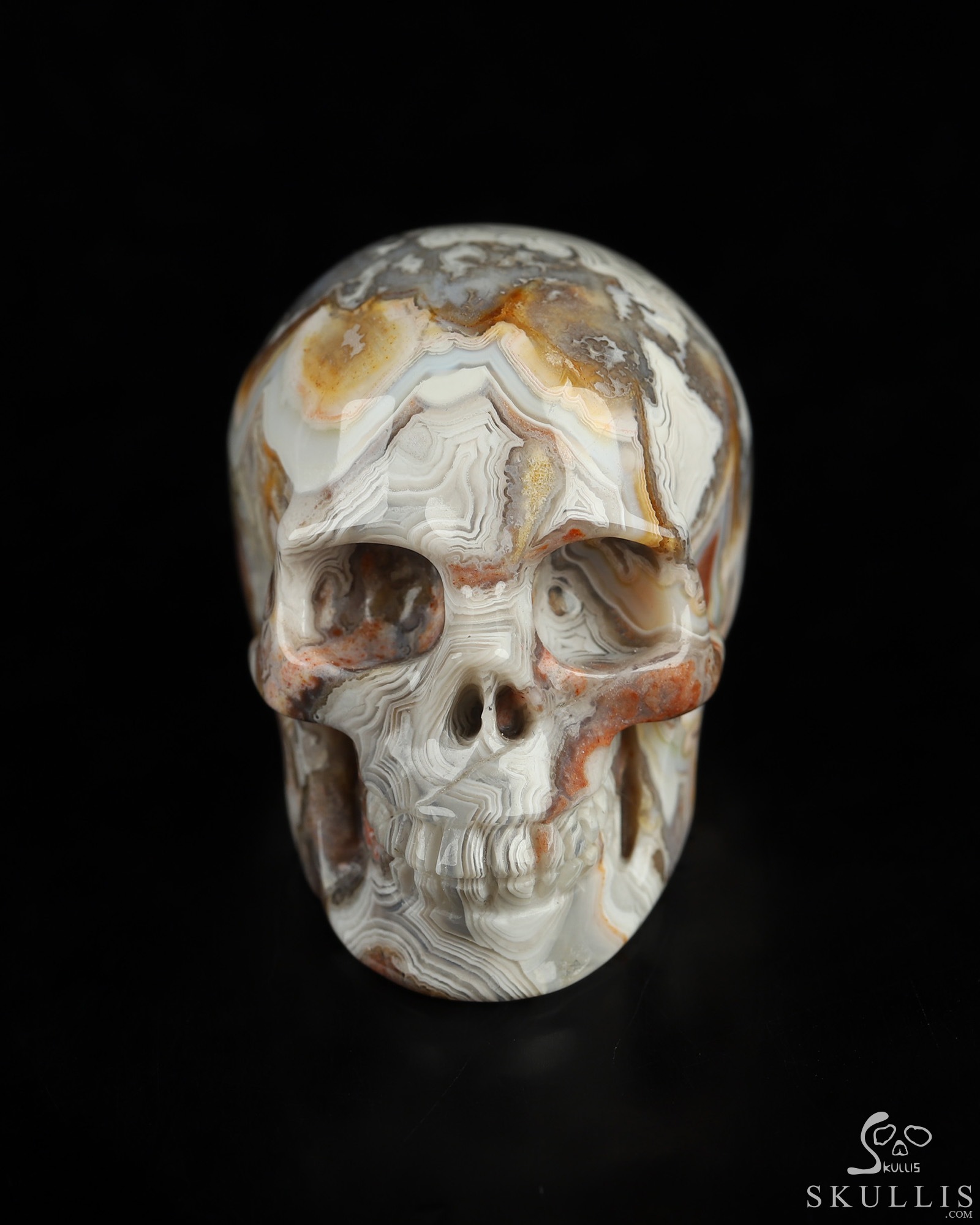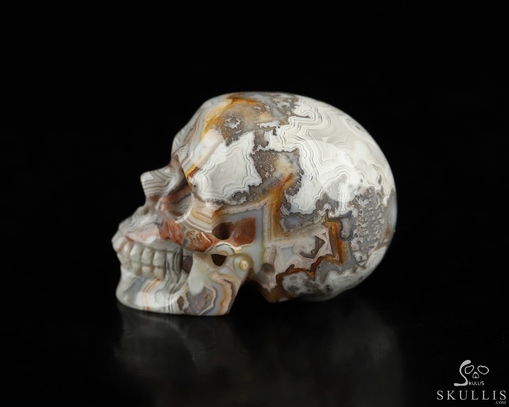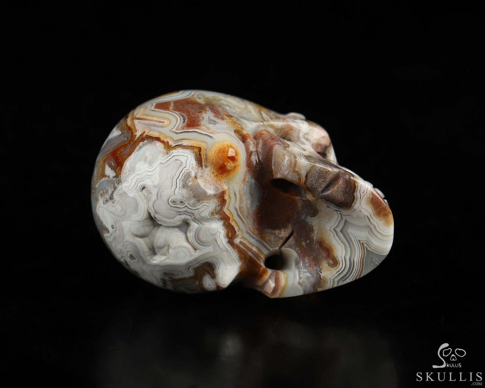 You are looking at a Red Crazy Lace Agate skull. The skull is 1.5 inches from front to back.