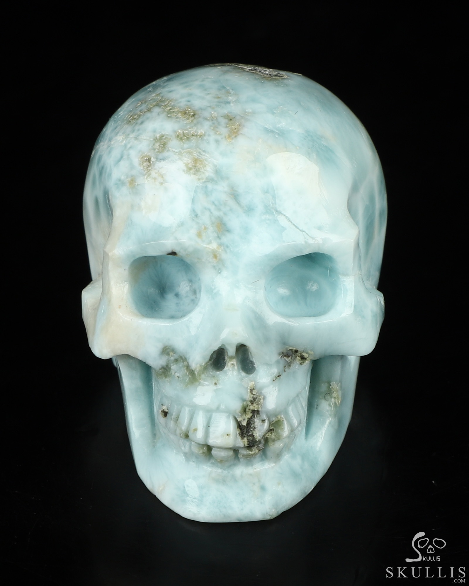 7.4" Larimar Carved Crystal Skull,Super Realistic, Crystal Healing