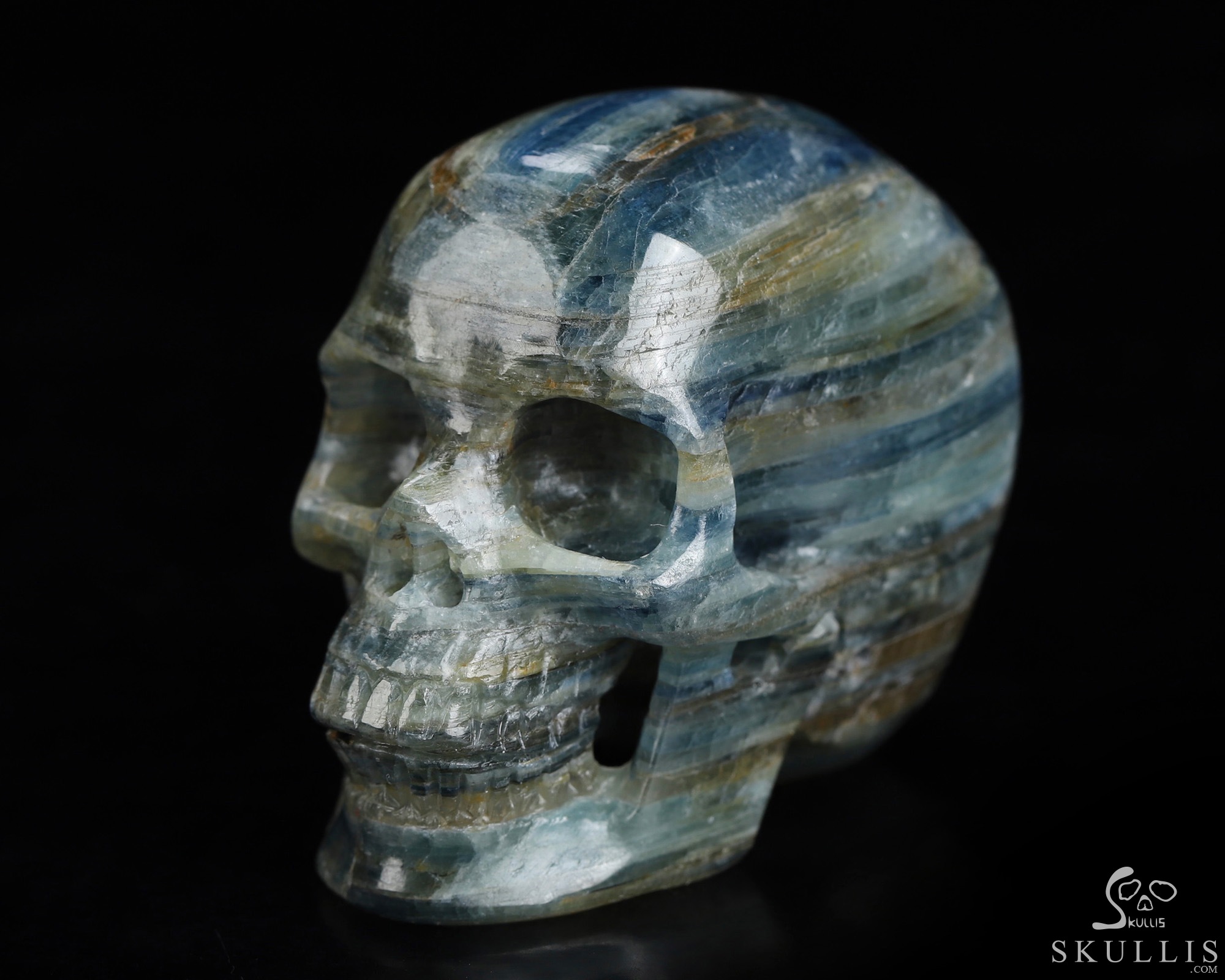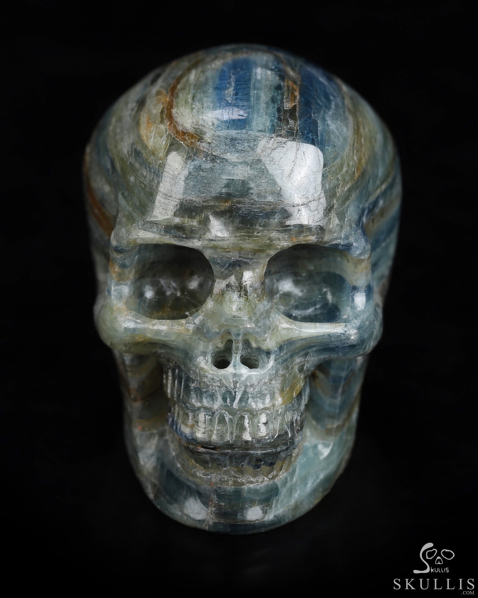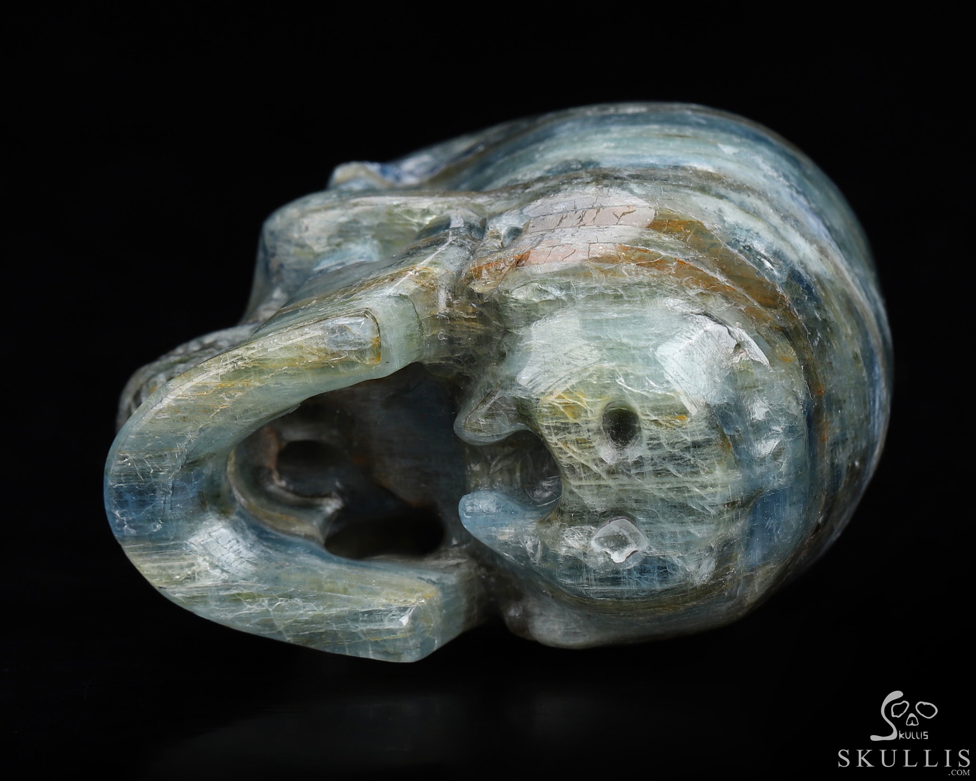 Mineral Specimen 7.6" Kyanite Carved Crystal Skull, Crystal Healing