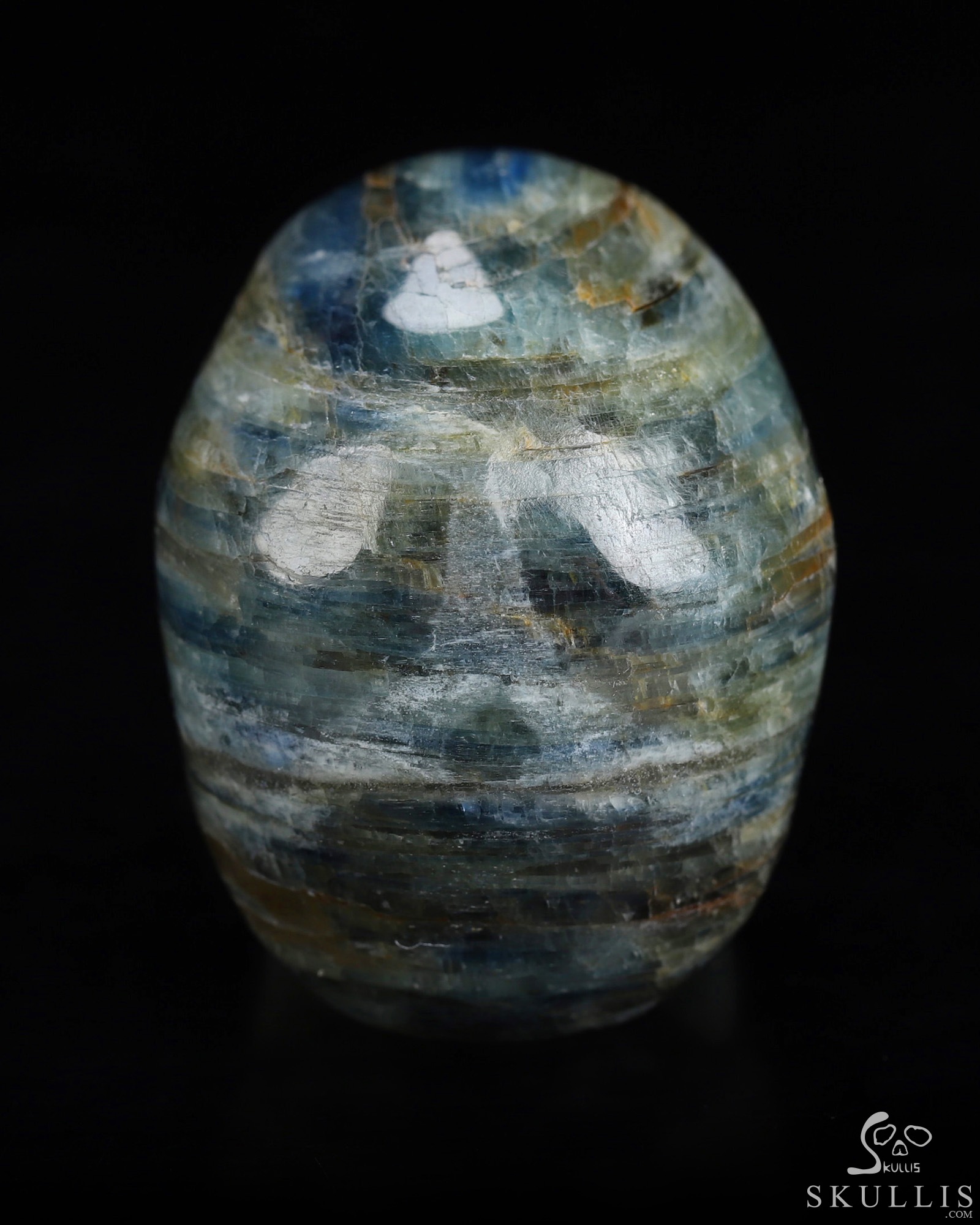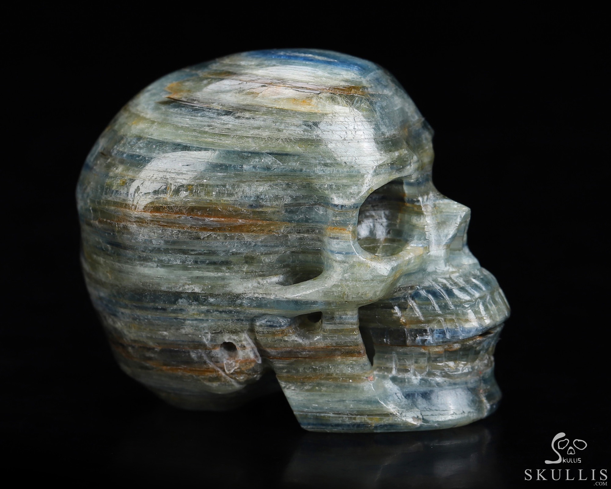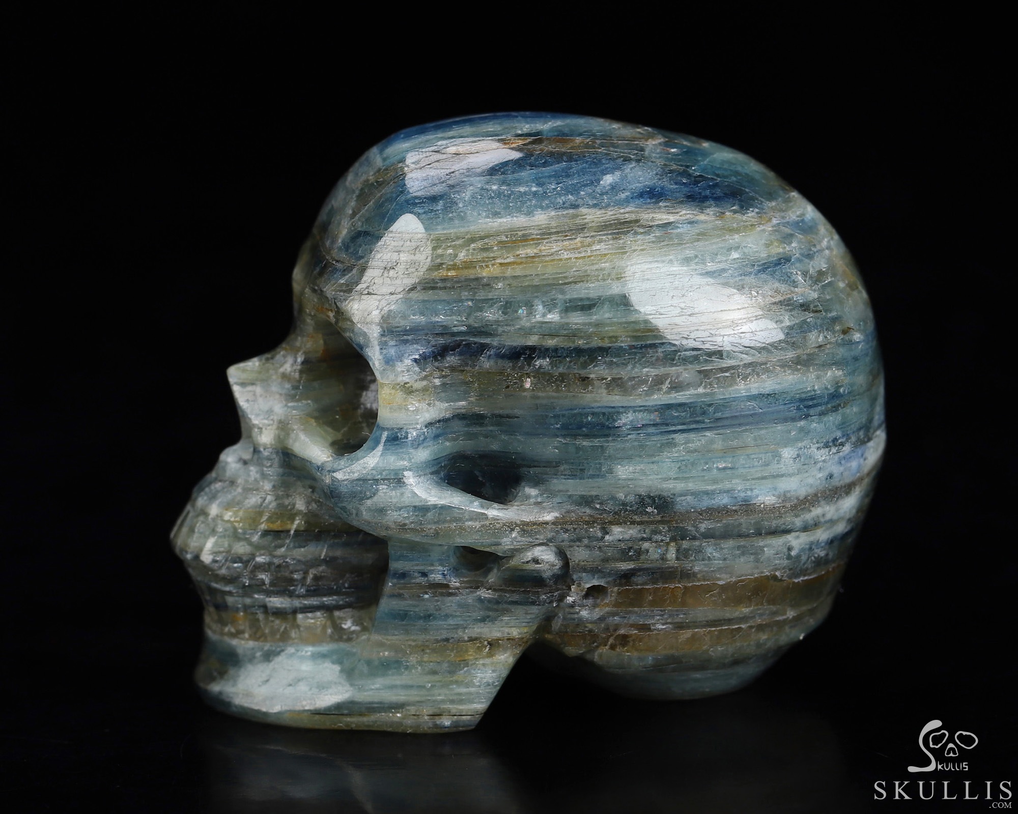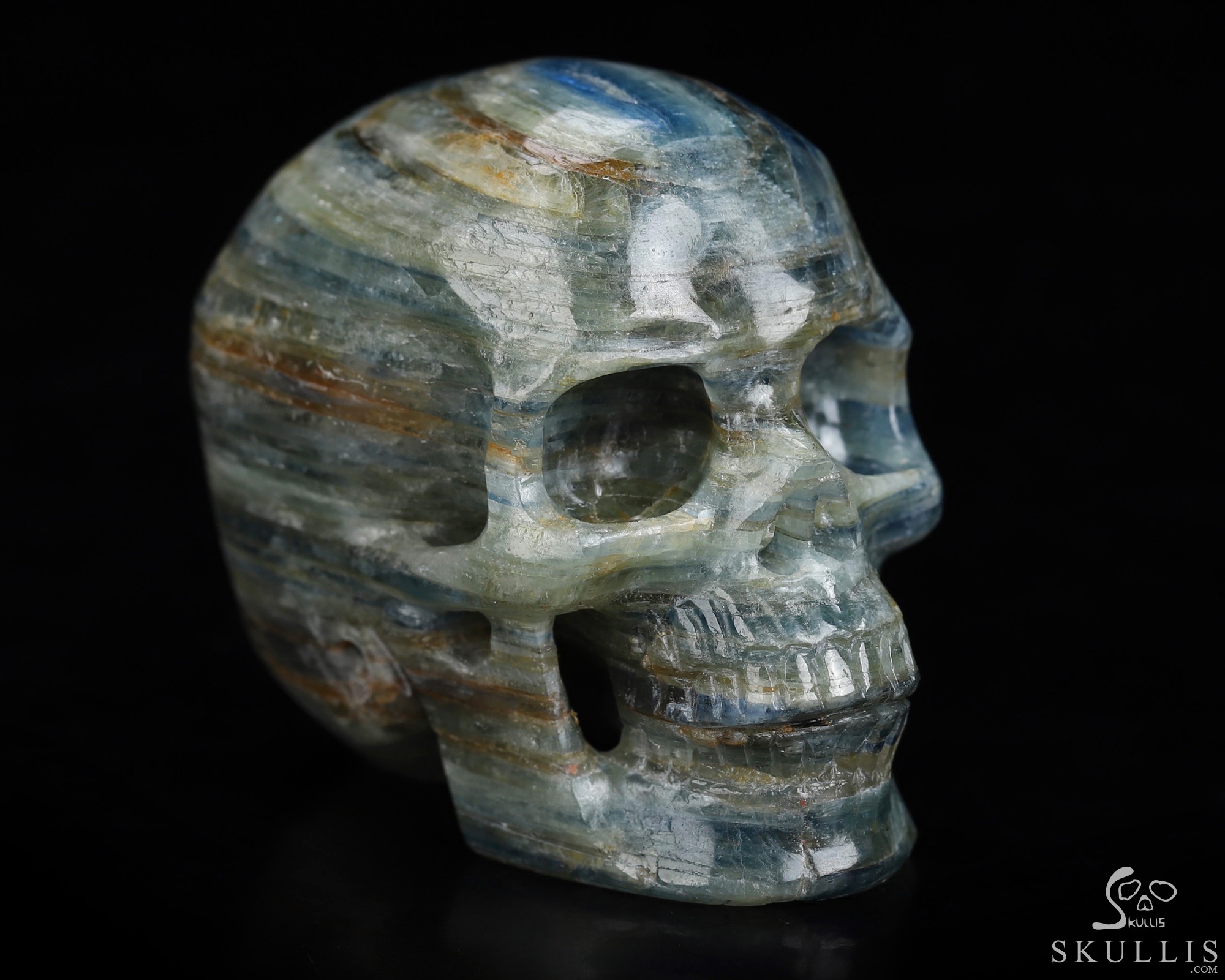 Mineral Specimen 7.6" Kyanite Carved Crystal Skull, Crystal Healing
