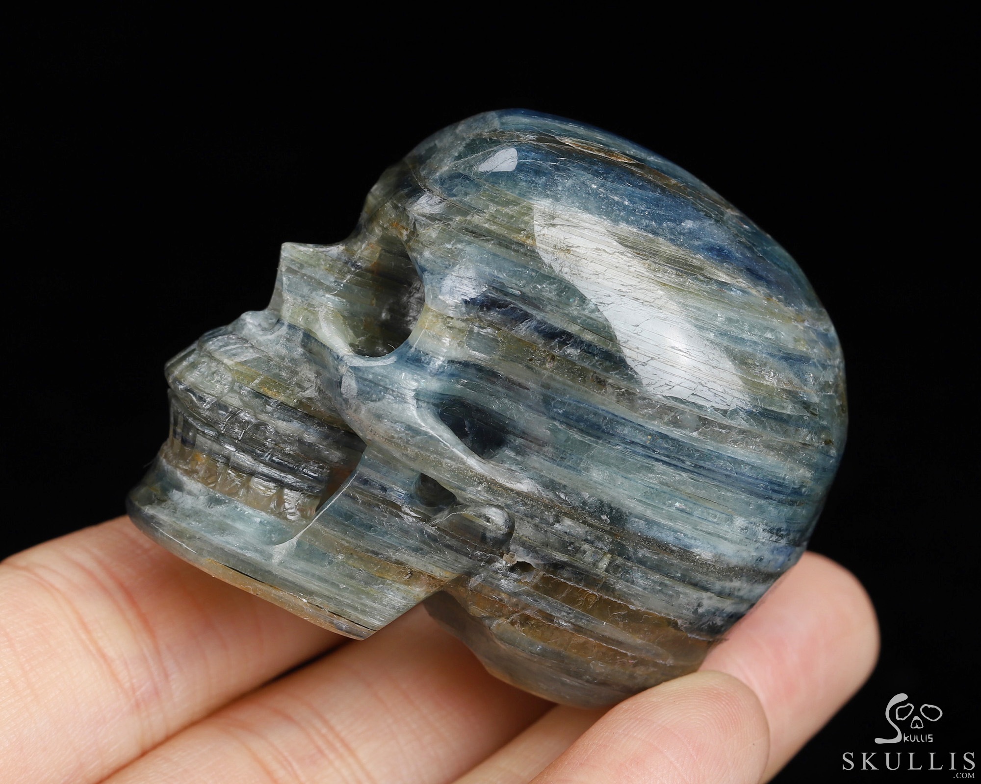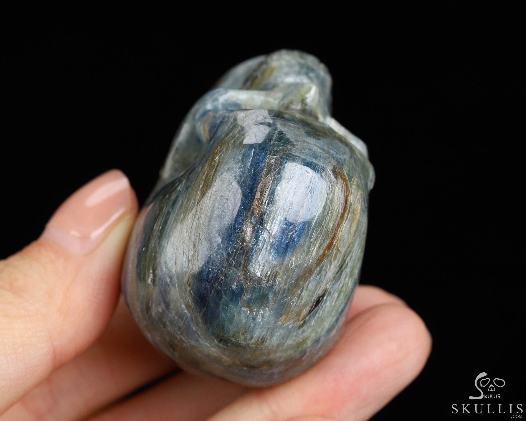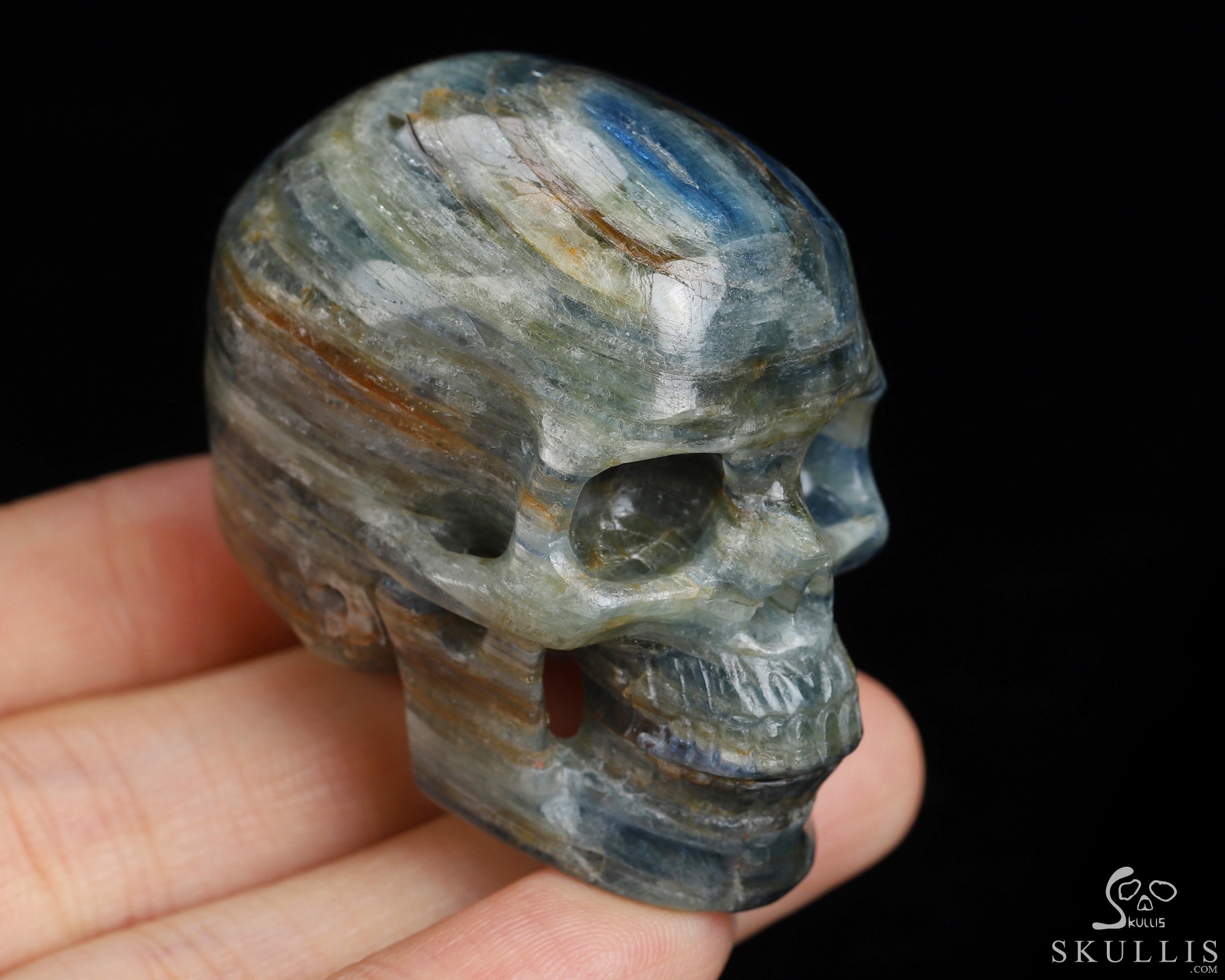 Gemstone 1.8" Kyanite Hand Carved Crystal Skull, Super Realistic, Crystal Healing