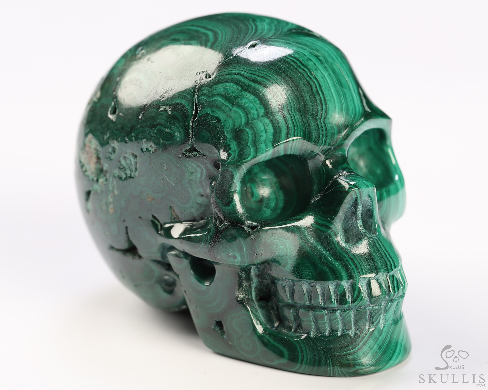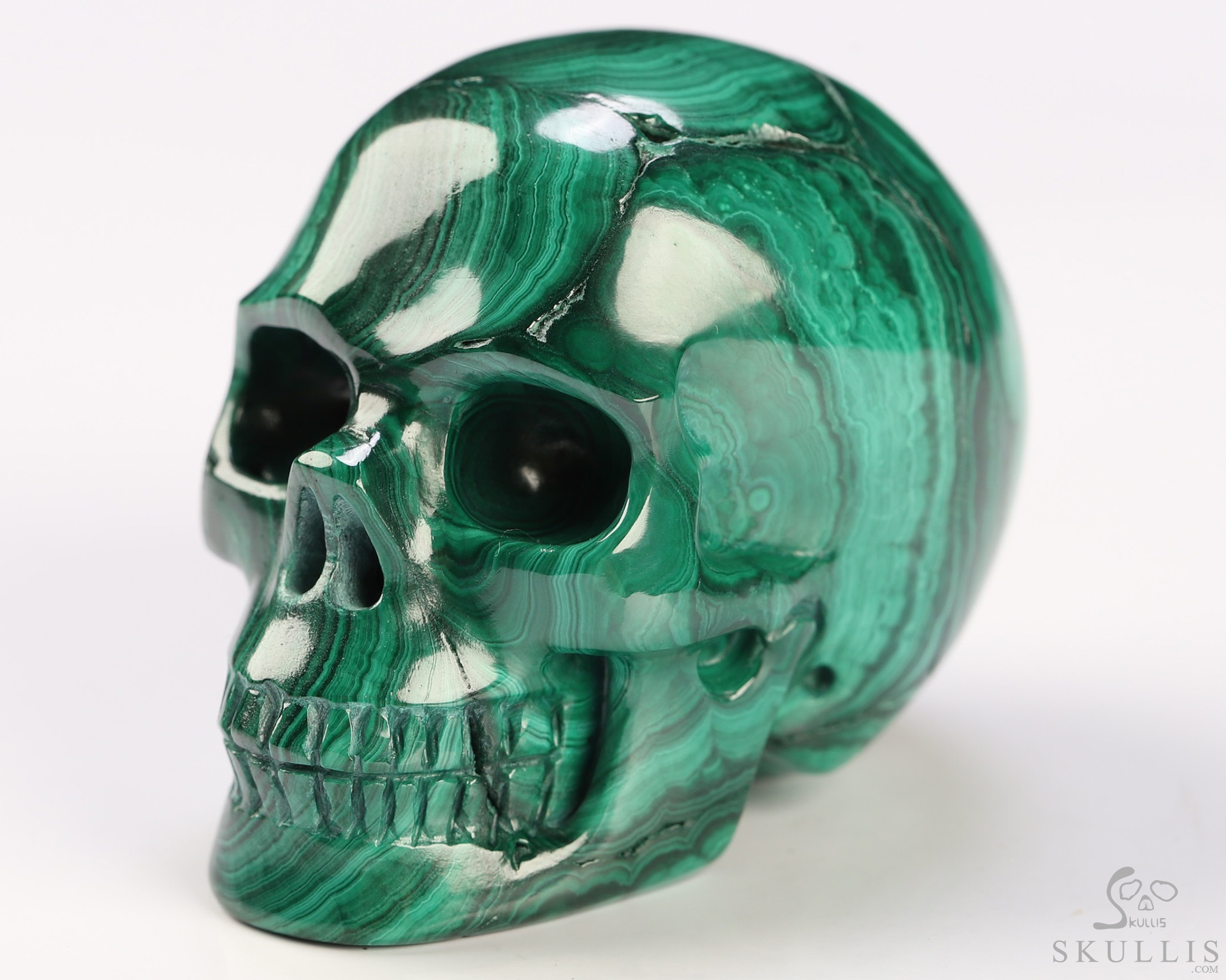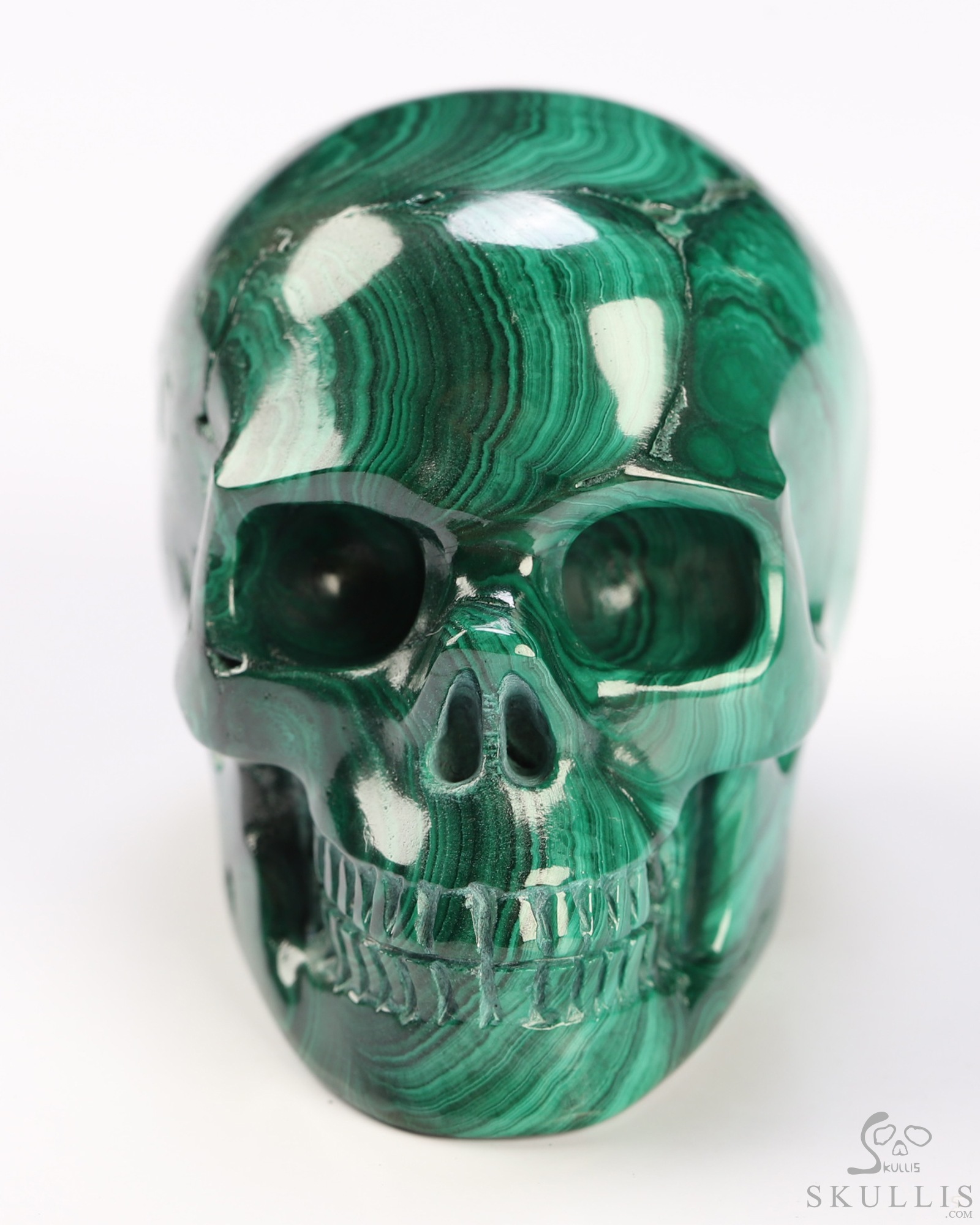 Gemstone 3.5" Malachite Hand Carved Crystal Skull, Super Realistic, Crystal Healing