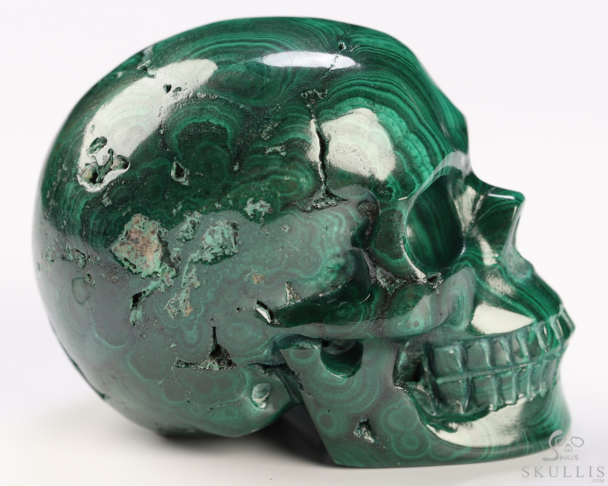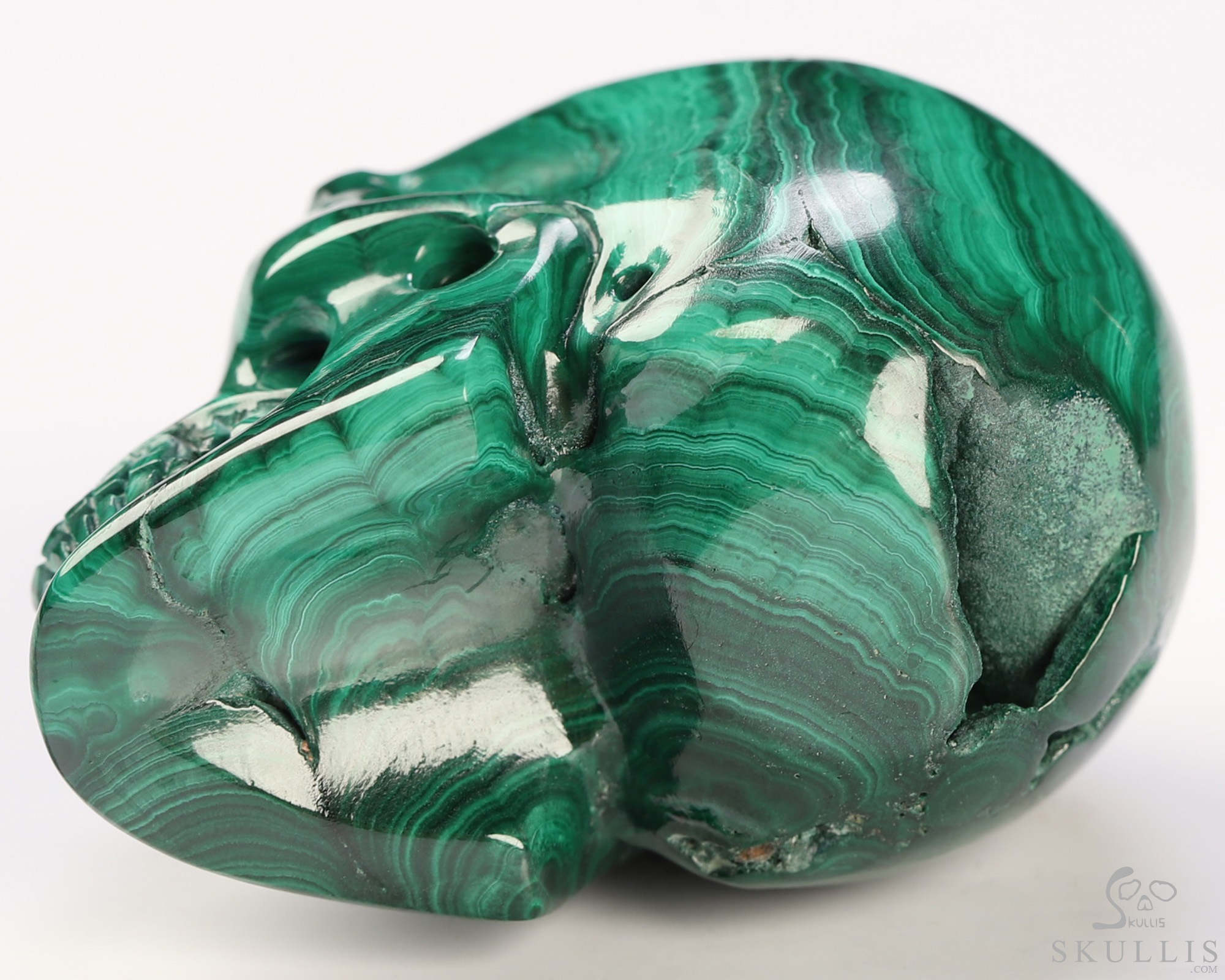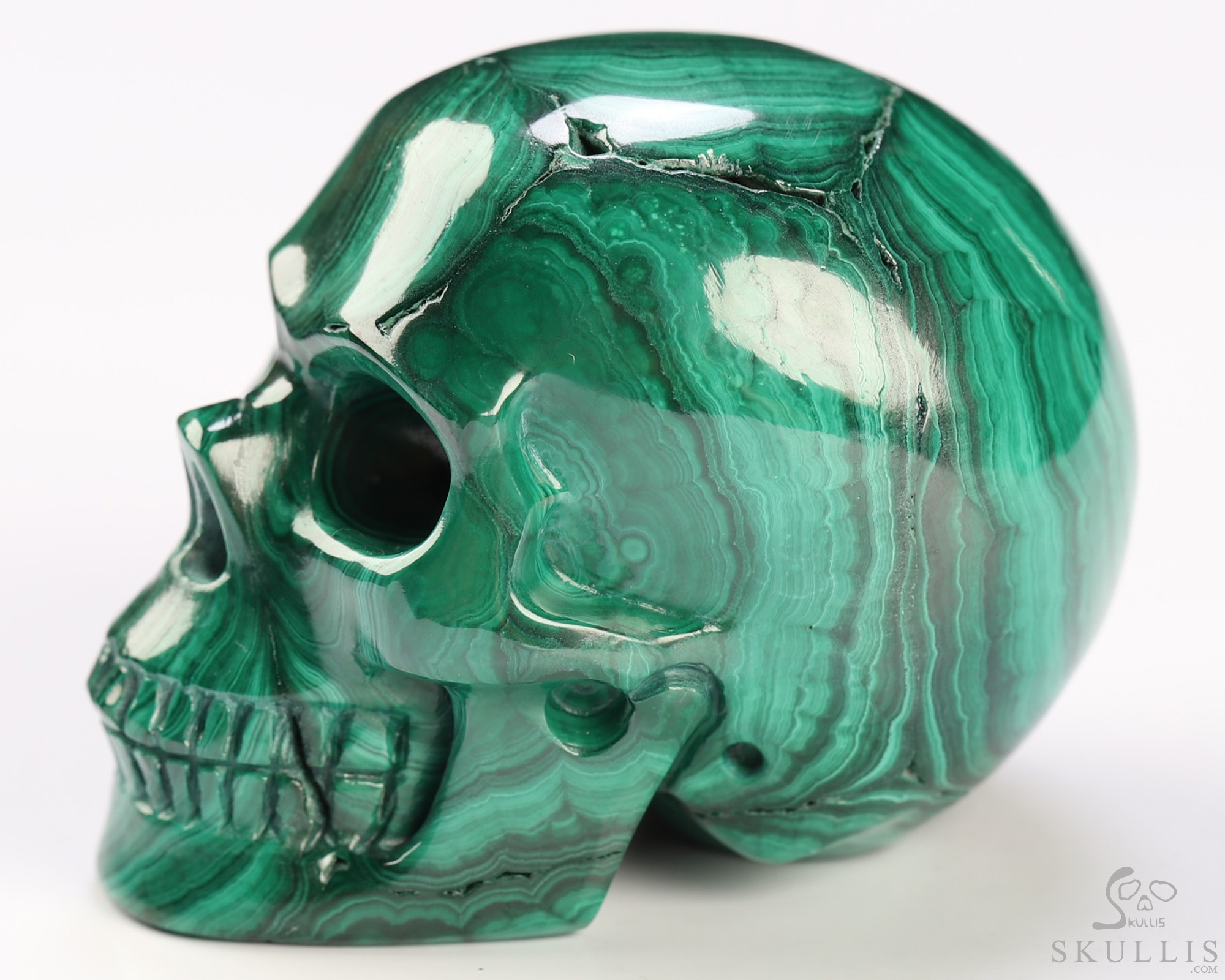 Gemstone 3.5" Malachite Hand Carved Crystal Skull, Super Realistic, Crystal Healing