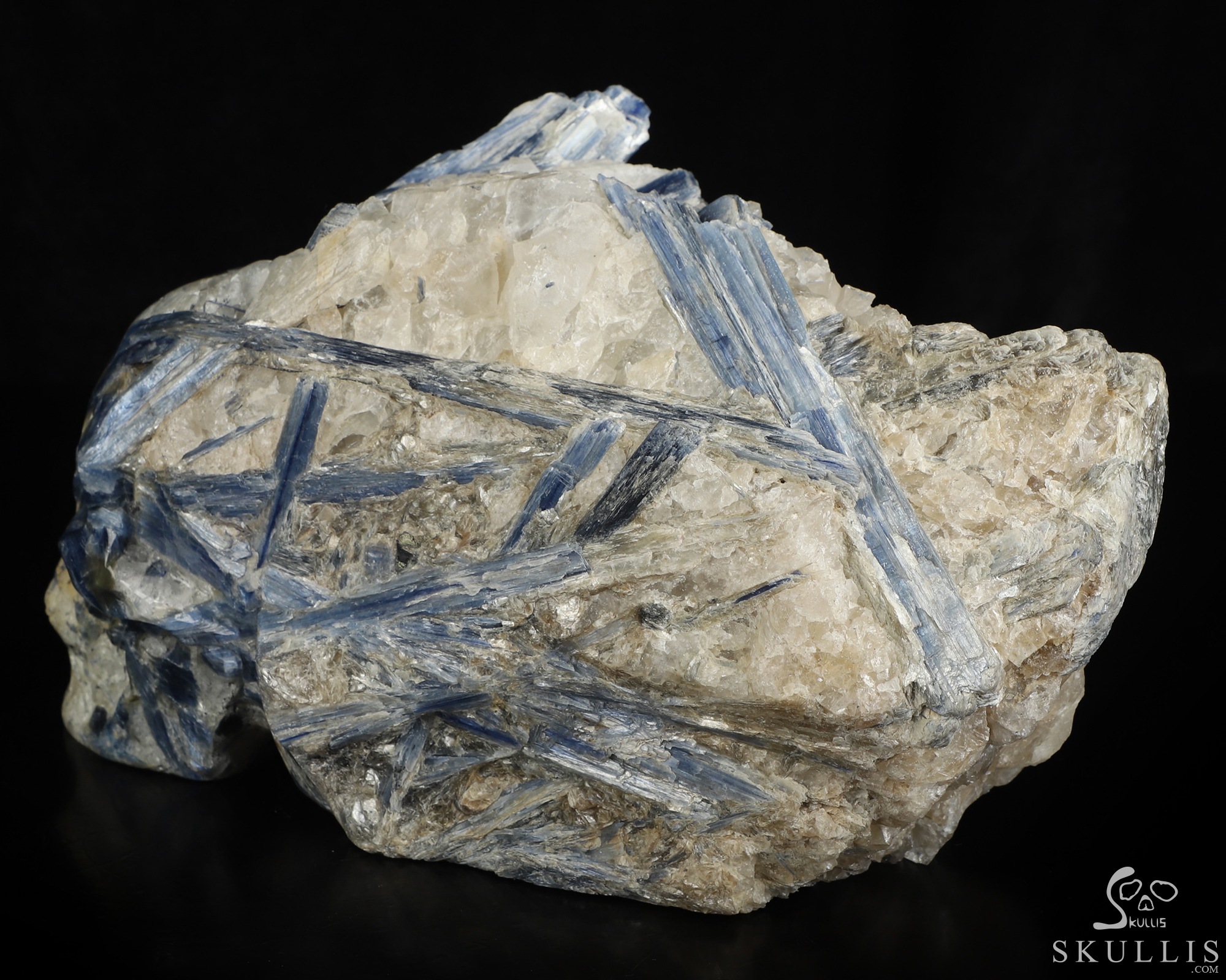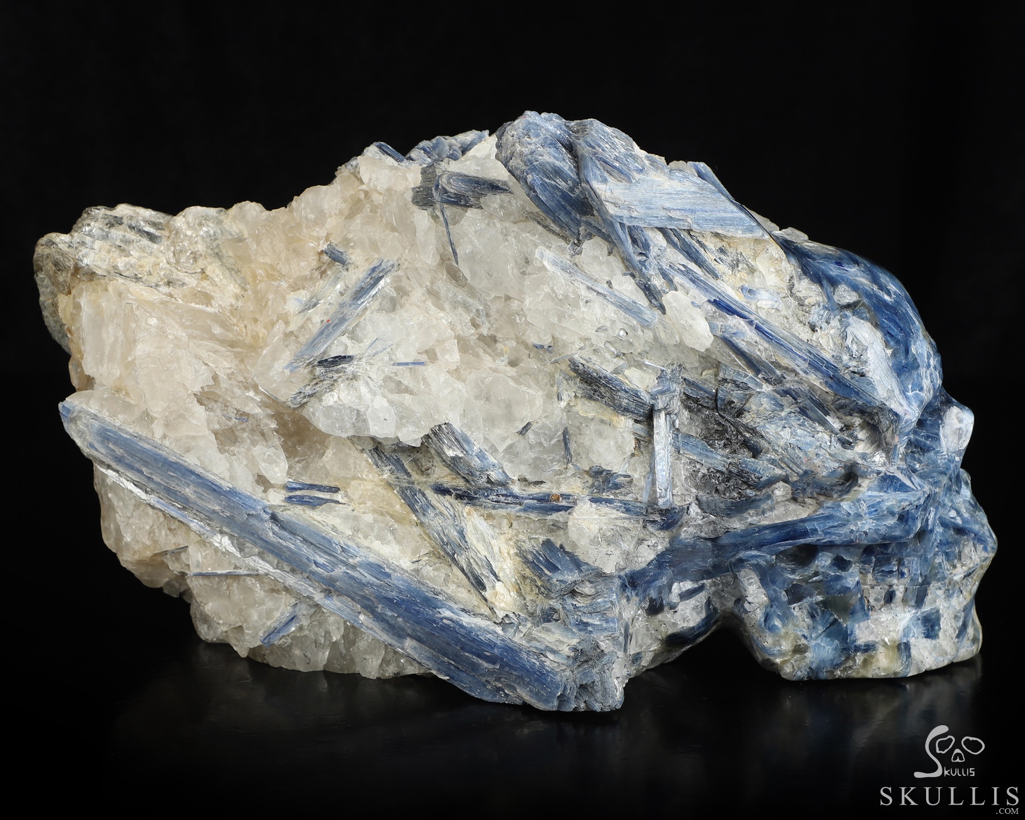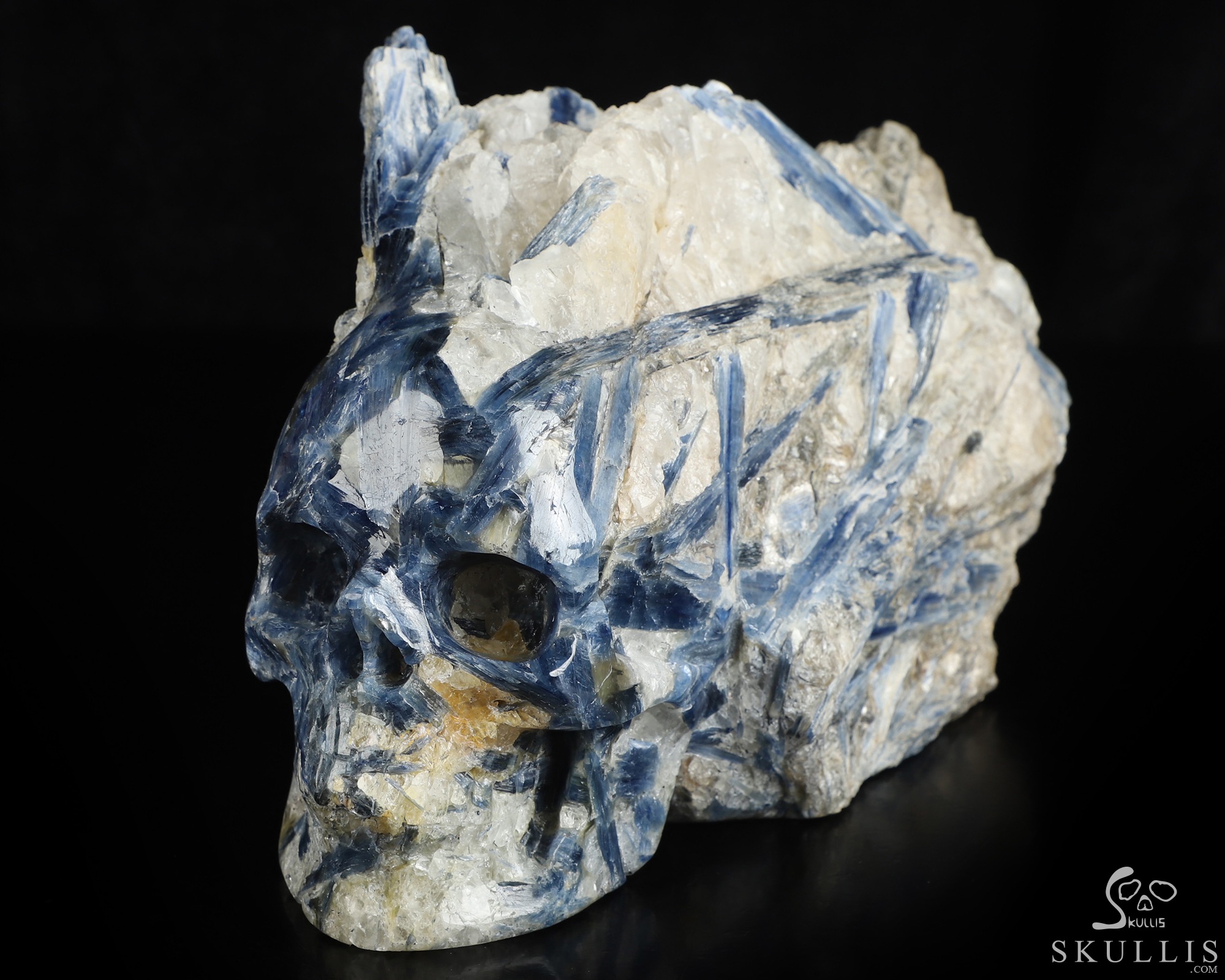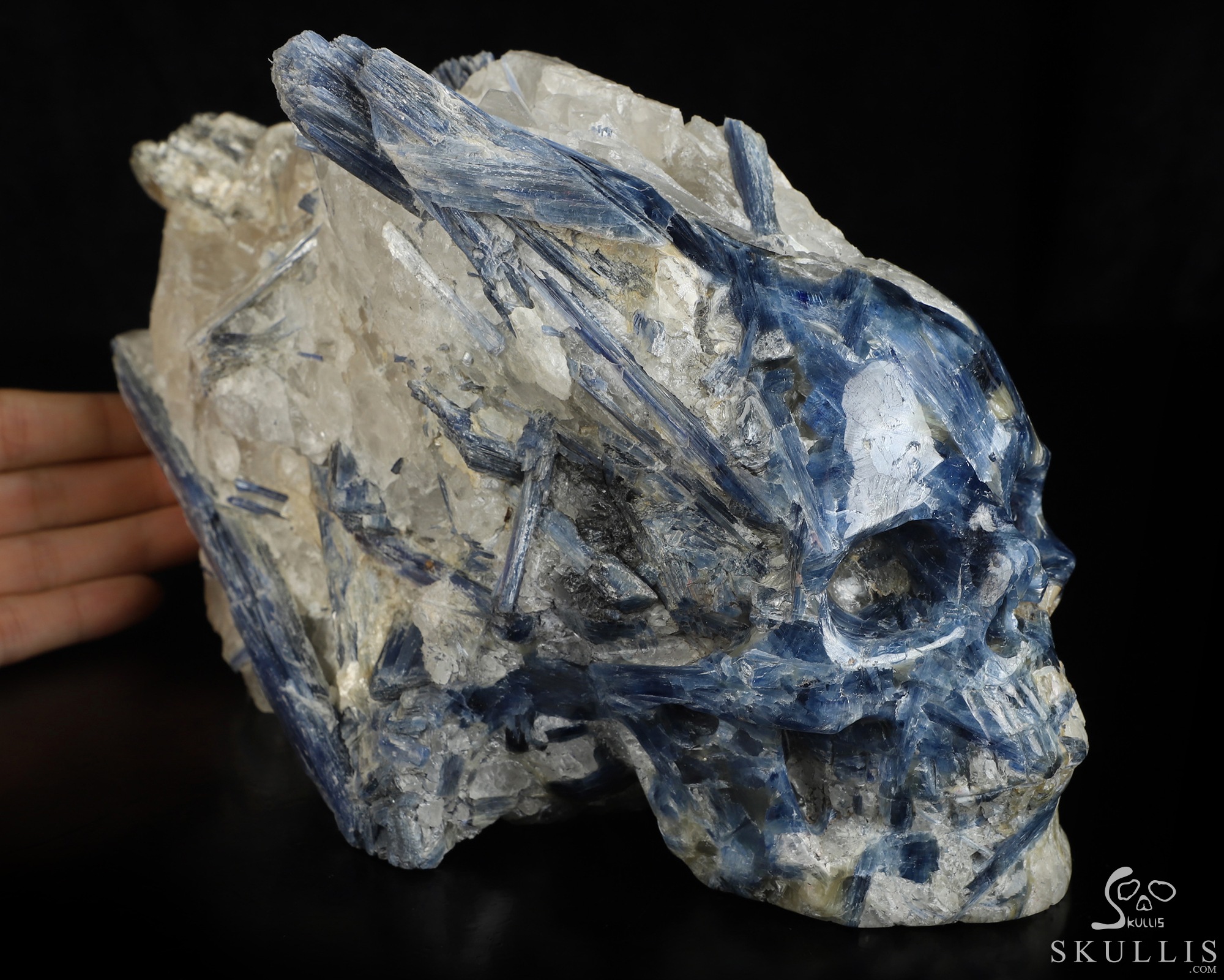 Gemstone 10.0" Kyanite Hand Carved Crystal Skull Fine Art Sculpture, Crystal Healing