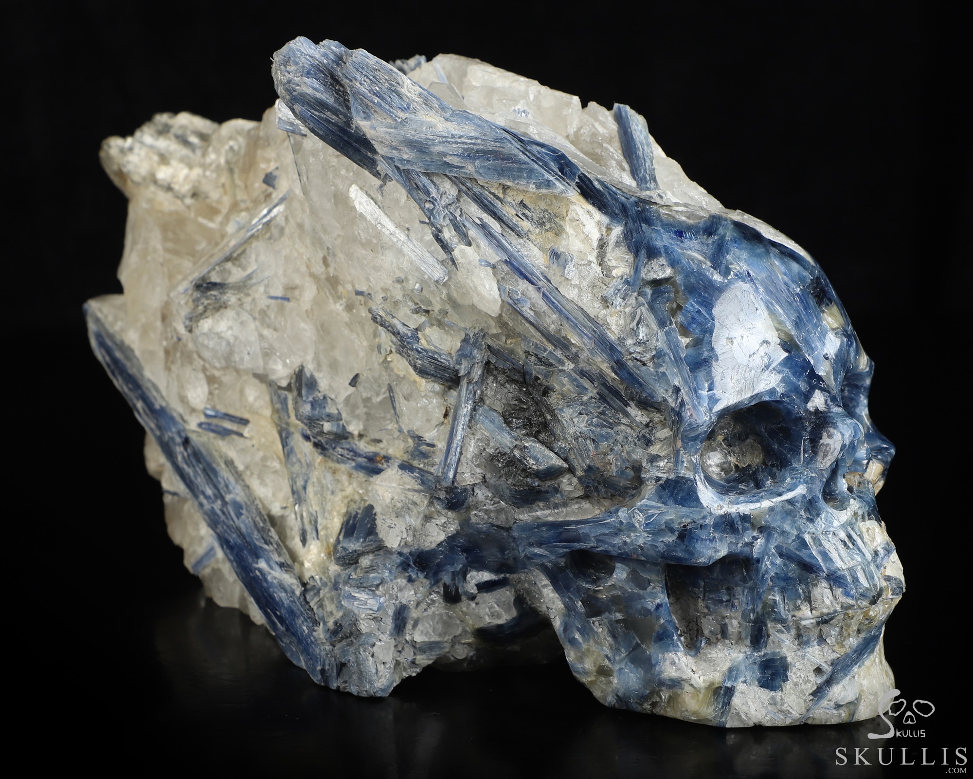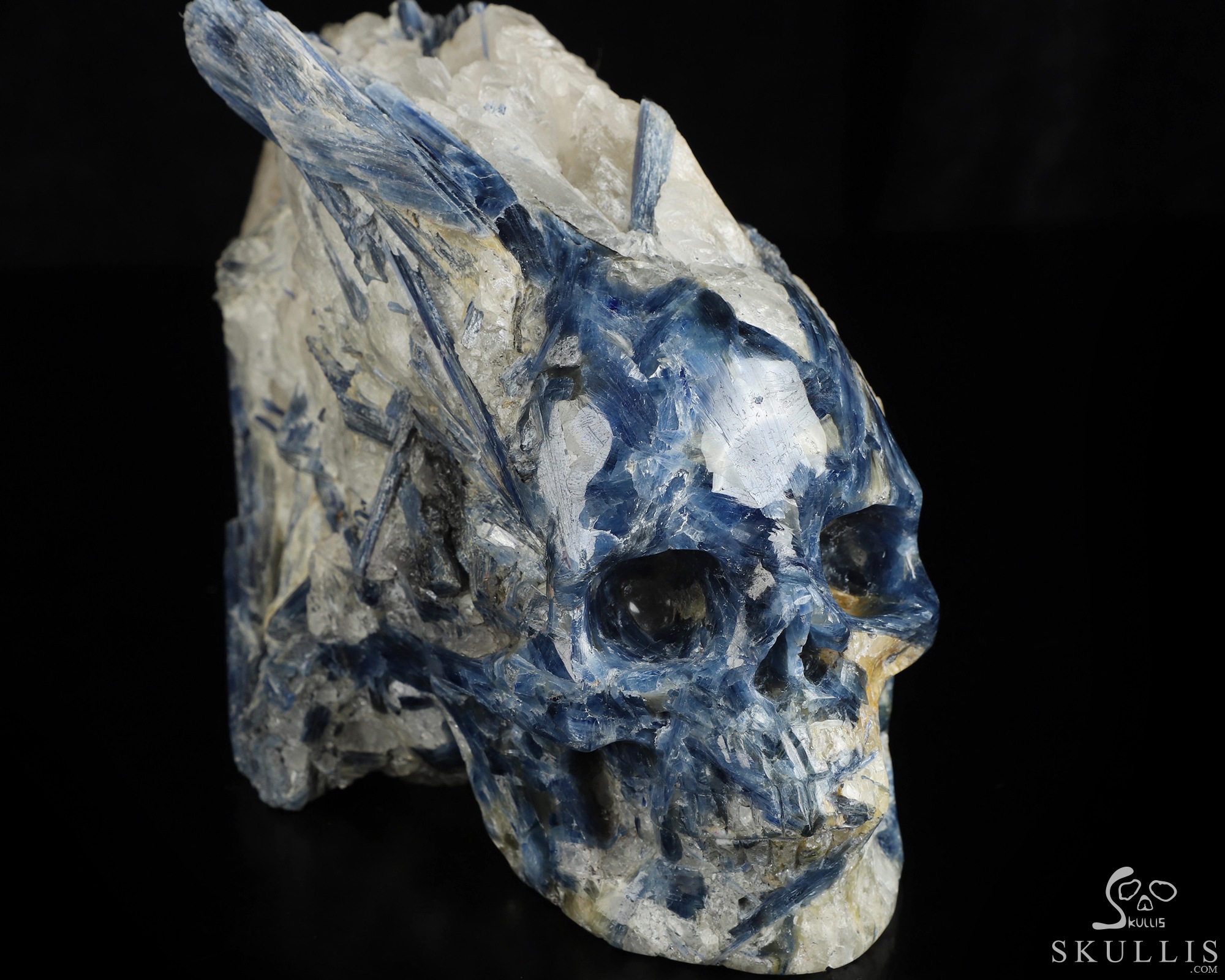 Mineral Specimen 7.6" Kyanite Carved Crystal Skull, Crystal Healing