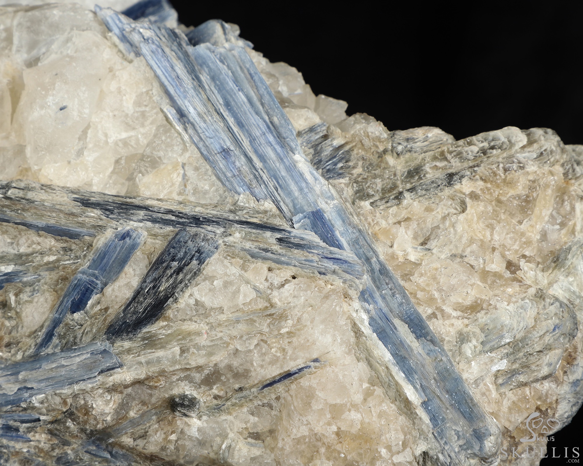 Kyanite is a polymorph with two other minerals; andalusite and sillimanite. A polymorph is a mineral that shares the same chemistry but a different crystal structure with another, or other, minerals. Kyanite is an attractive mineral that has a near sapphire like blue color in some especially nice specimens. Kyanite has a unique characteristic in that it has a wide variation in hardness, in the same crystal. The hardness of kyanite is approximately 4.5 when scratched parallel to the long axis of the crystal and approximately 6.5 when scratched perpendicular to or across the long axis. Other minerals usually have variable hardness on different crystal faces due to a different concentration and orientation of the atoms in the structure. Diamond is one such mineral, a fact gem cutters take advantage of often.
