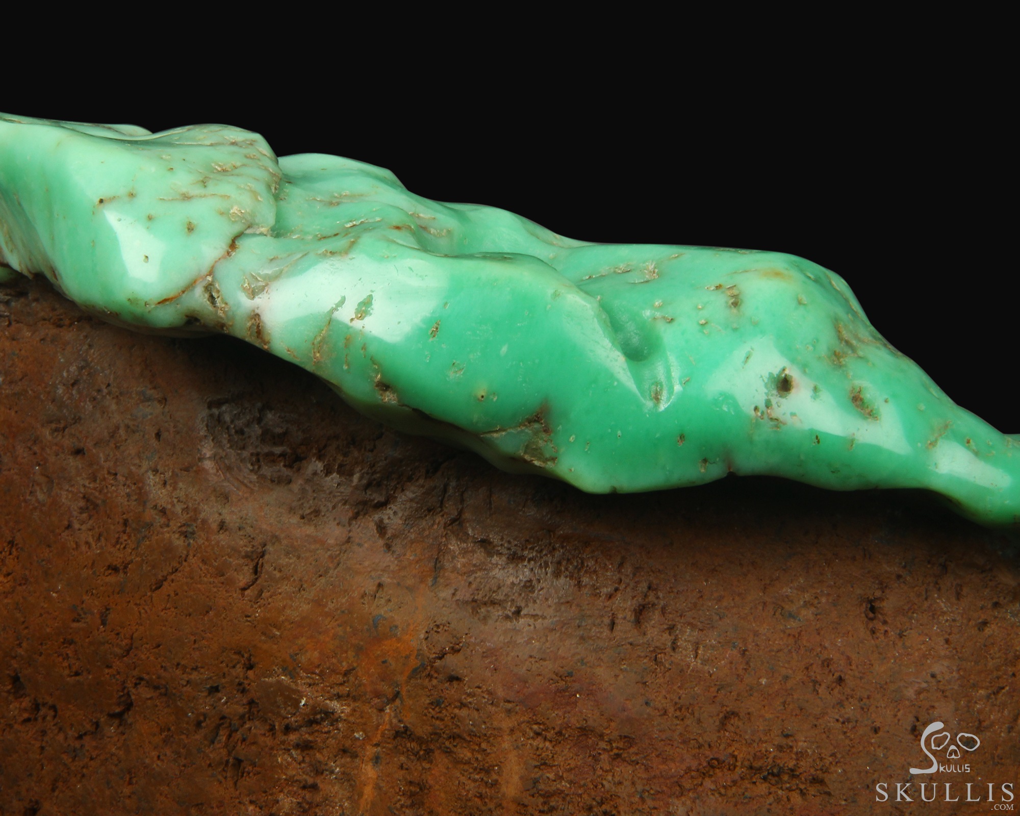 You are looking at a Chrysoprase Matrix skull. The skull is 11.9 inches from front to back.
