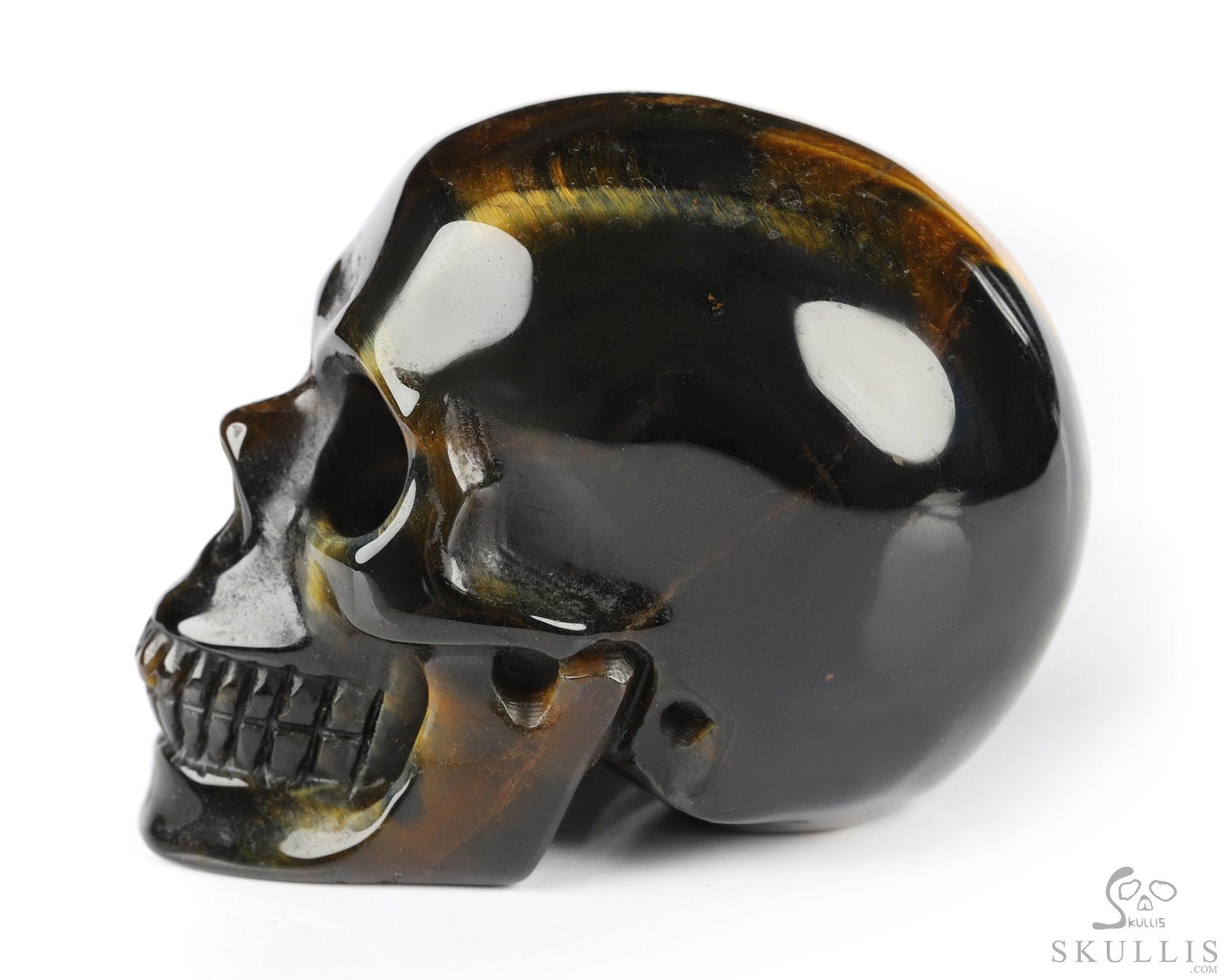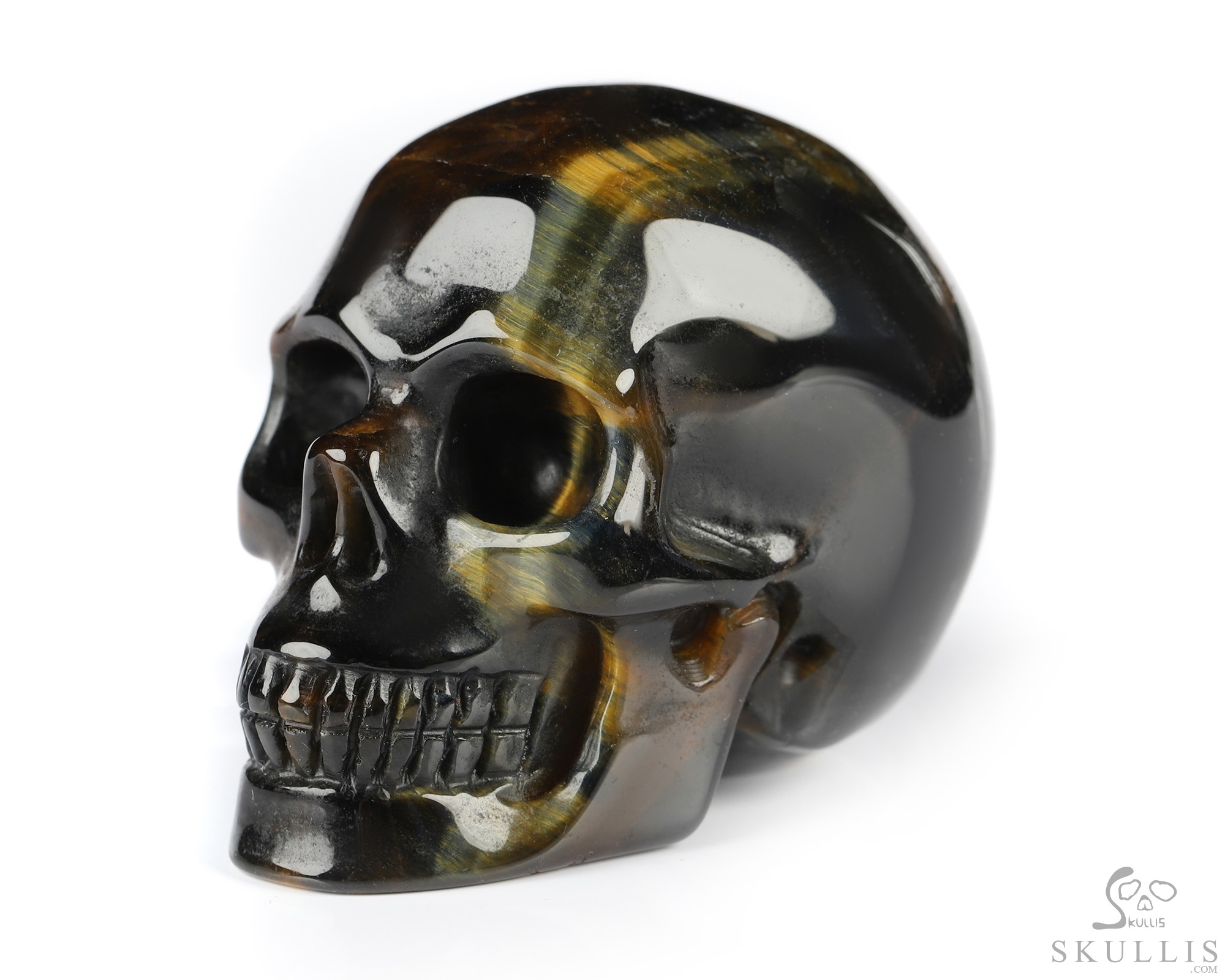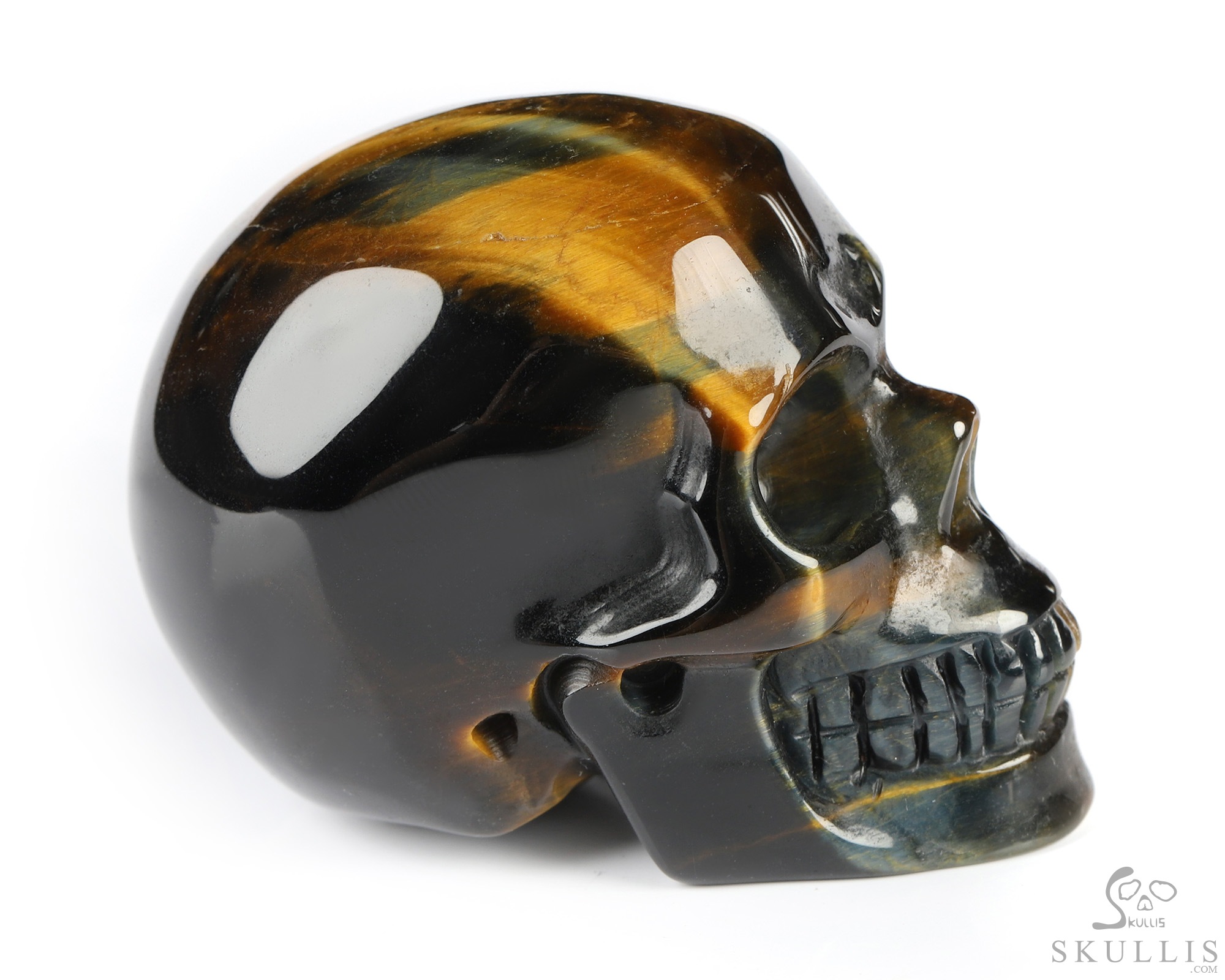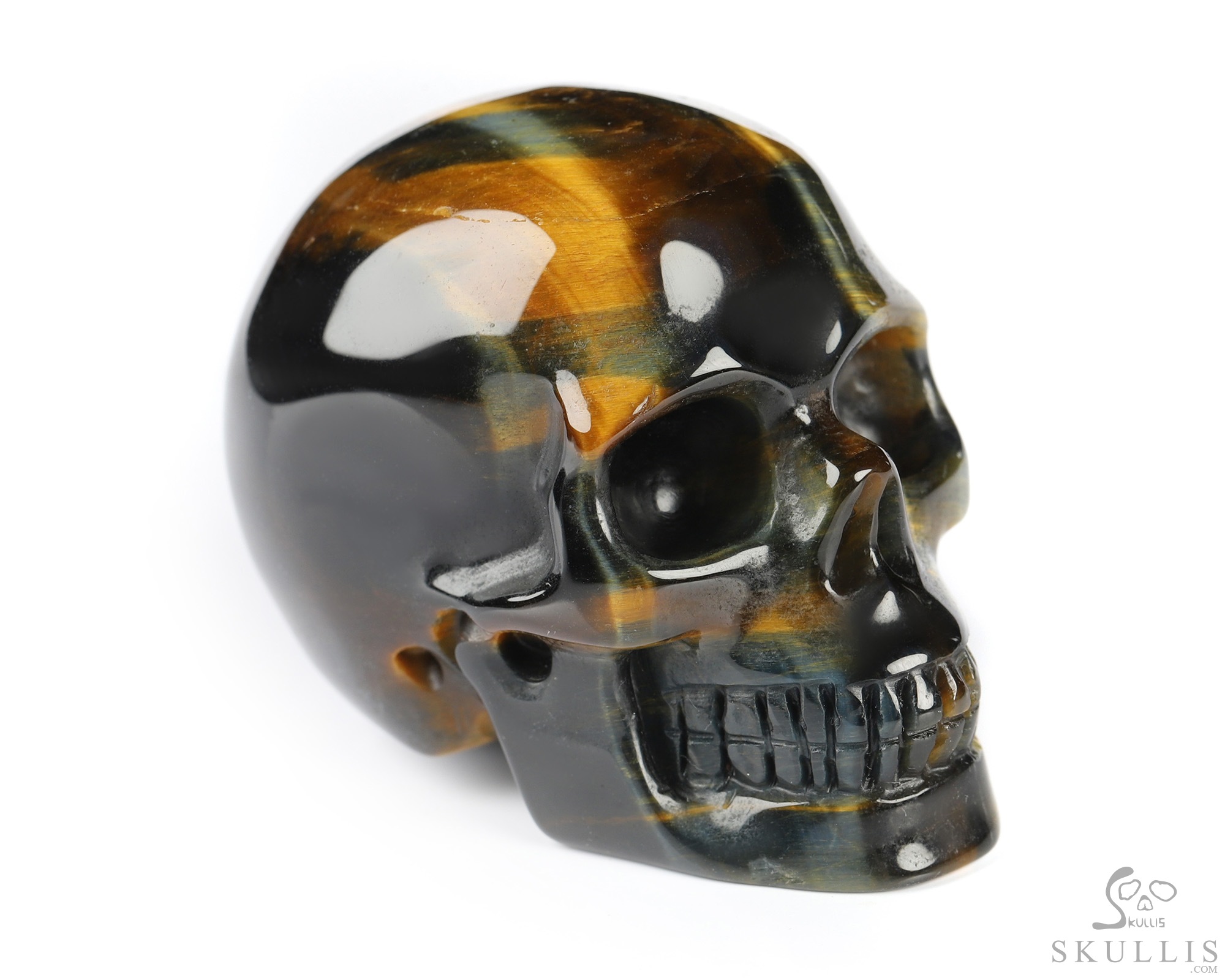 Gemstone 3.7" Blue & Gold Tiger's Eye Hand Carved Crystal Skull, Super Realistic, Crystal Healing