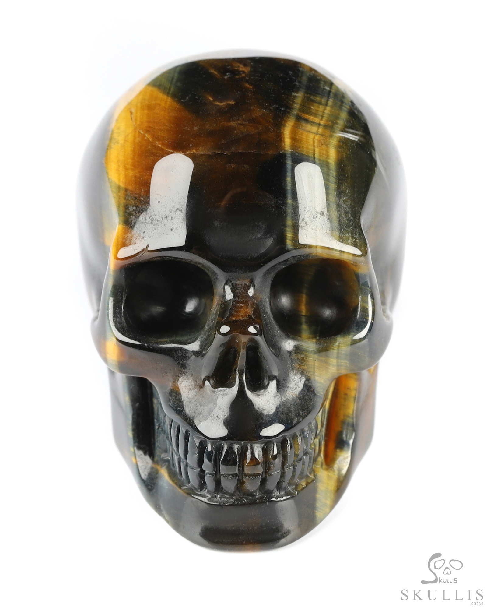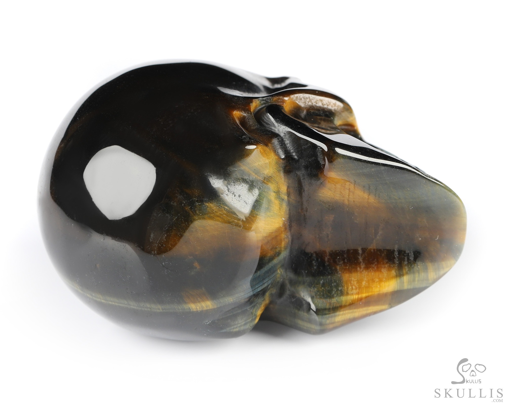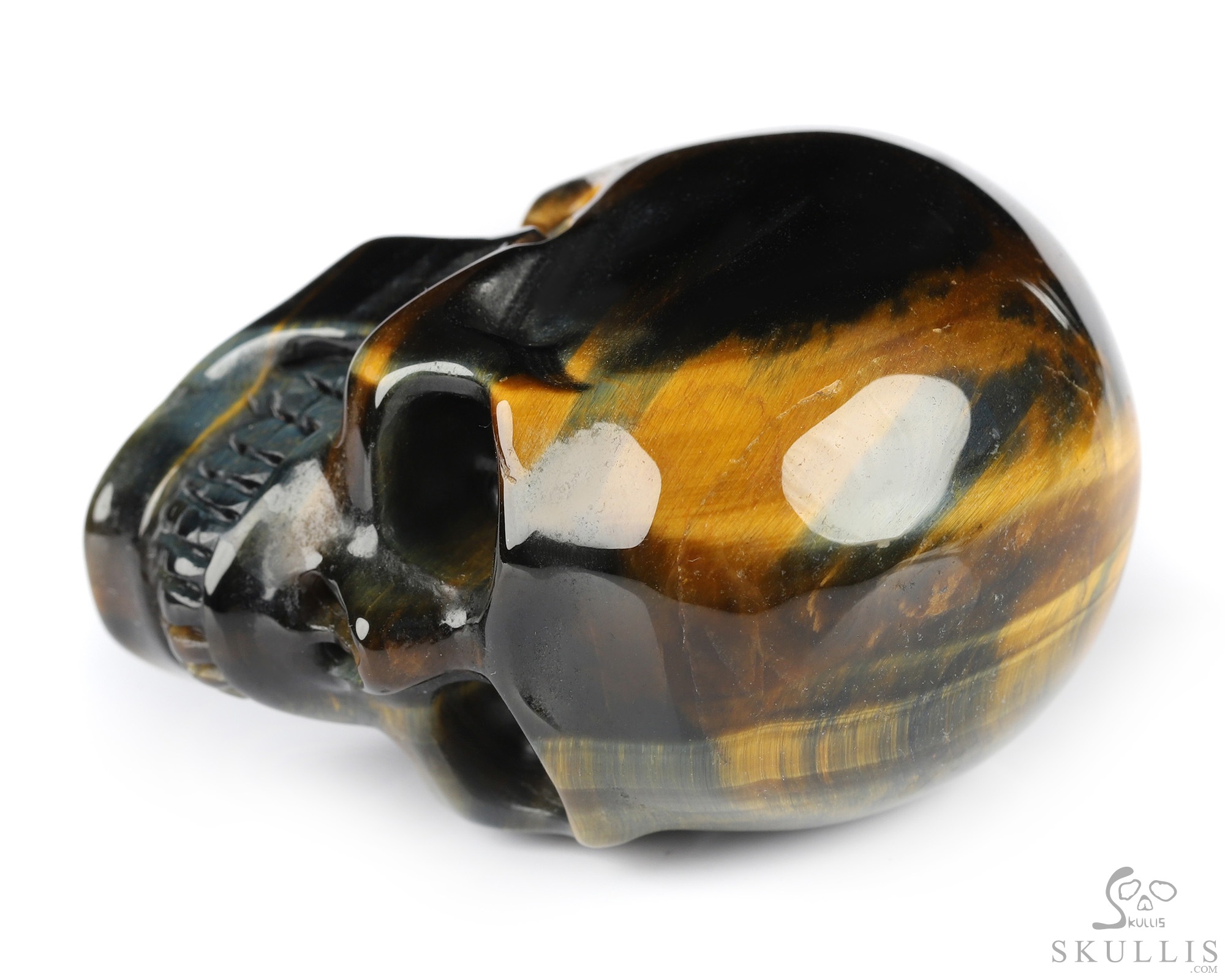 3.0" Blue & Gold Tiger's Eye Carved Crystal Skull, Crystal Healing