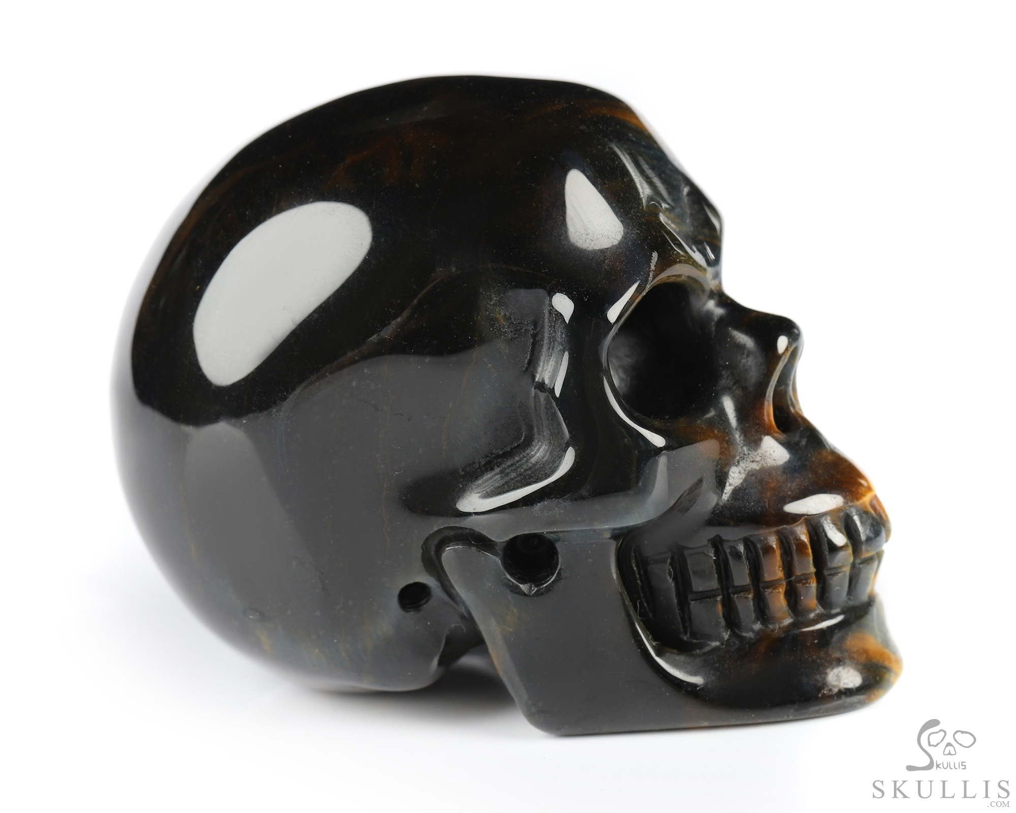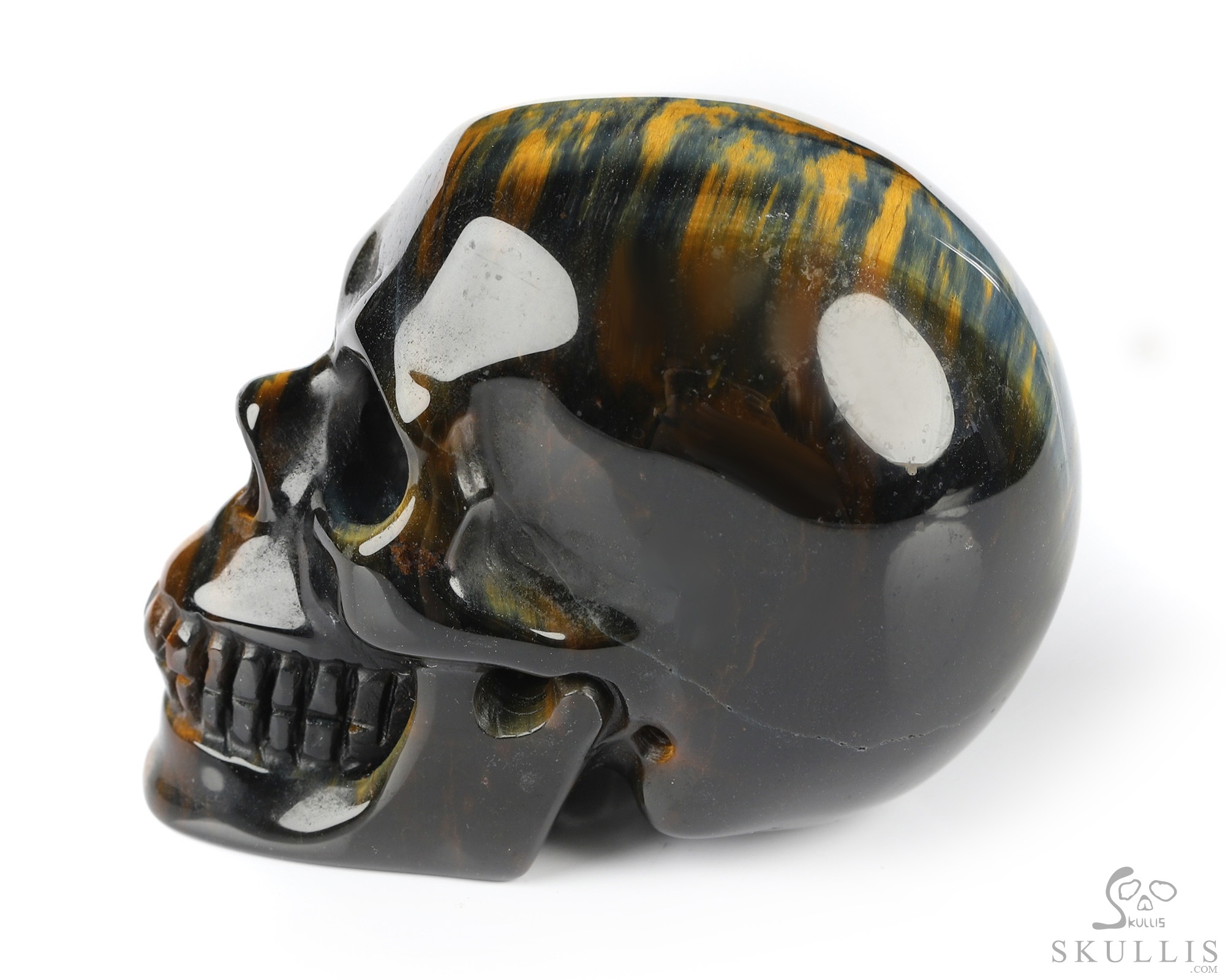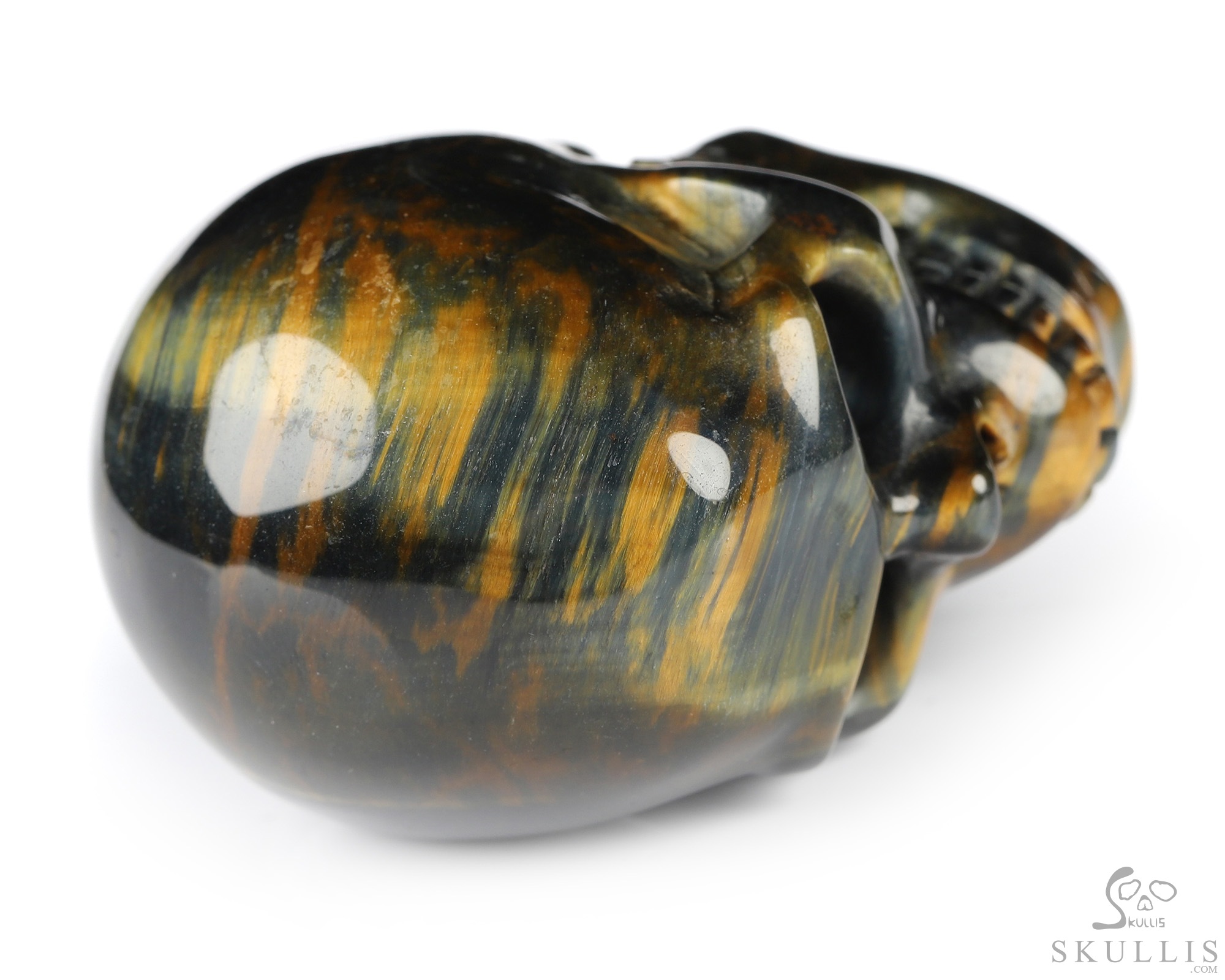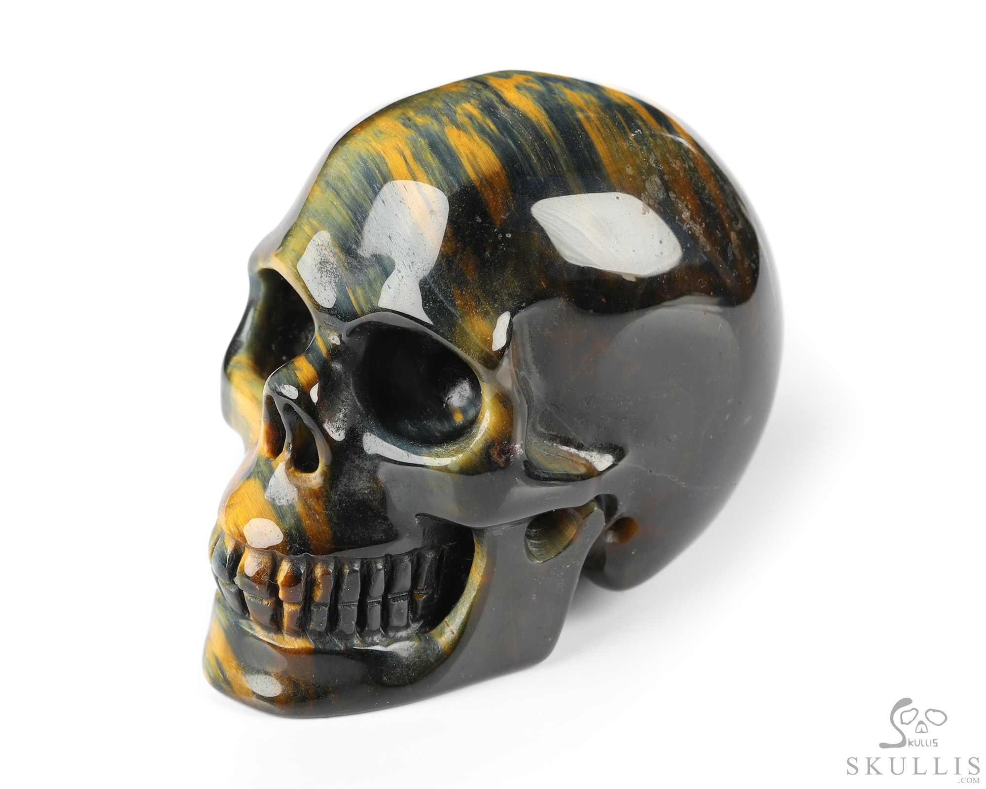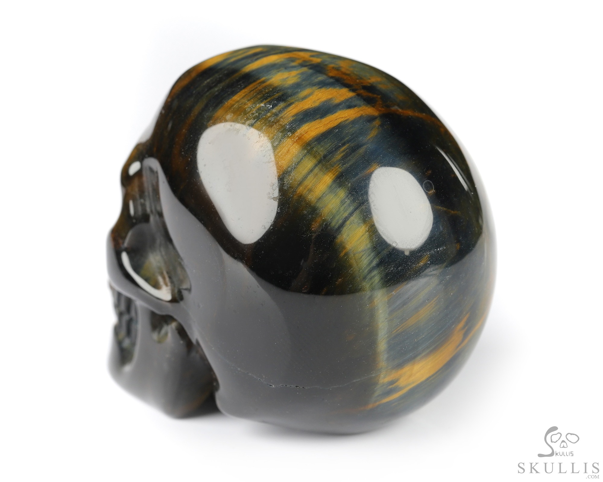 Gemstone 3.7" Blue & Gold Tiger's Eye Hand Carved Crystal Skull, Super Realistic, Crystal Healing
