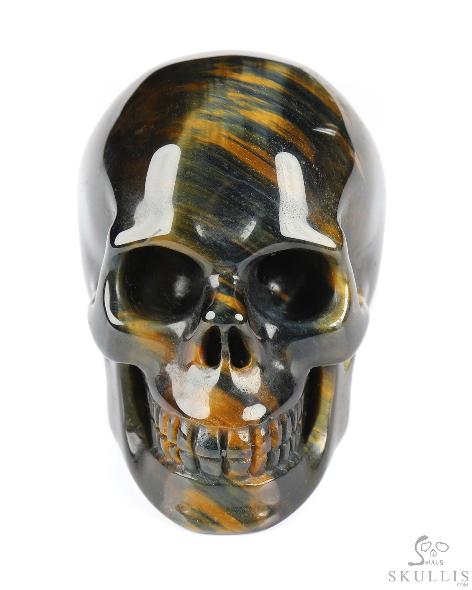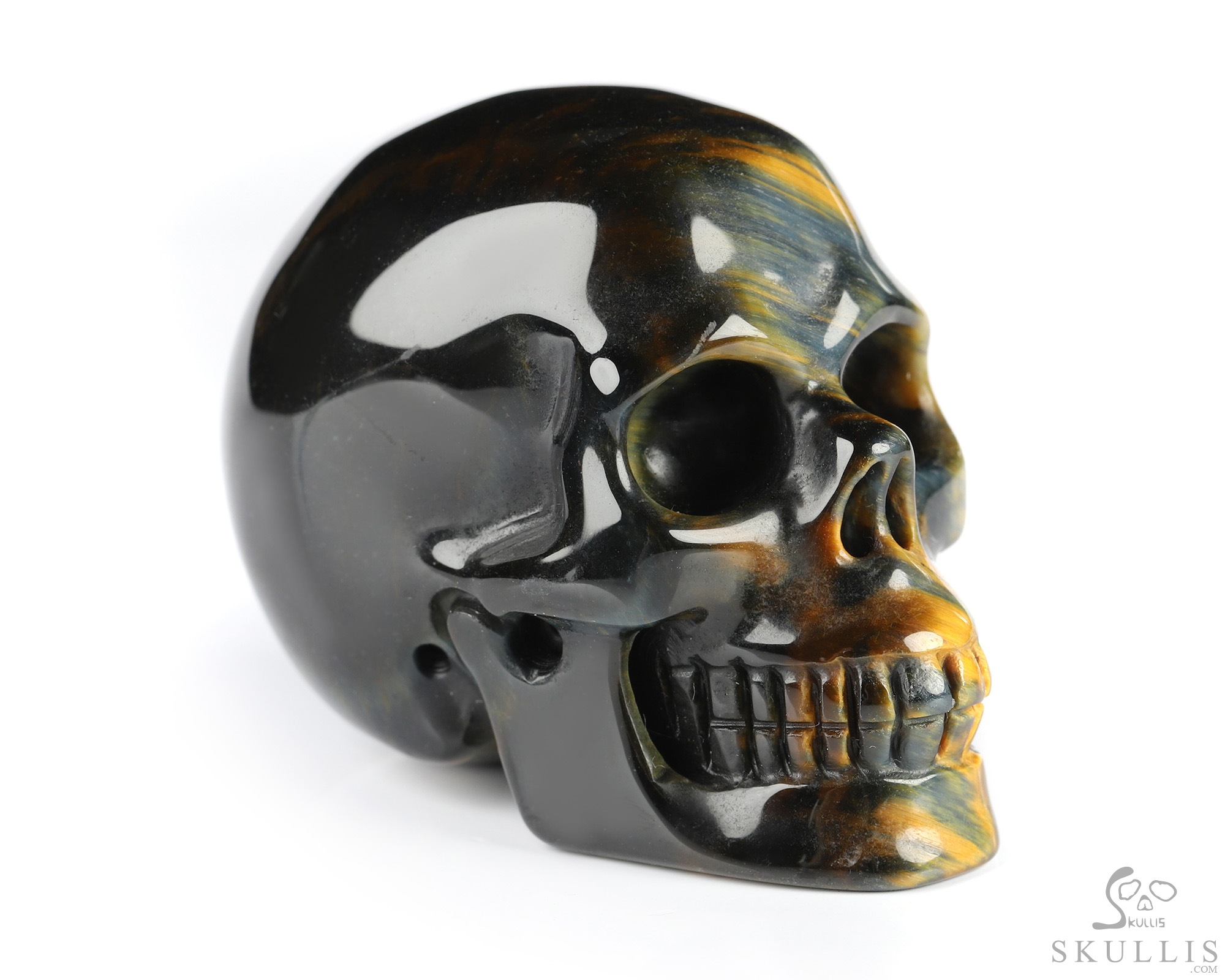 Gemstone 3.6" Blue & Gold Tiger's Eye Hand Carved Crystal Skull, Super Realistic, Crystal Healing