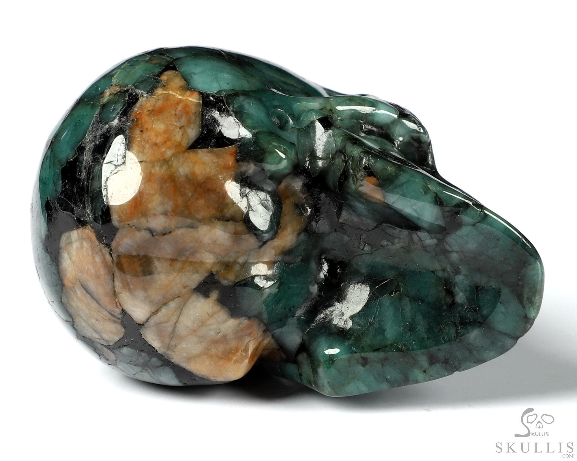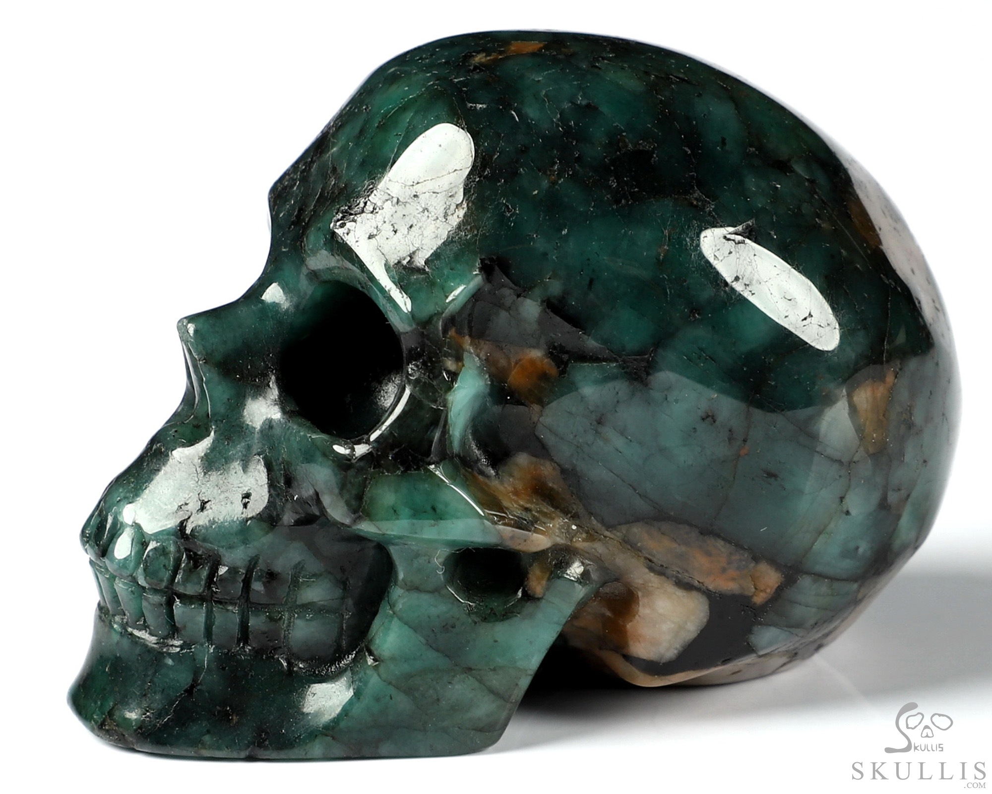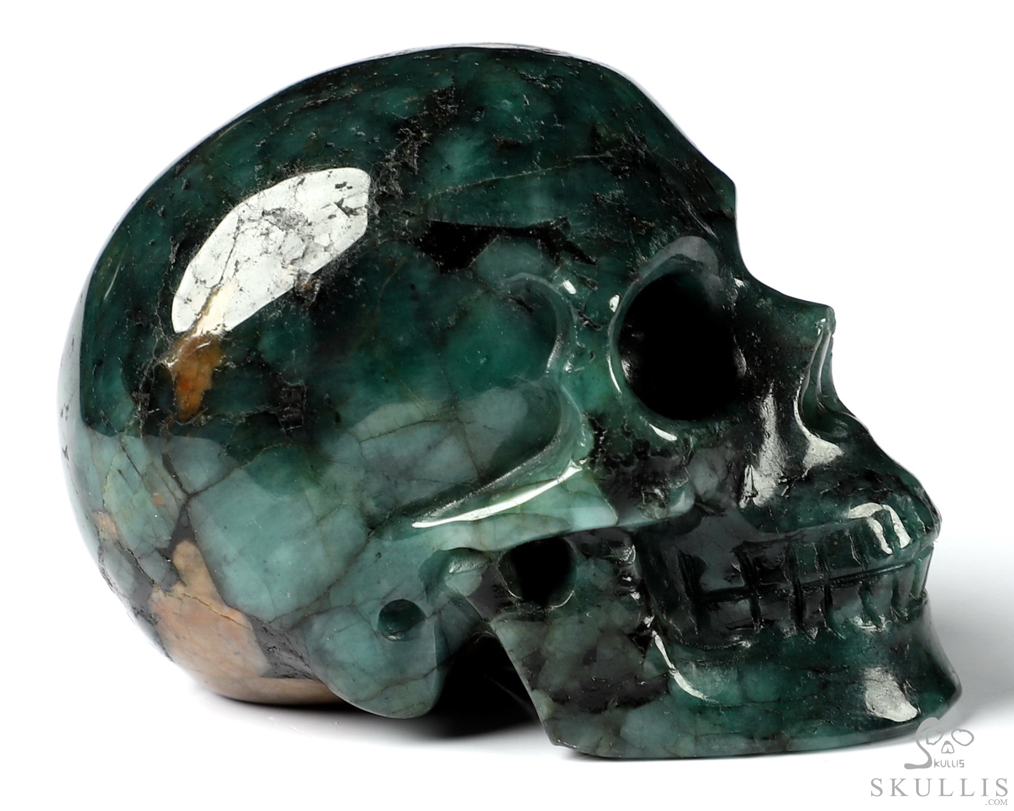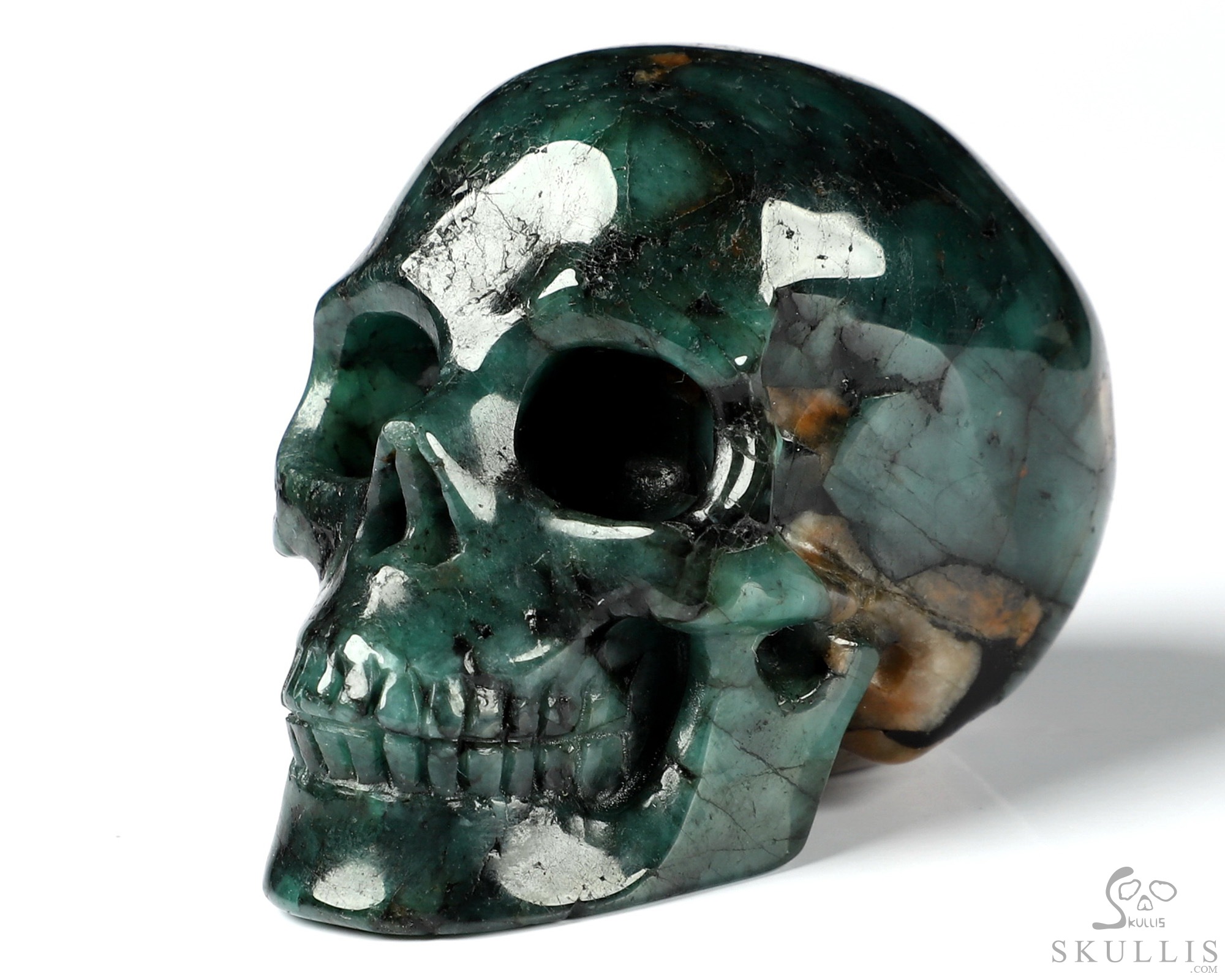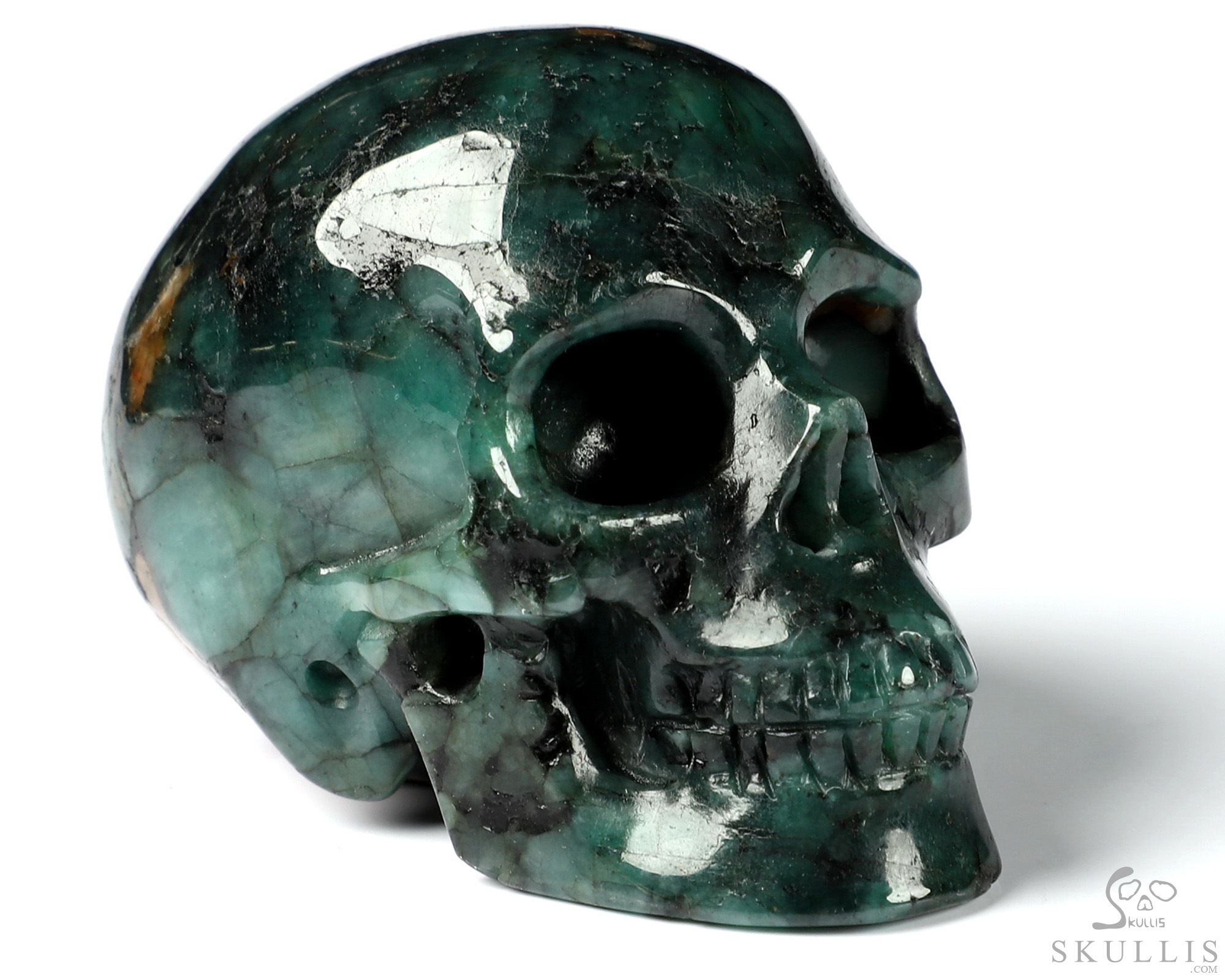 Original 3.7" Emerald Carved Crystal Skull Sculpture, Crystal Healing