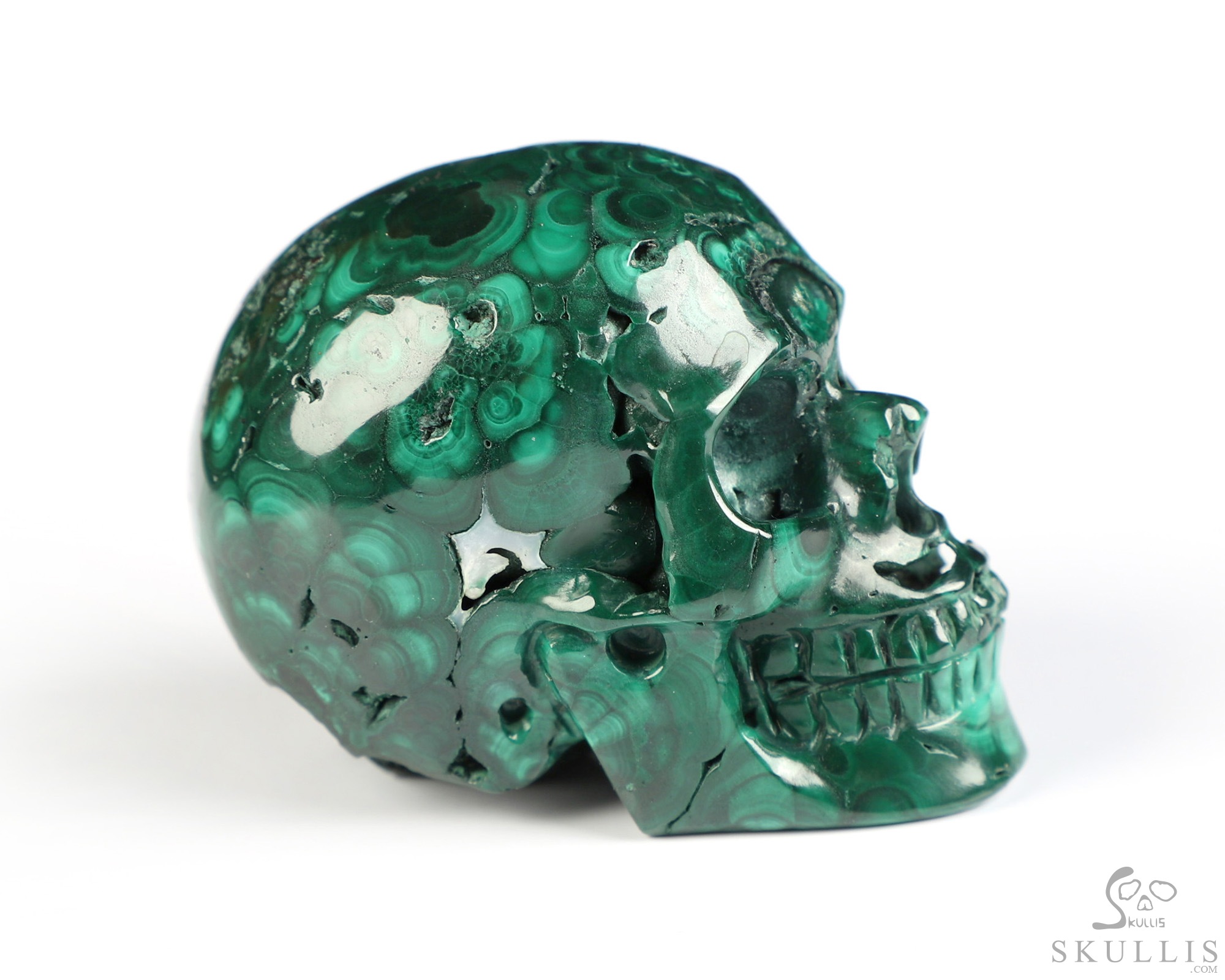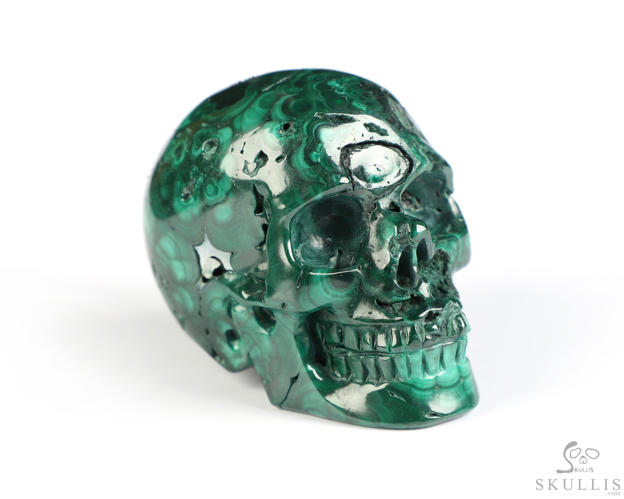 Gemstone 2.0" Malachite Hand Carved Crystal Skull, Realistic, Crystal Healing