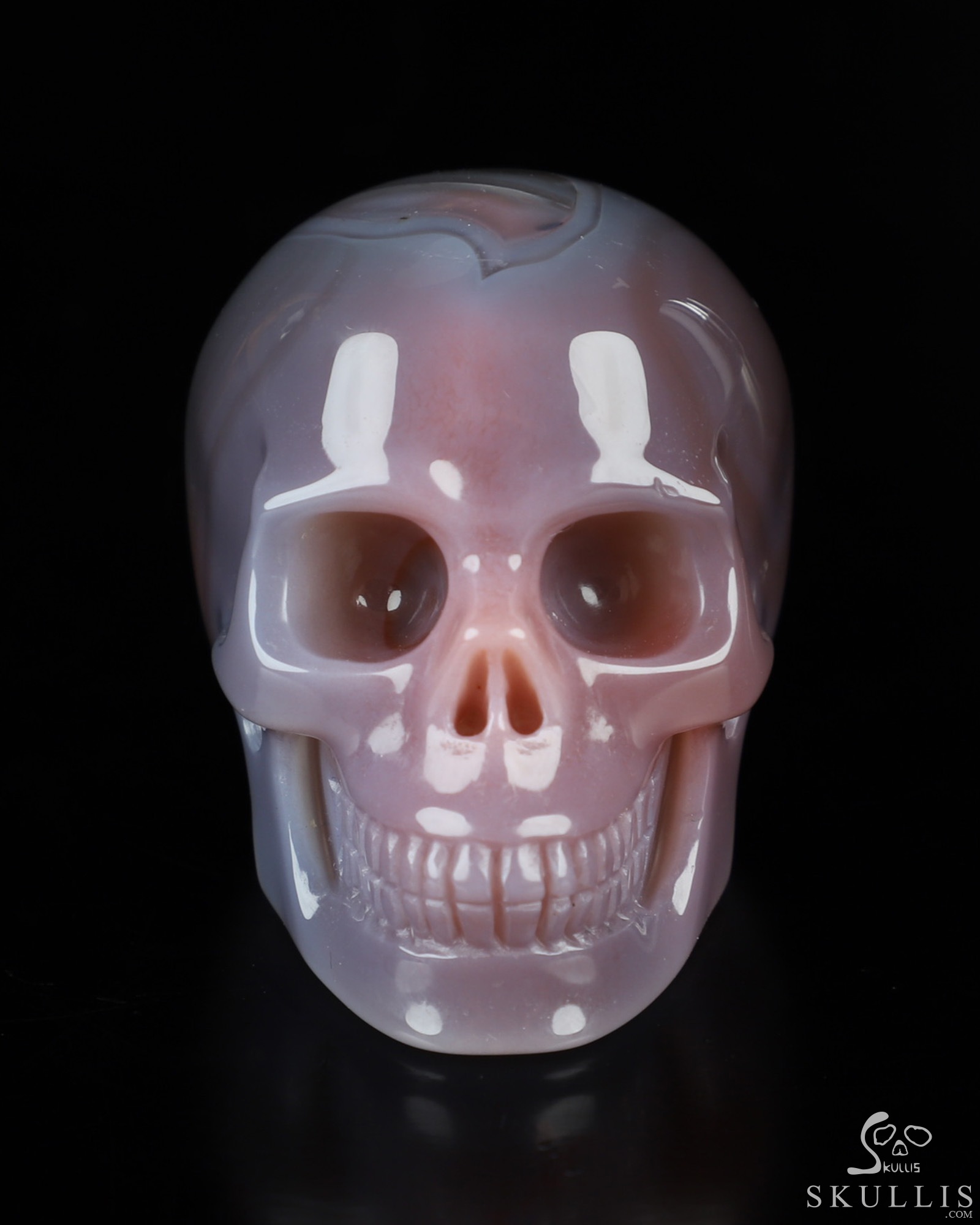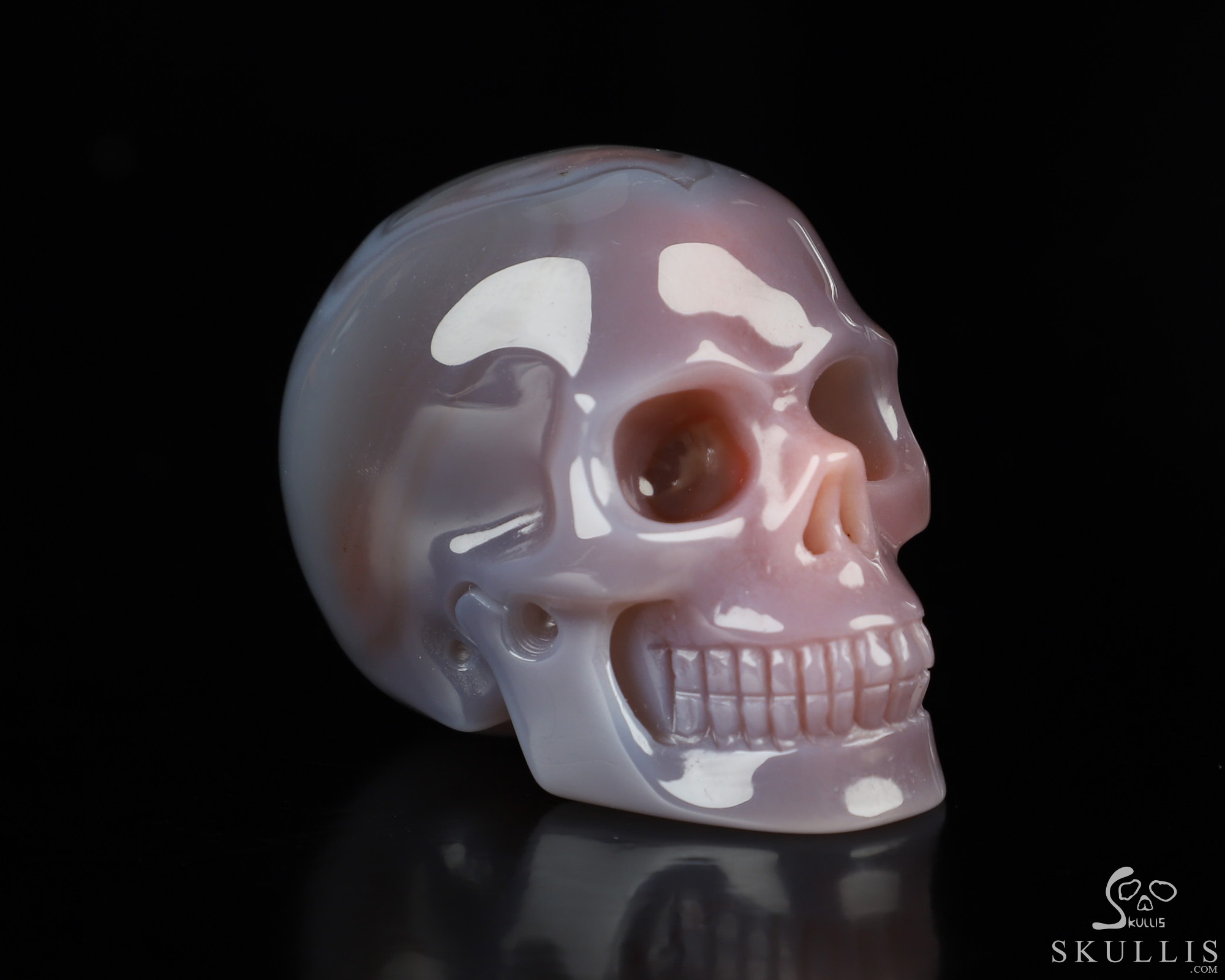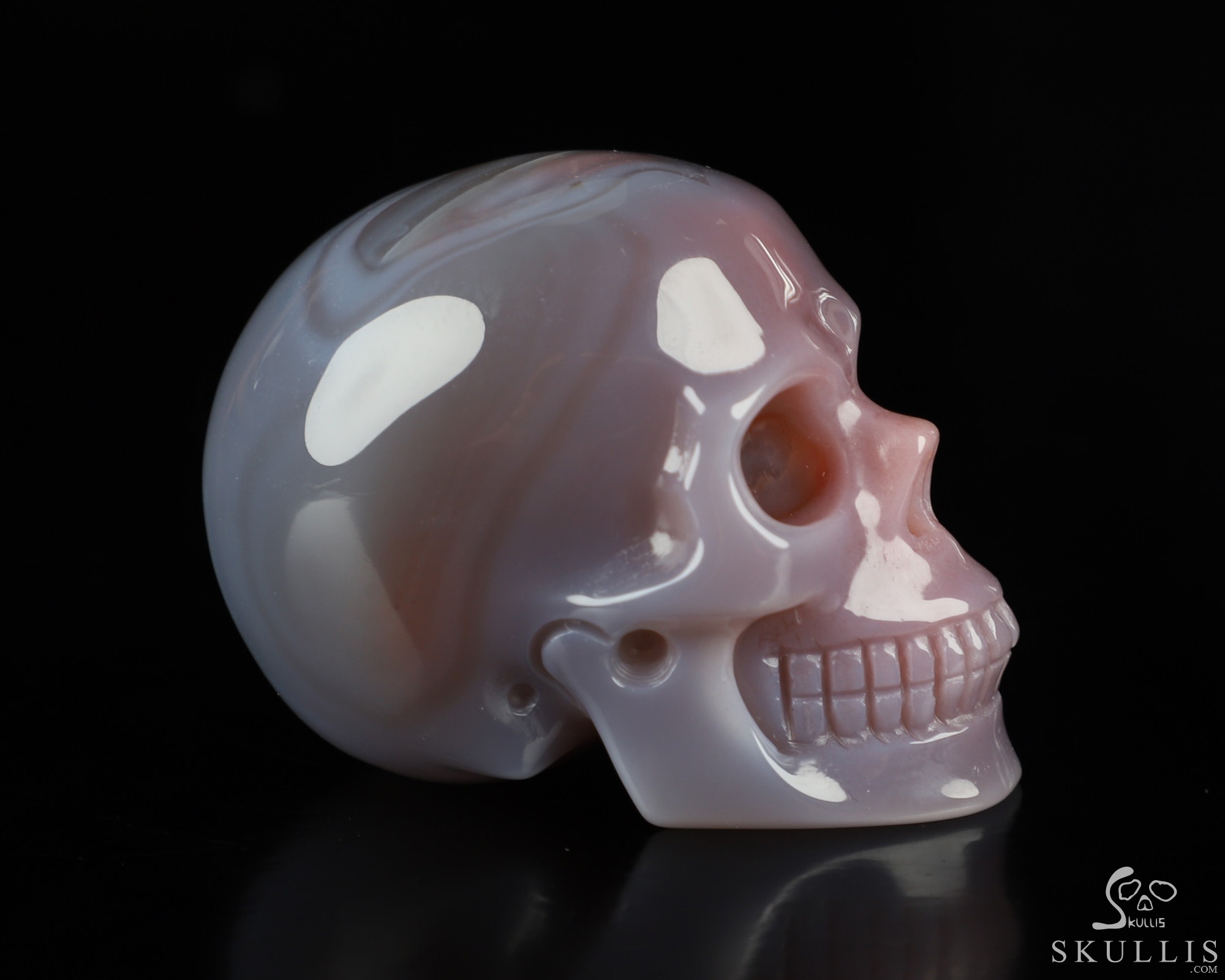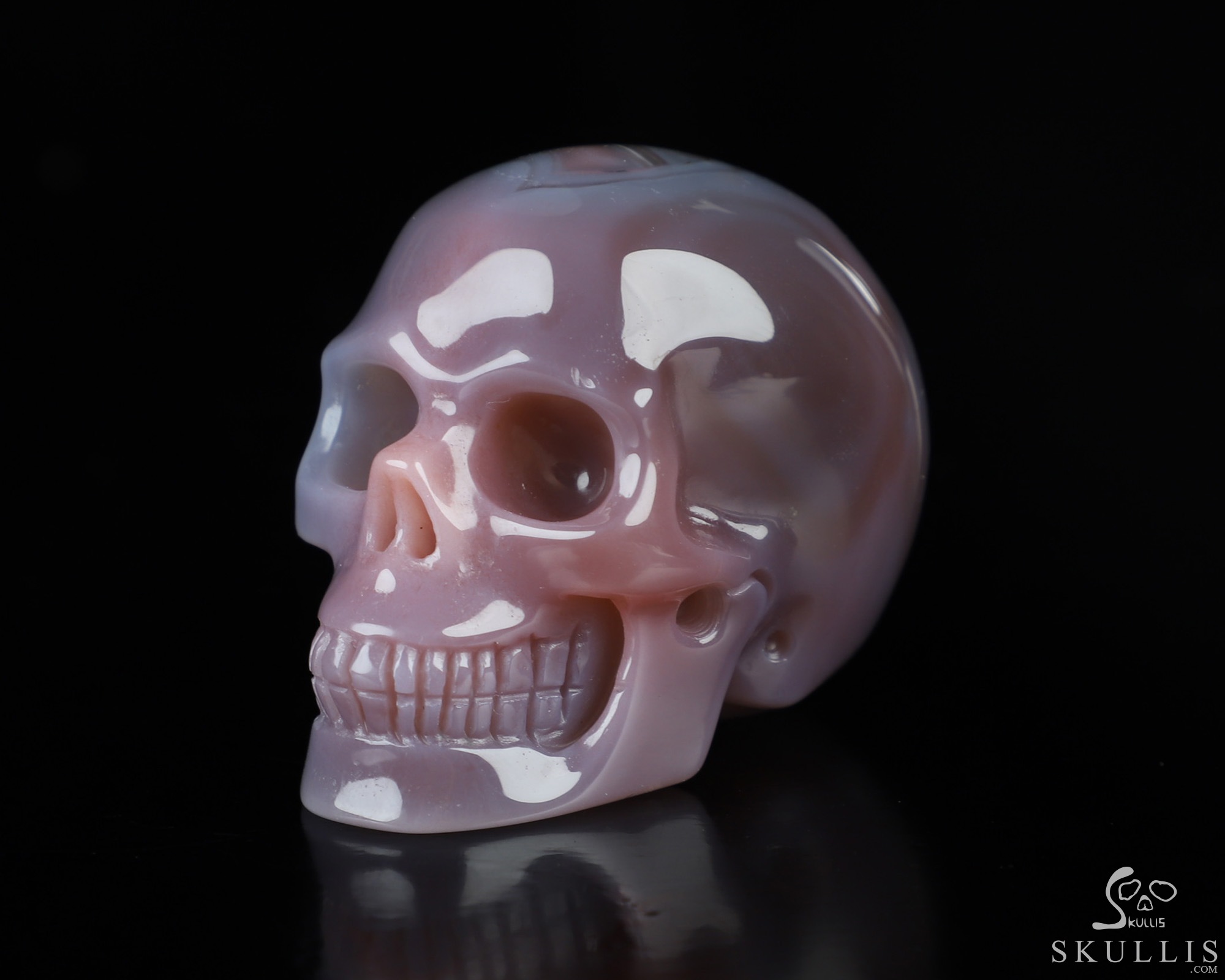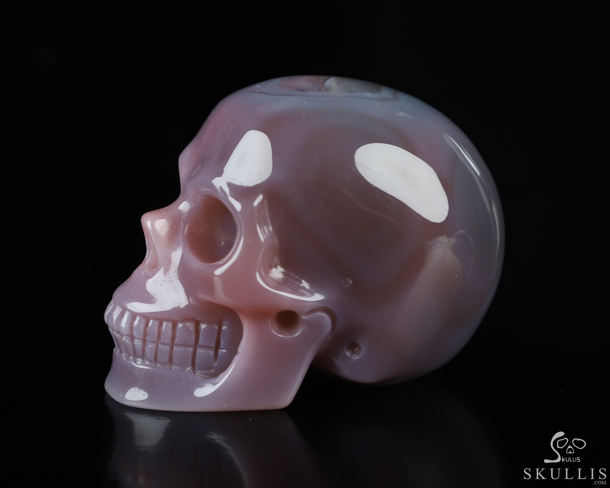 Fine Gemstone Huge 4.3" Mozambique Agate Carved Crystal Skull, Super Realistic
