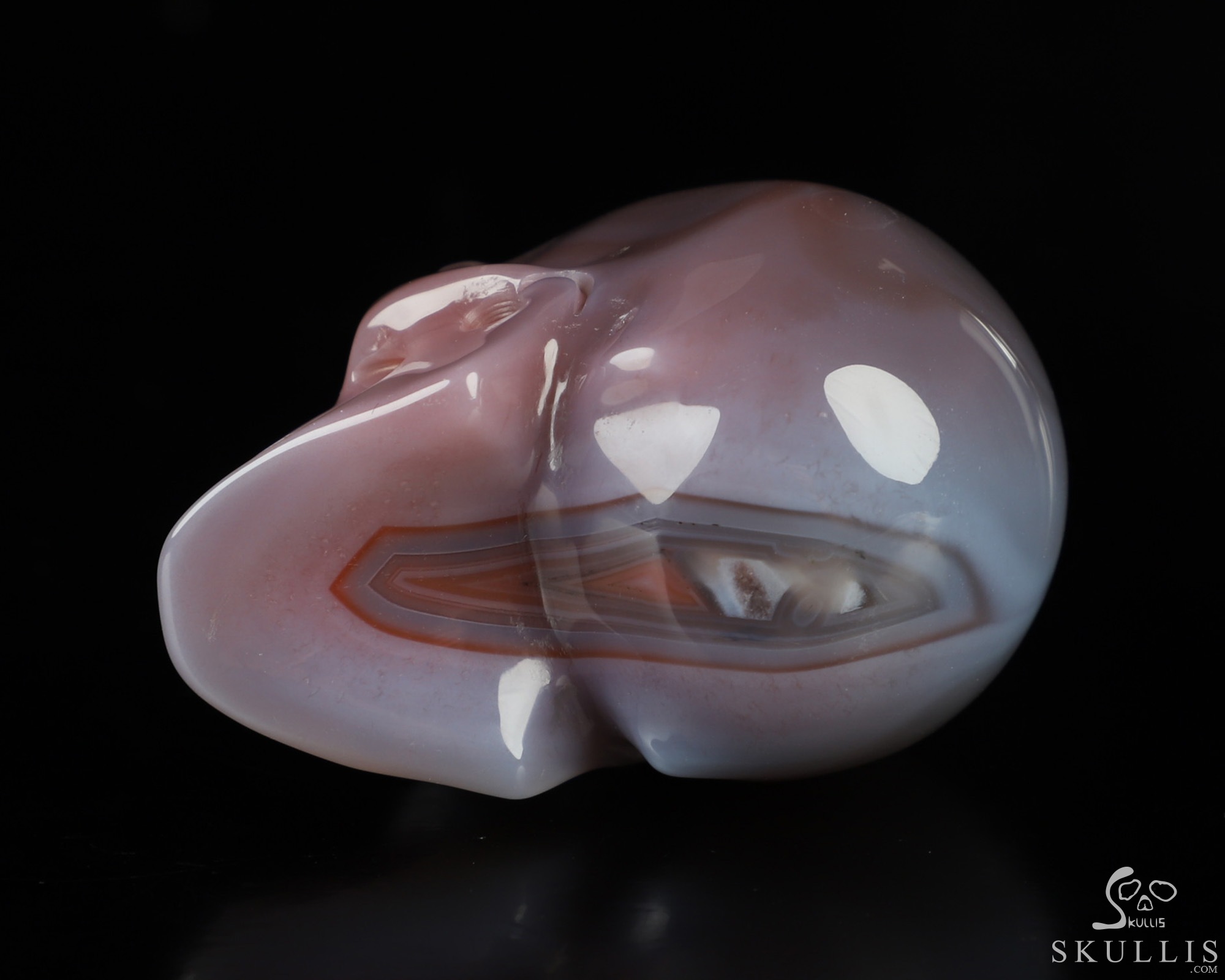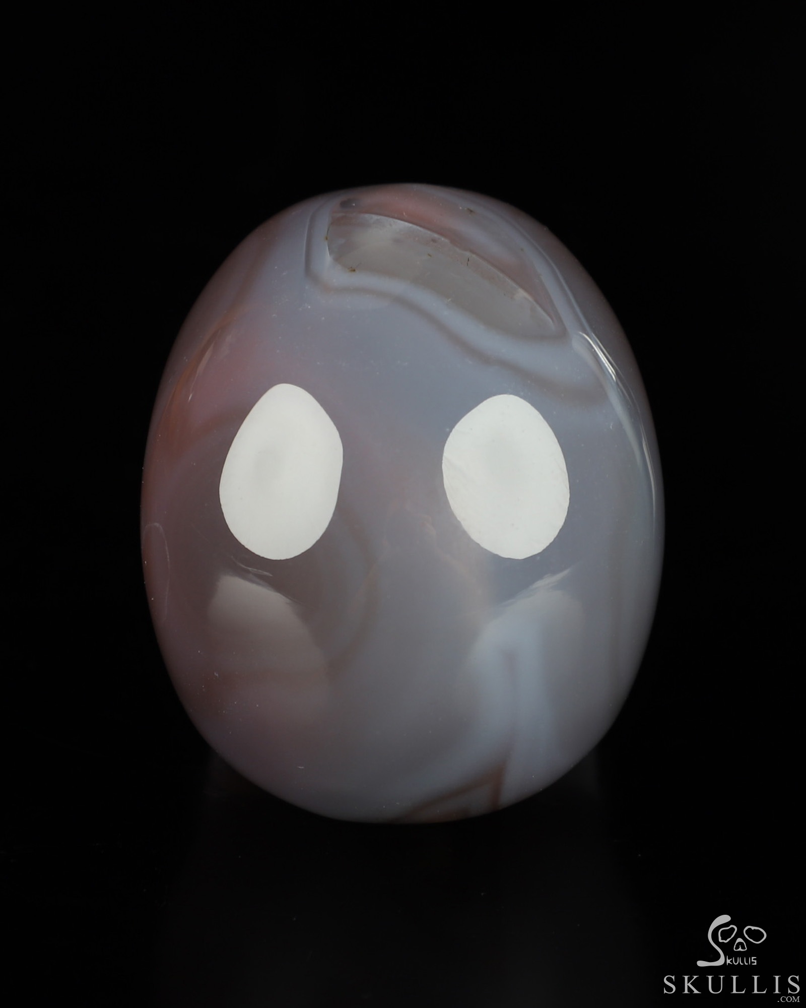 You are looking at a Mozambique Agate skull. The skull is 2 inches from front to back.