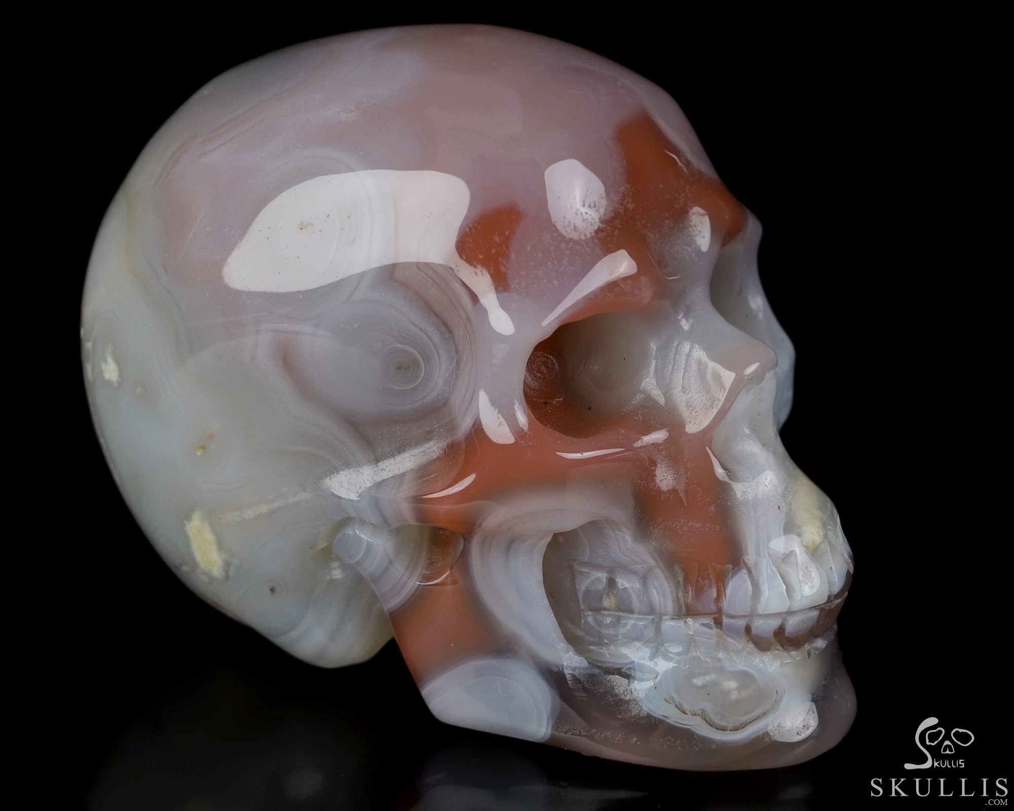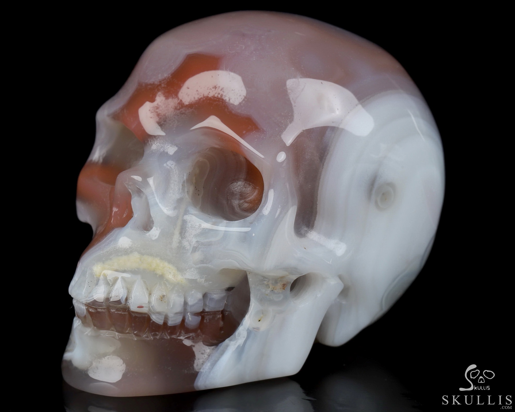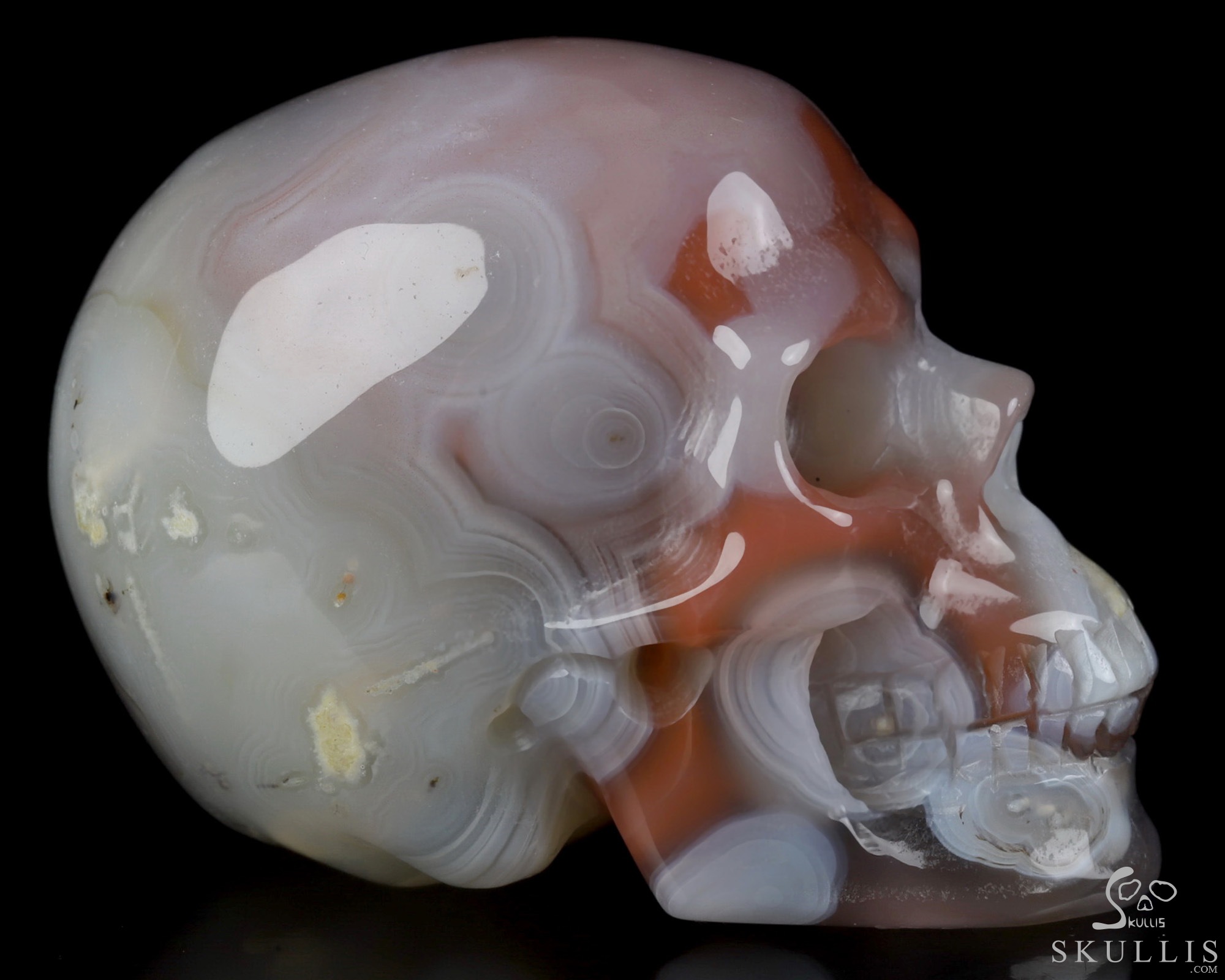 Fine Gemstone Huge 4.3" Mozambique Agate Carved Crystal Skull, Super Realistic