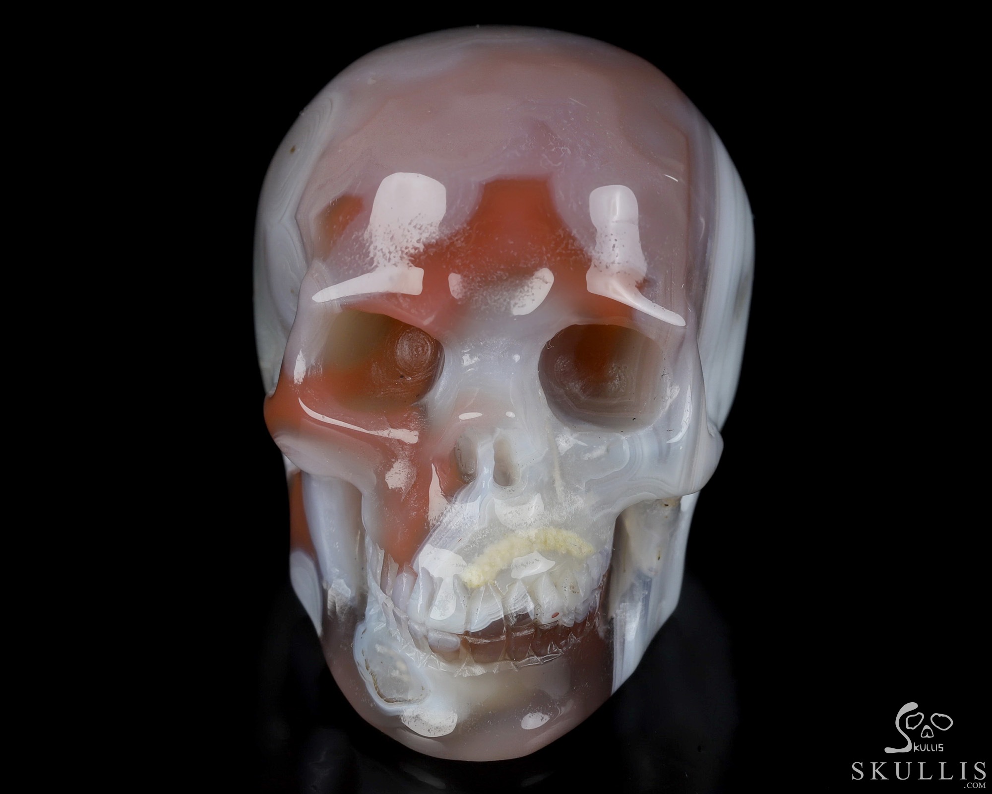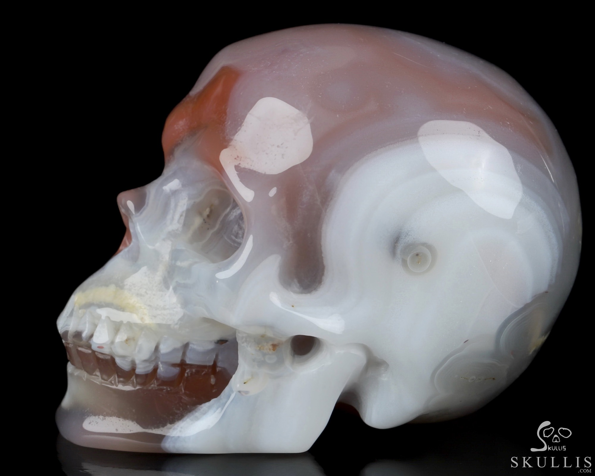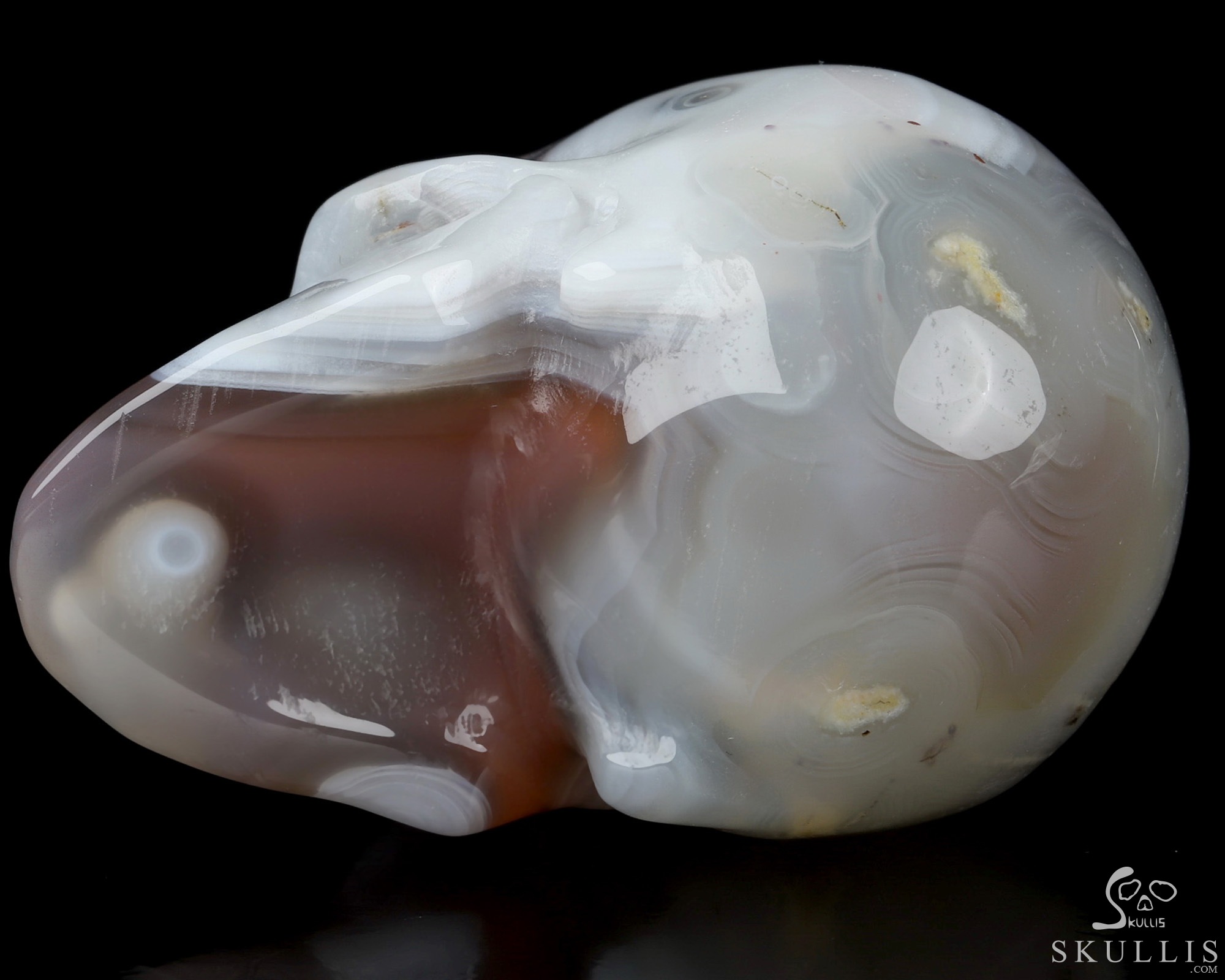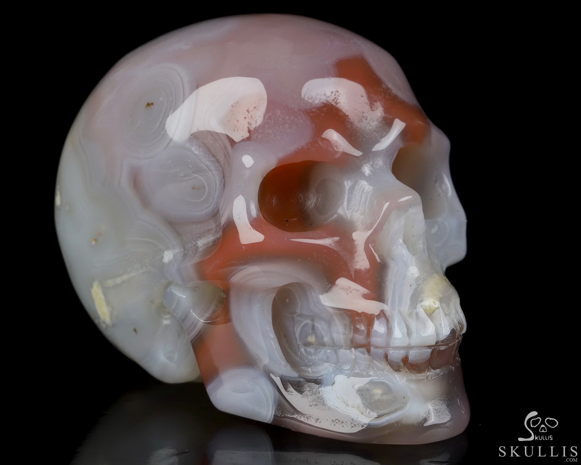 Fine Gemstone Huge 4.3" Mozambique Agate Carved Crystal Skull, Super Realistic