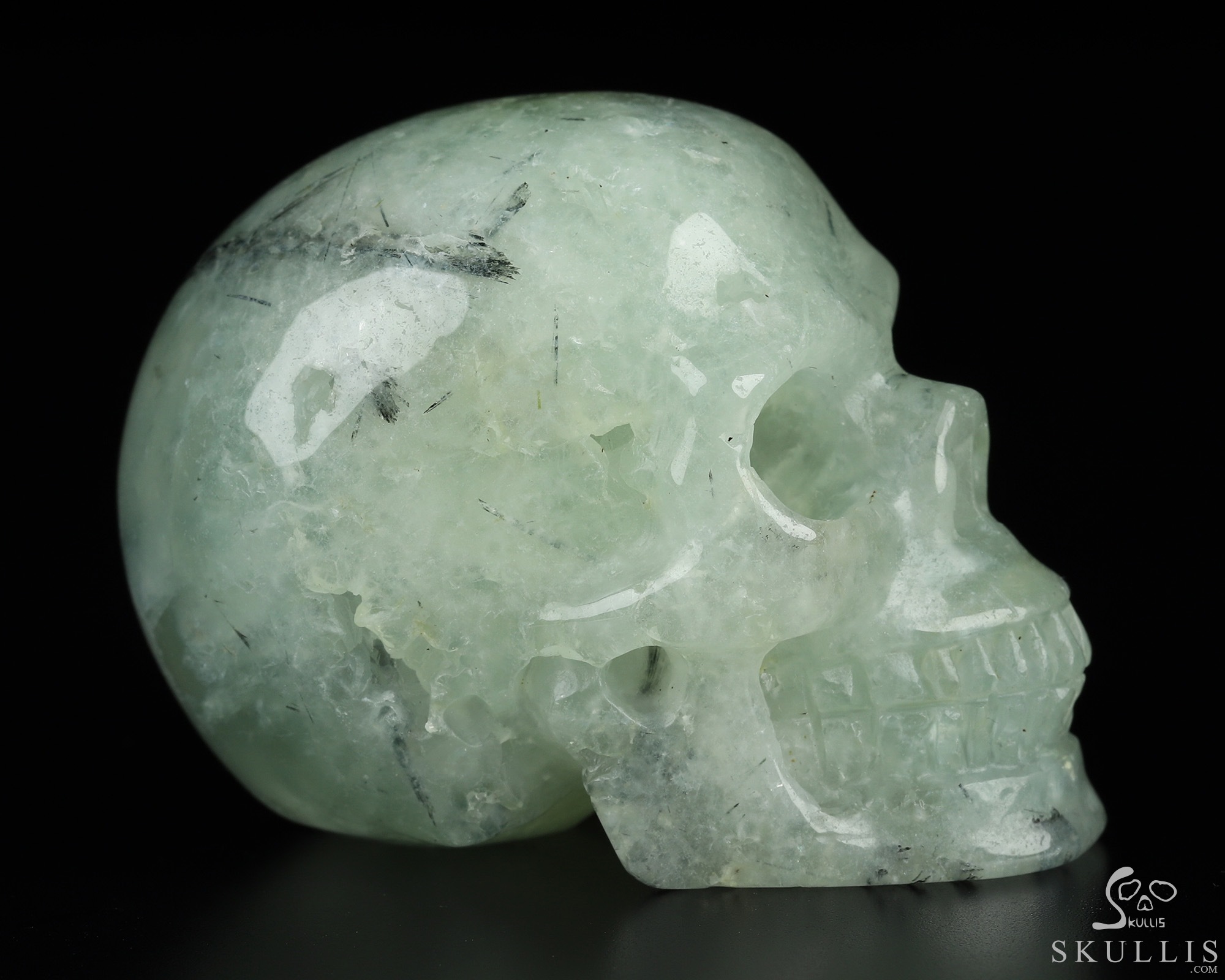LIFESIZED GEMSTONE 6.7" Prehnite Carved Crystal Skull,Super Realistic, Crystal Healing