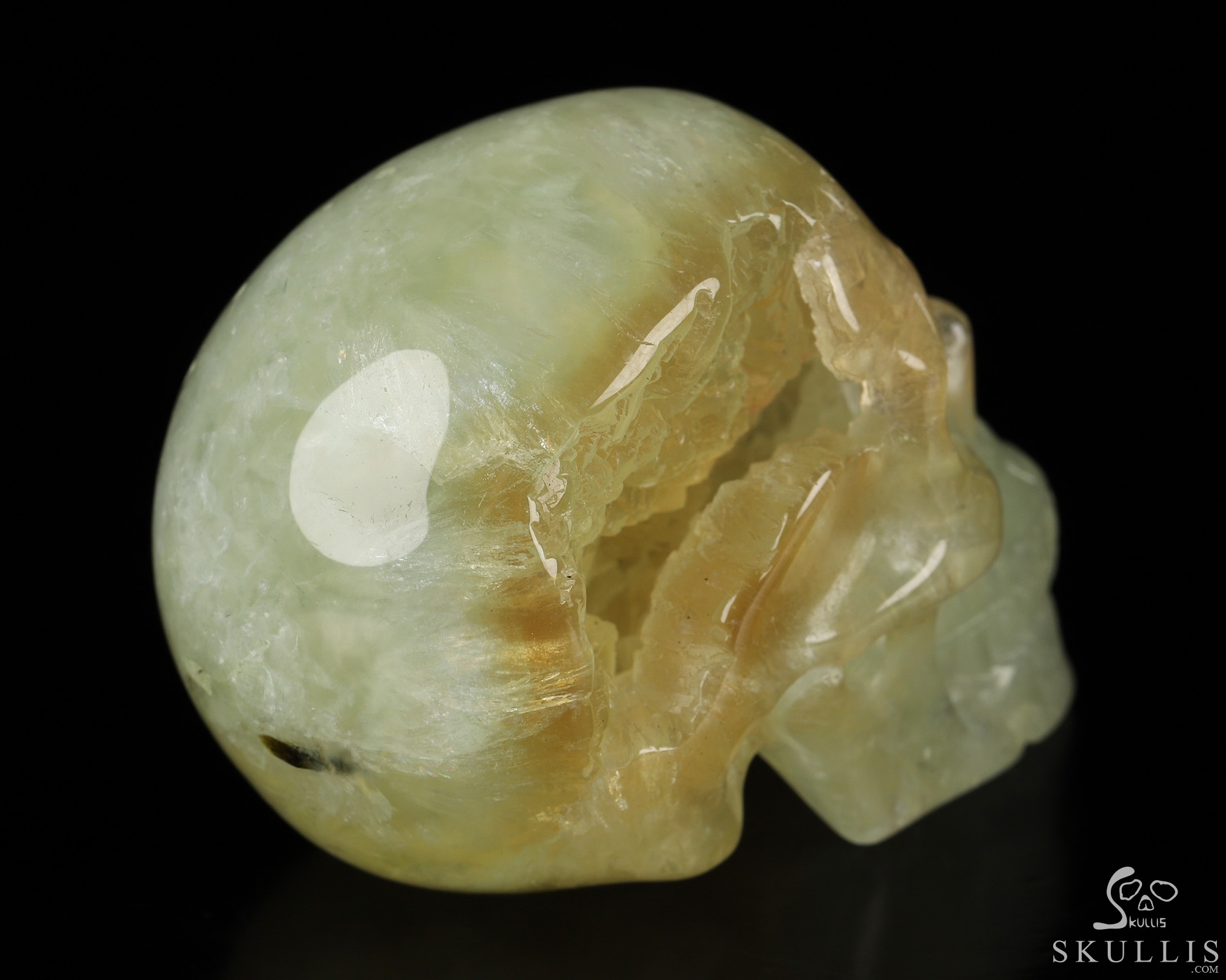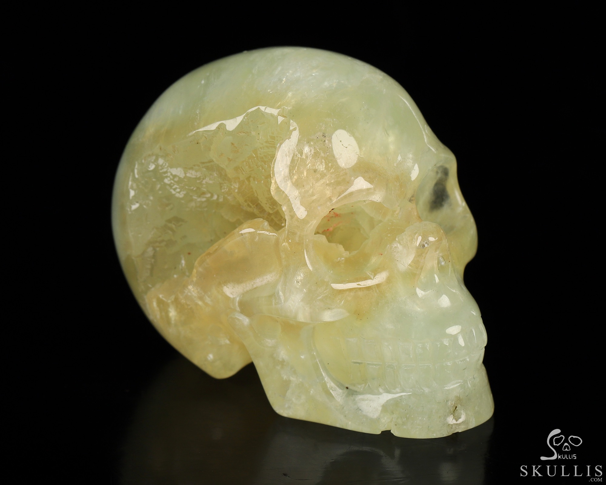 5.1" Prehnite Carved Crystal Skull,Realistic, Crystal Healing
