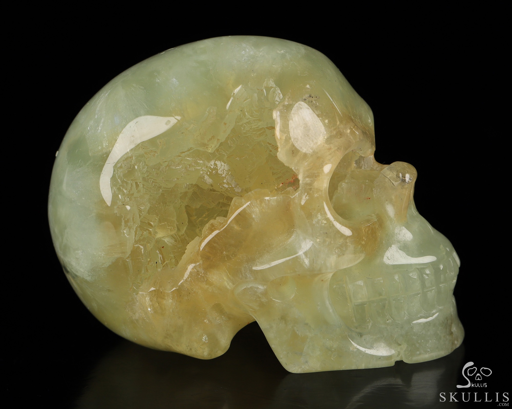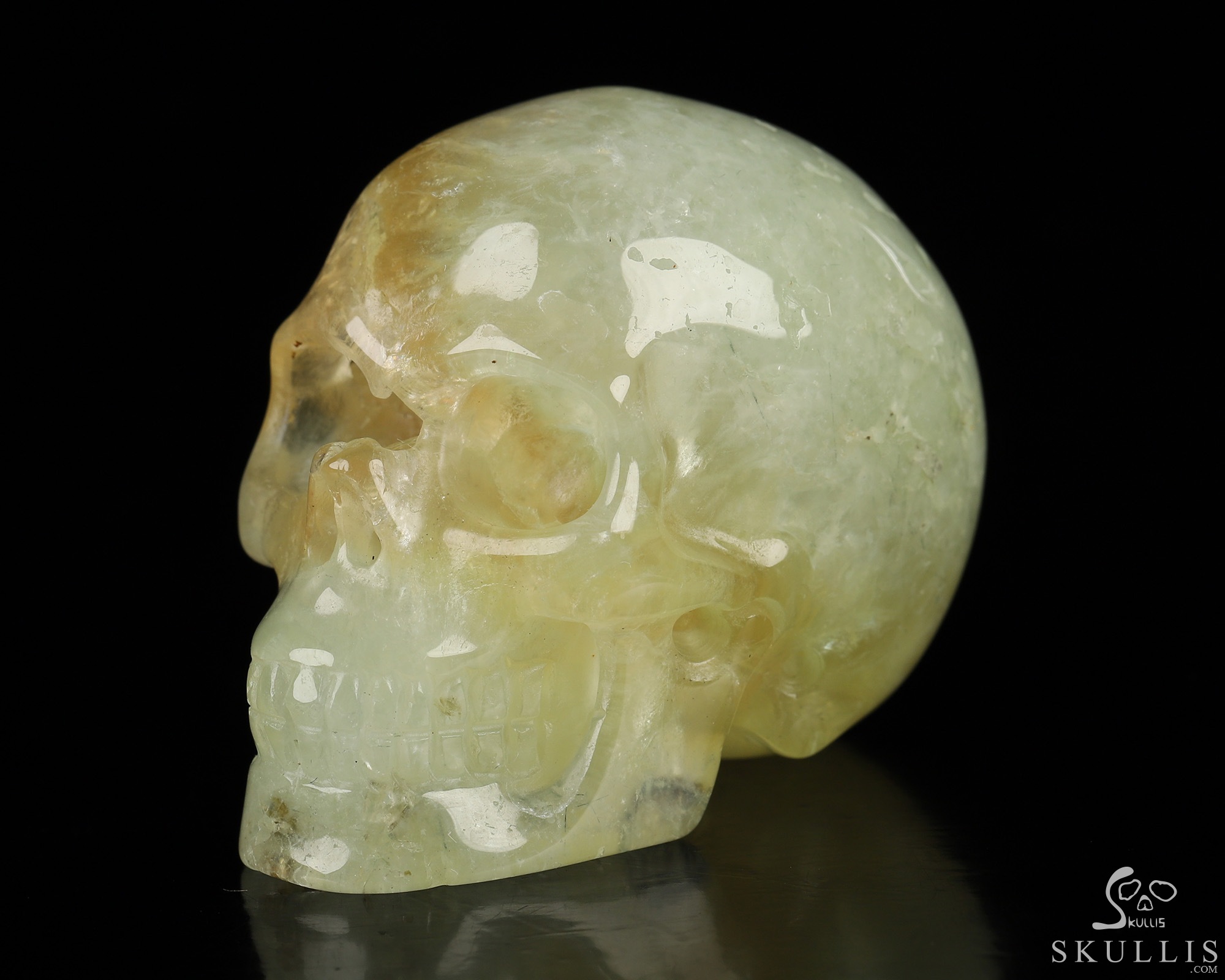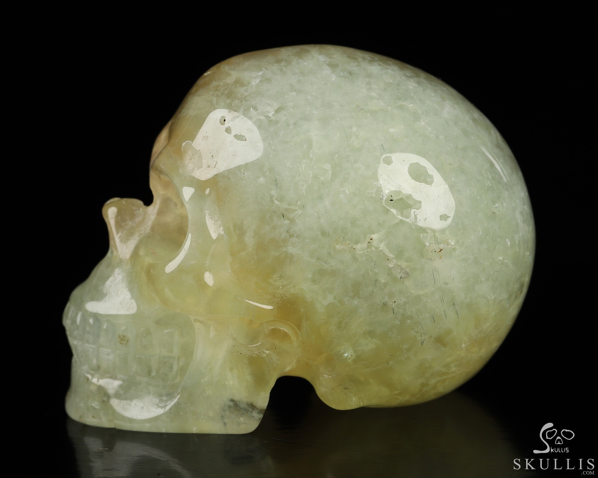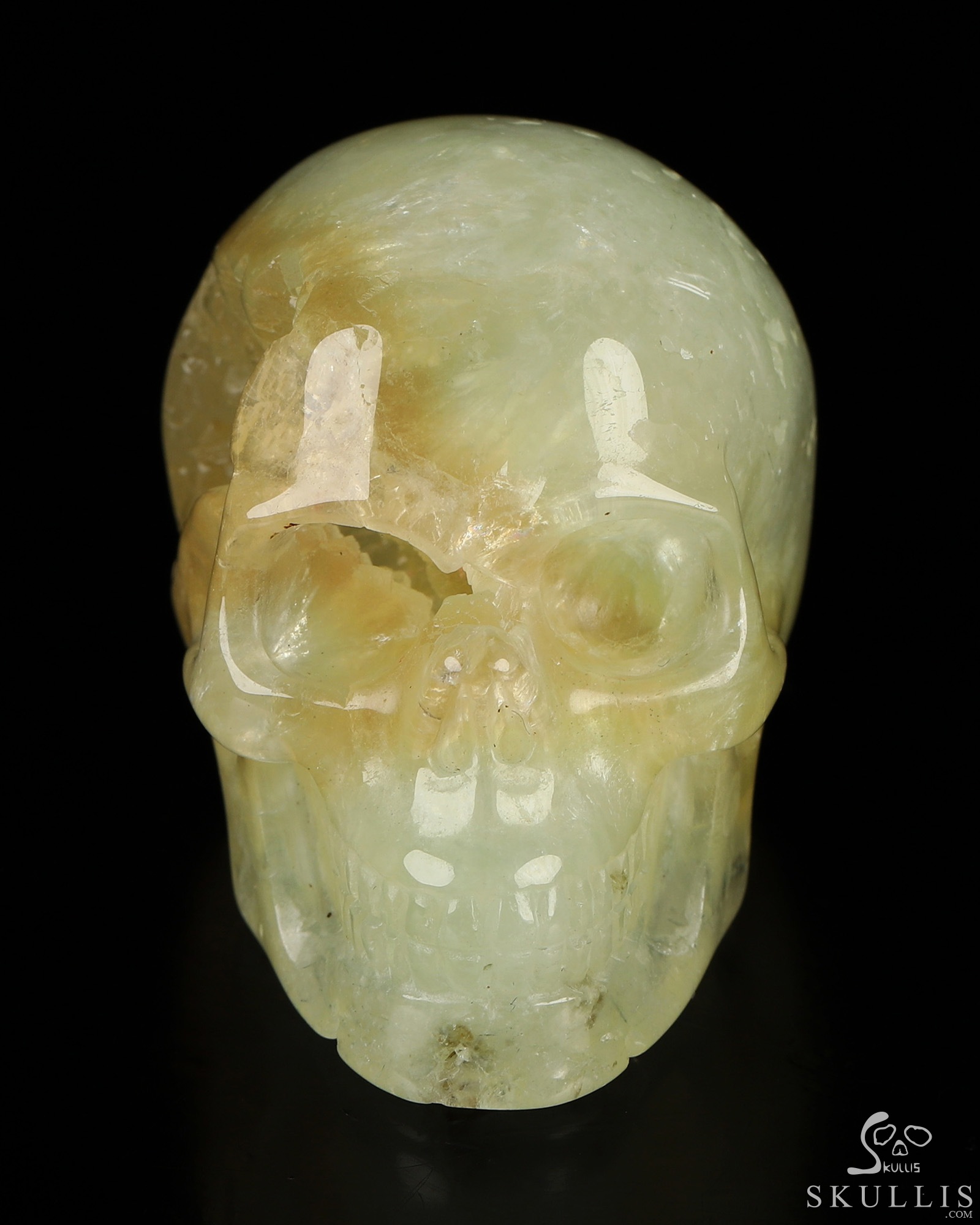 5.0" Prehnite Hand Carved Crystal Skull, Realistic, Crystal Healing