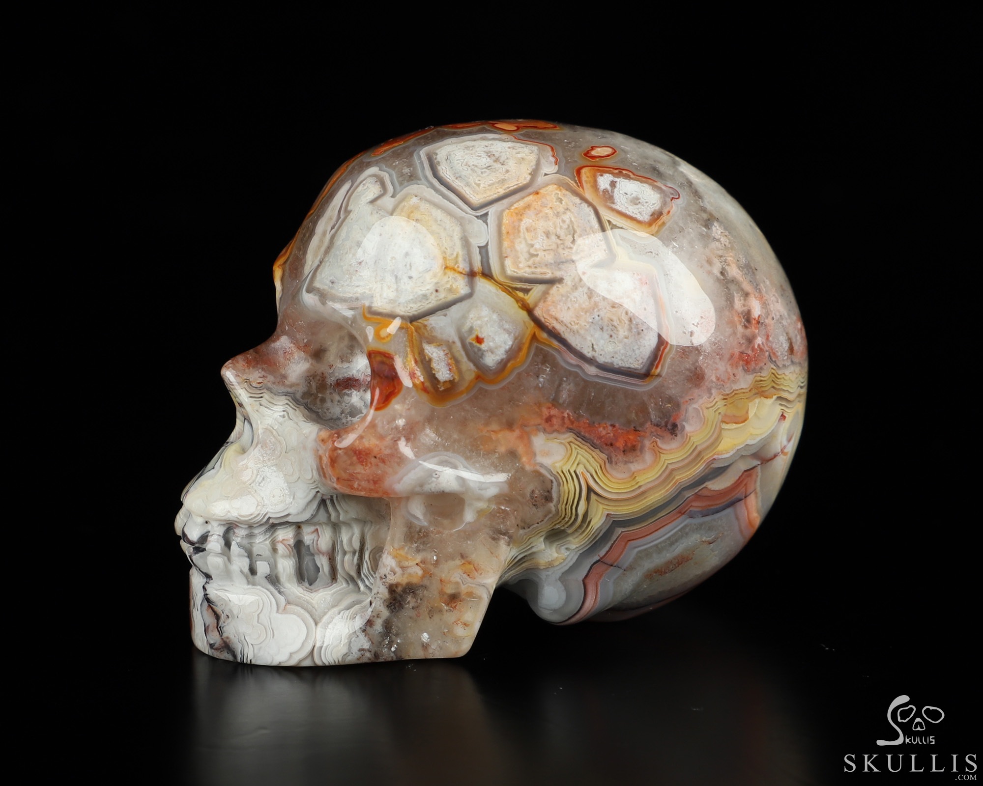 Gemstone 5.2" Red Crazy Lace Agate Hand Carved Crystal Skull, Realistic, Crystal Healing