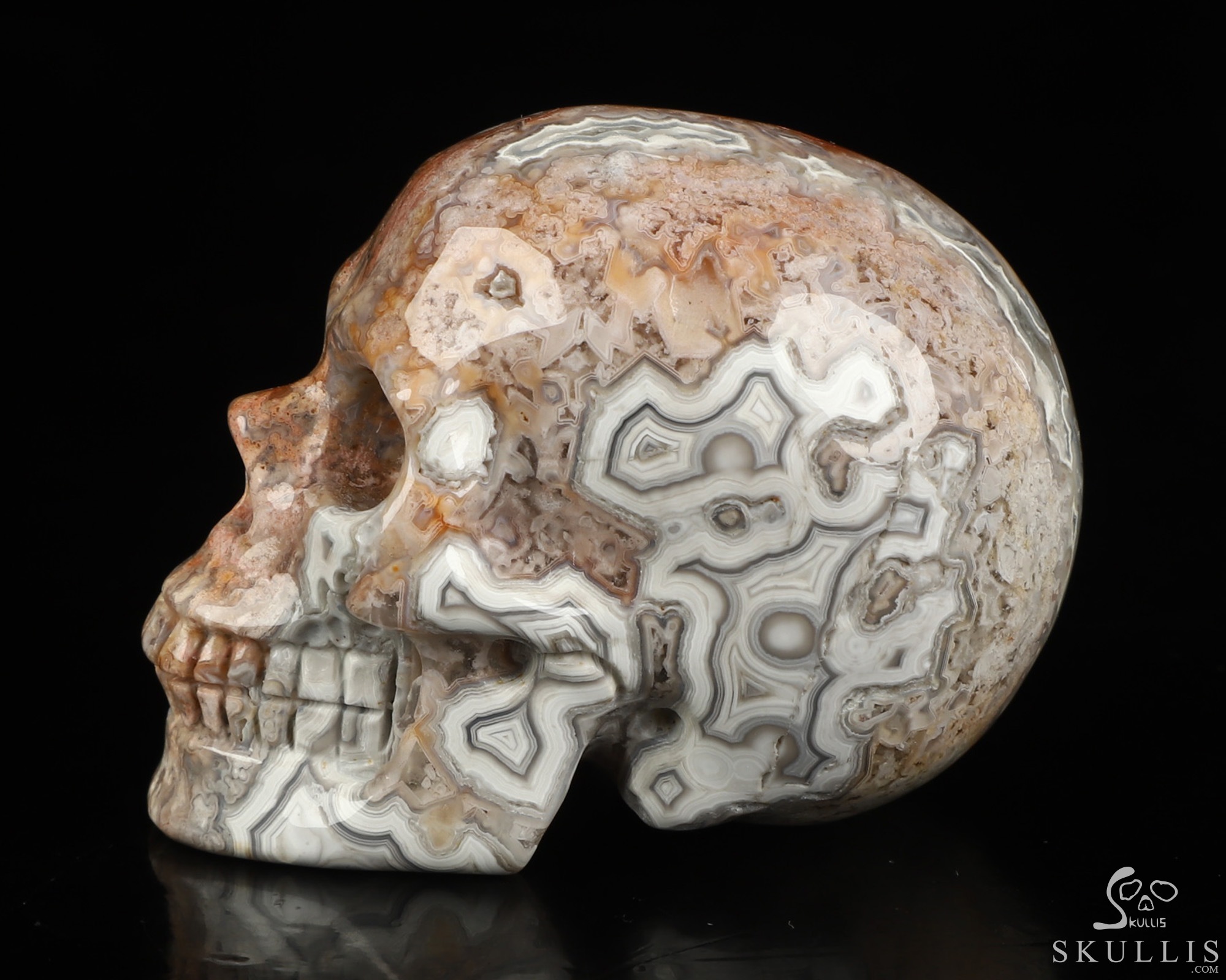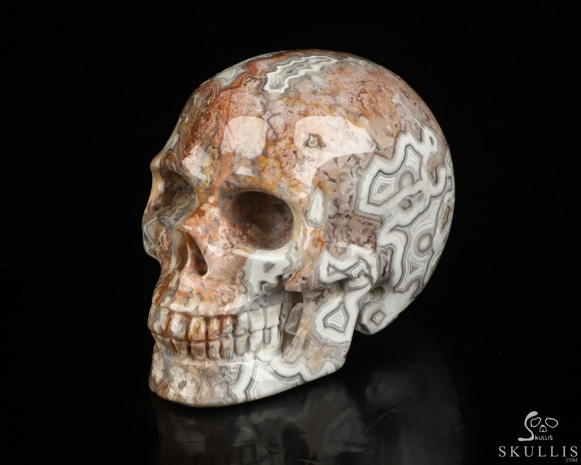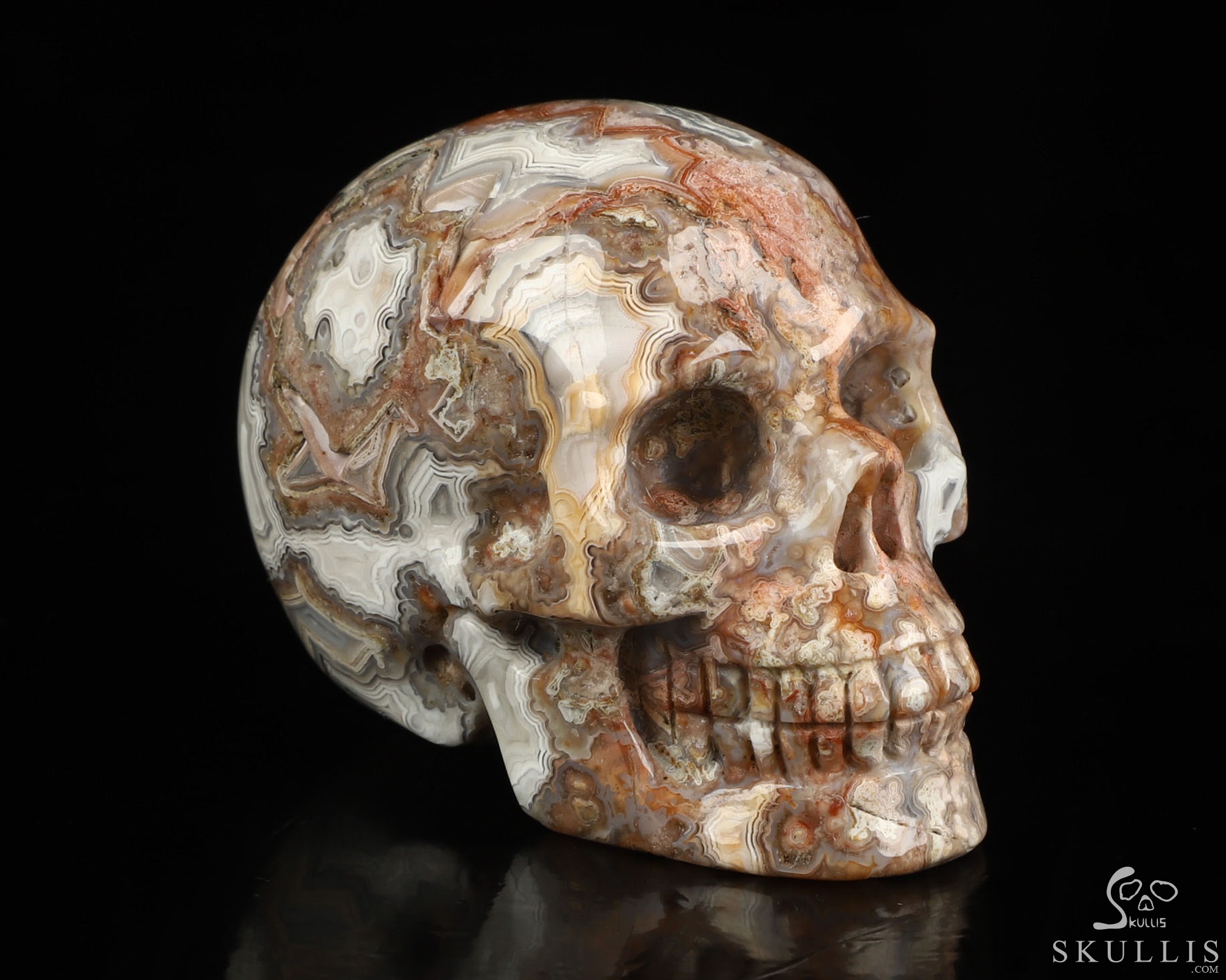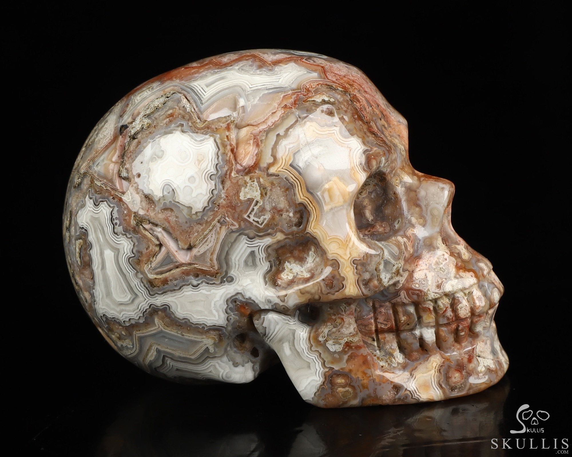 Gemstone Lifesized 7.0" Red Crazy Lace Agate Carved Crystal Skull,Super Realistic, Crystal Healing