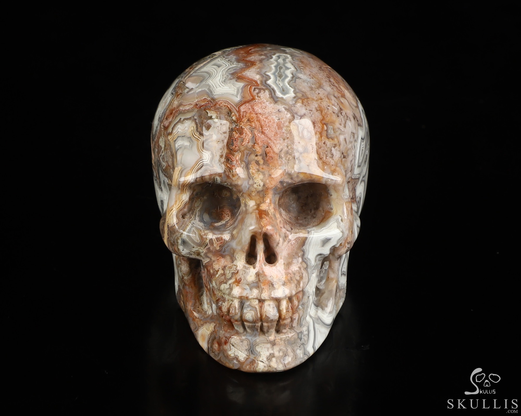 GEMSTONE 4.0" Red Crazy Lace Agate Carved Crystal Skull,Super Realistic, Crystal Healing
