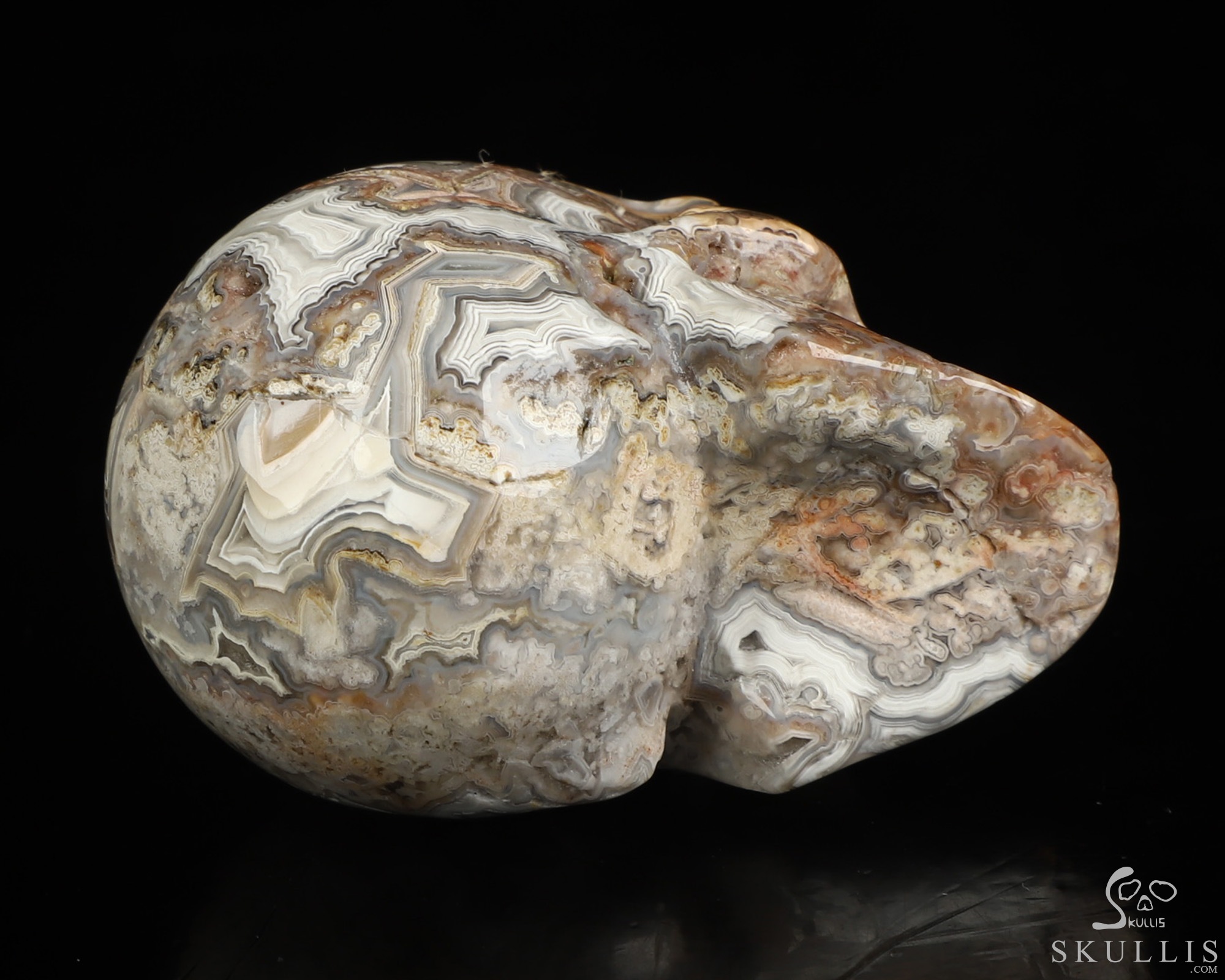You are looking at a Red Crazy Lace Agate skull. The skull is 2 inches from front to back.