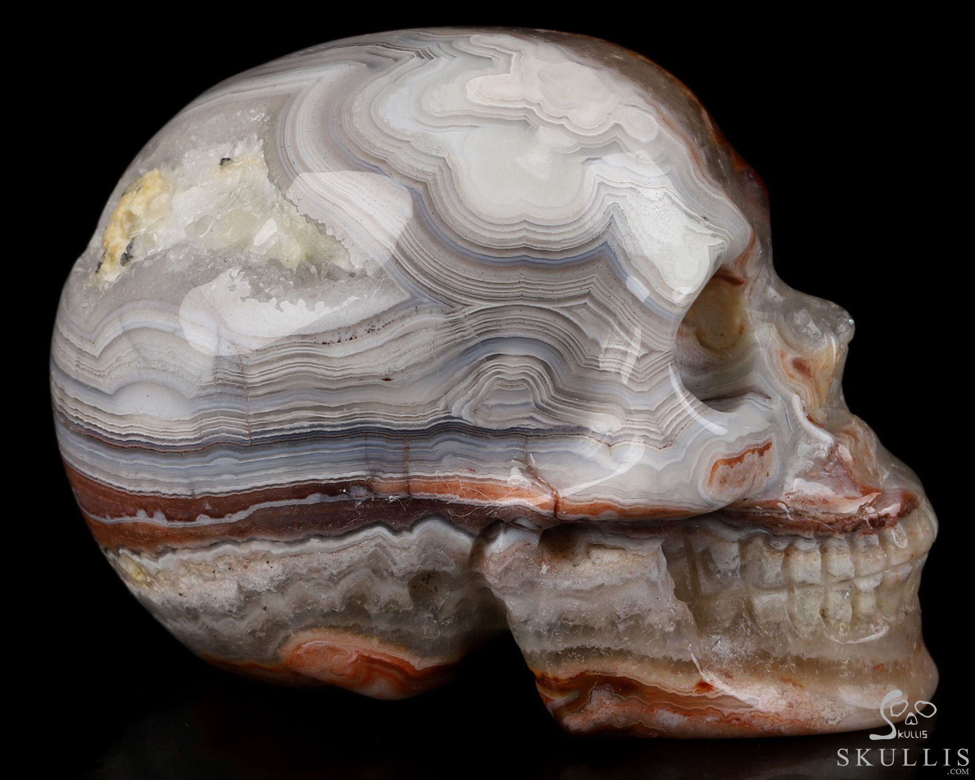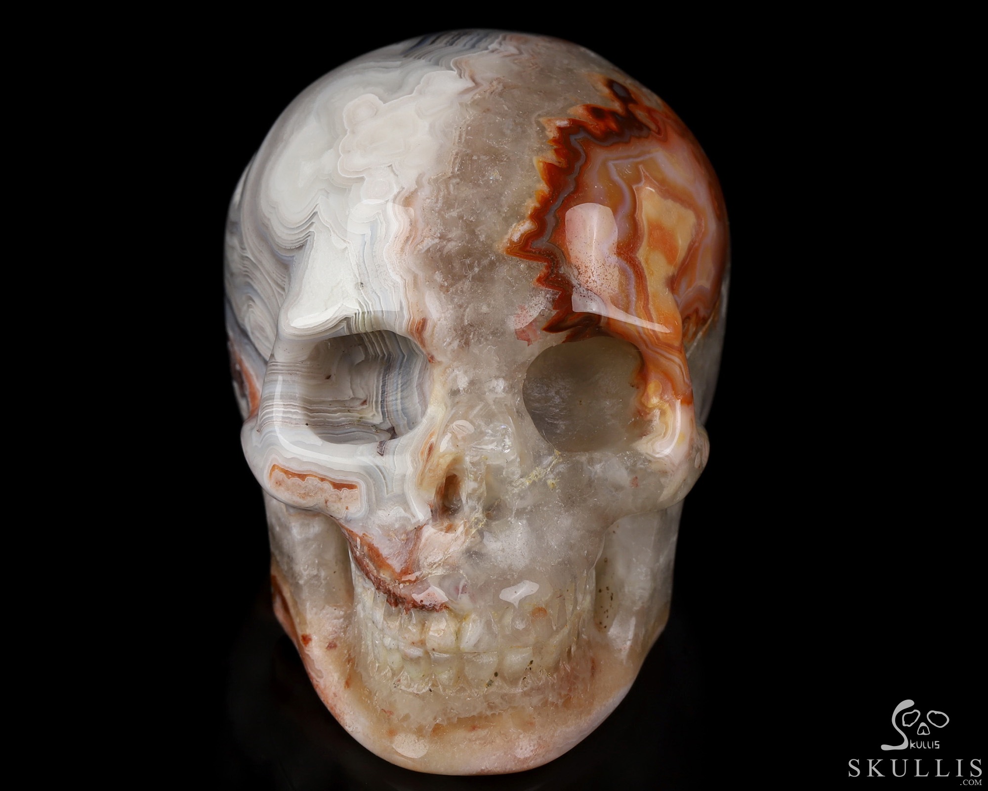 GEMSTONE Geode Huge 4.8 Red Crazy Lace Agate Carved Crystal Skull, Realistic, Crystal Healing